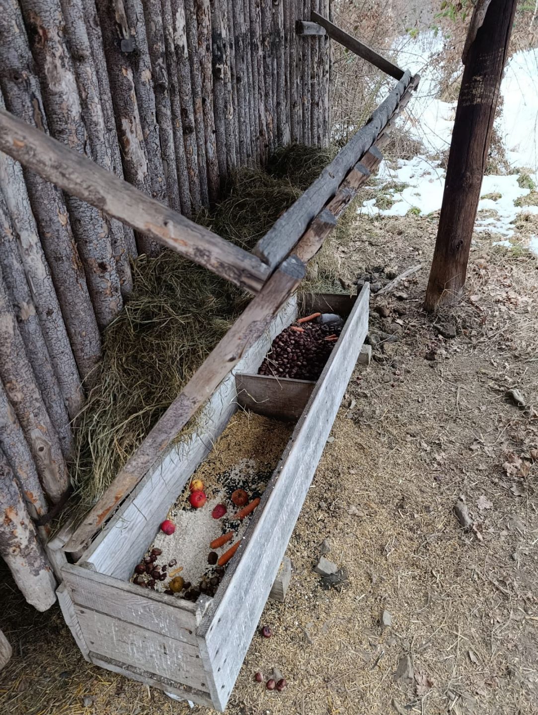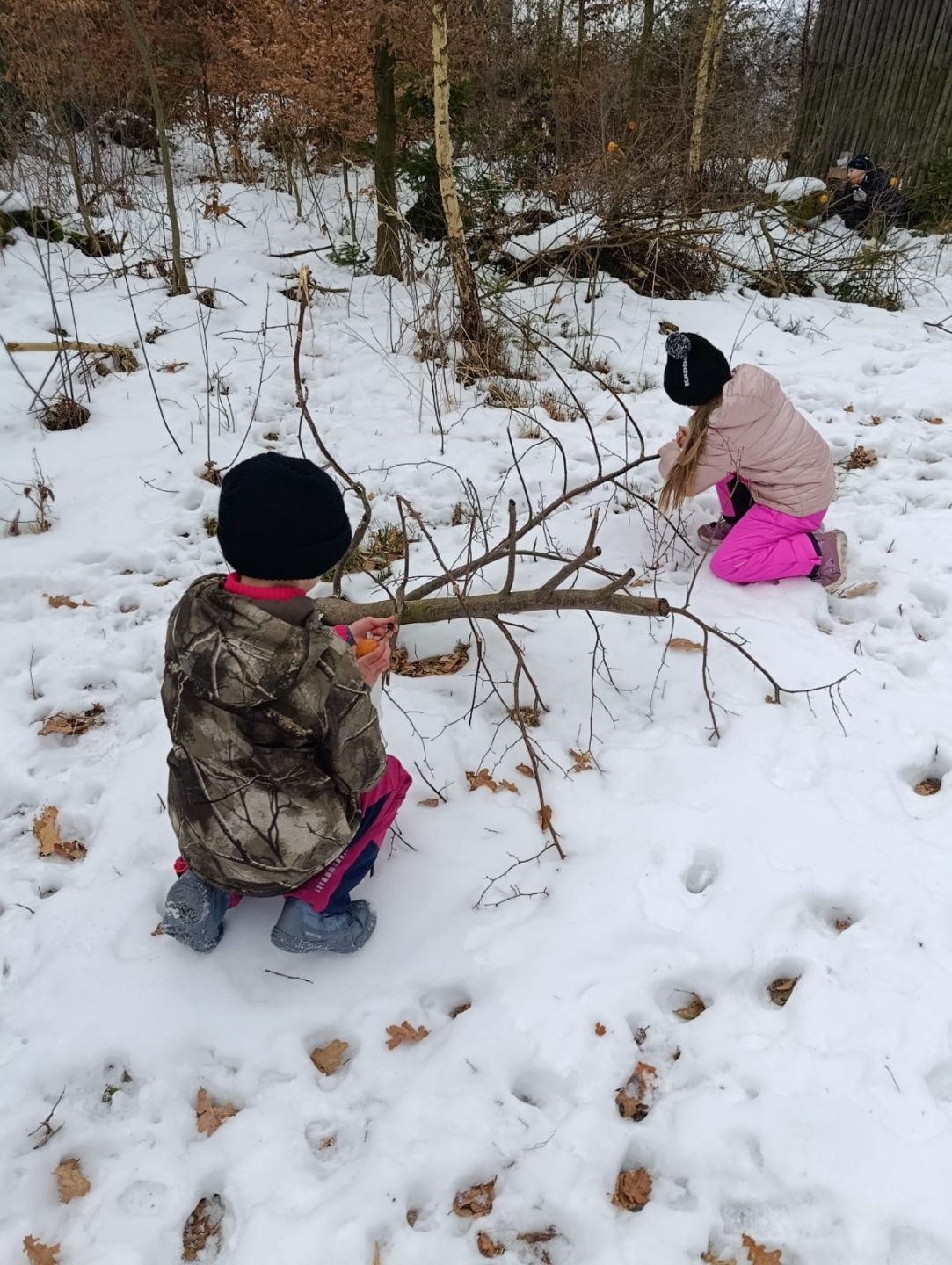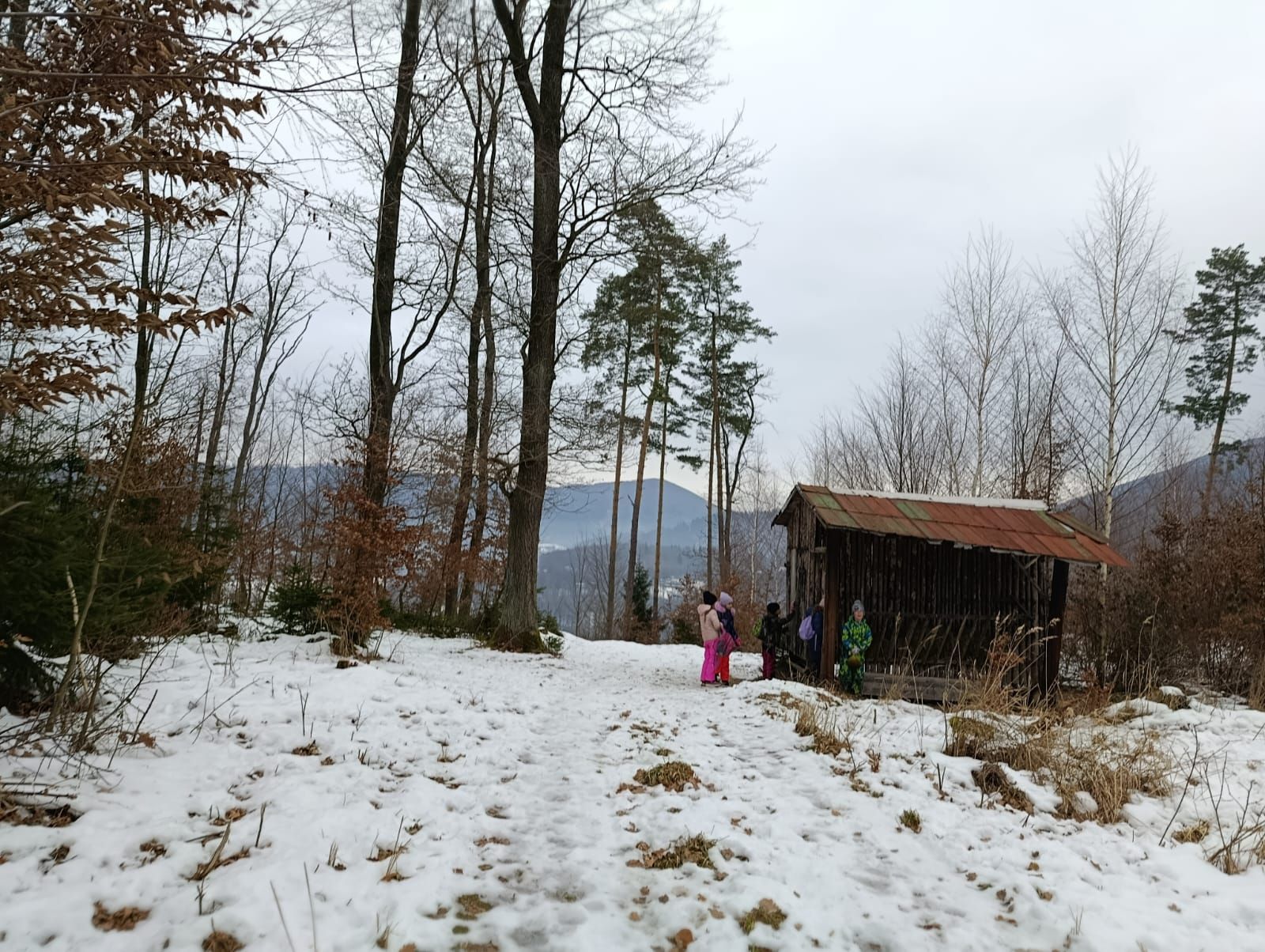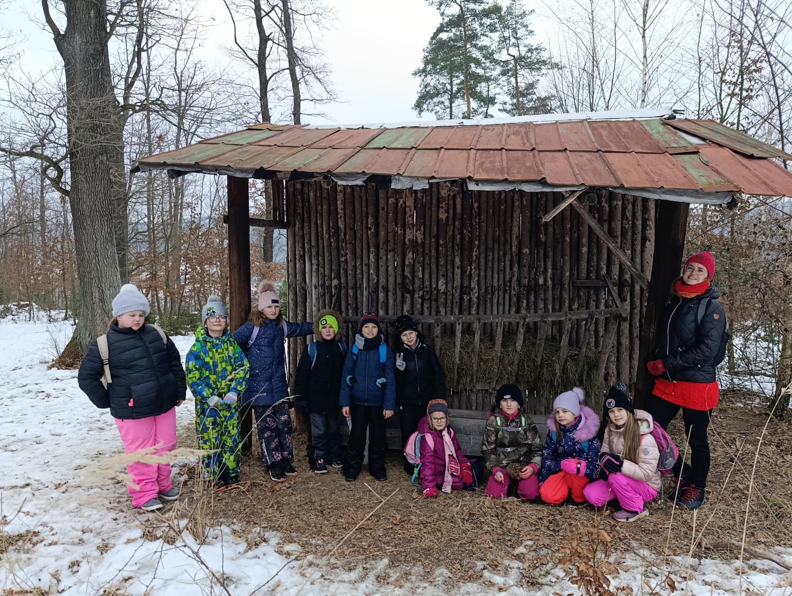 Děti myslely na zvířátka v lese, a tak jim přinesly do krmelce kaštany, které nasbíraly u školy a také mrkev, jablka a ovesné vločky. Zároveň si udělaly hezkou procházku zimní krajinou ve vzdáleném okolí školy.