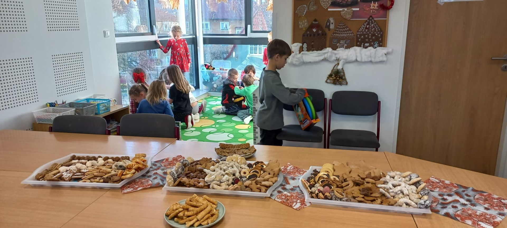 Do družiny obou oddělení přišel bohatý Ježíšek, děti byly nadšené, Ježíšek prý splnil jejich přání :-) Děti ochutnaly cukroví, které napekly v družině a cukroví které donesly z domu, rodičům děkujeme, dětem moc chutnalo!