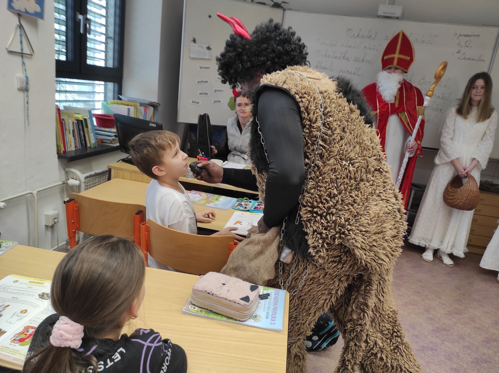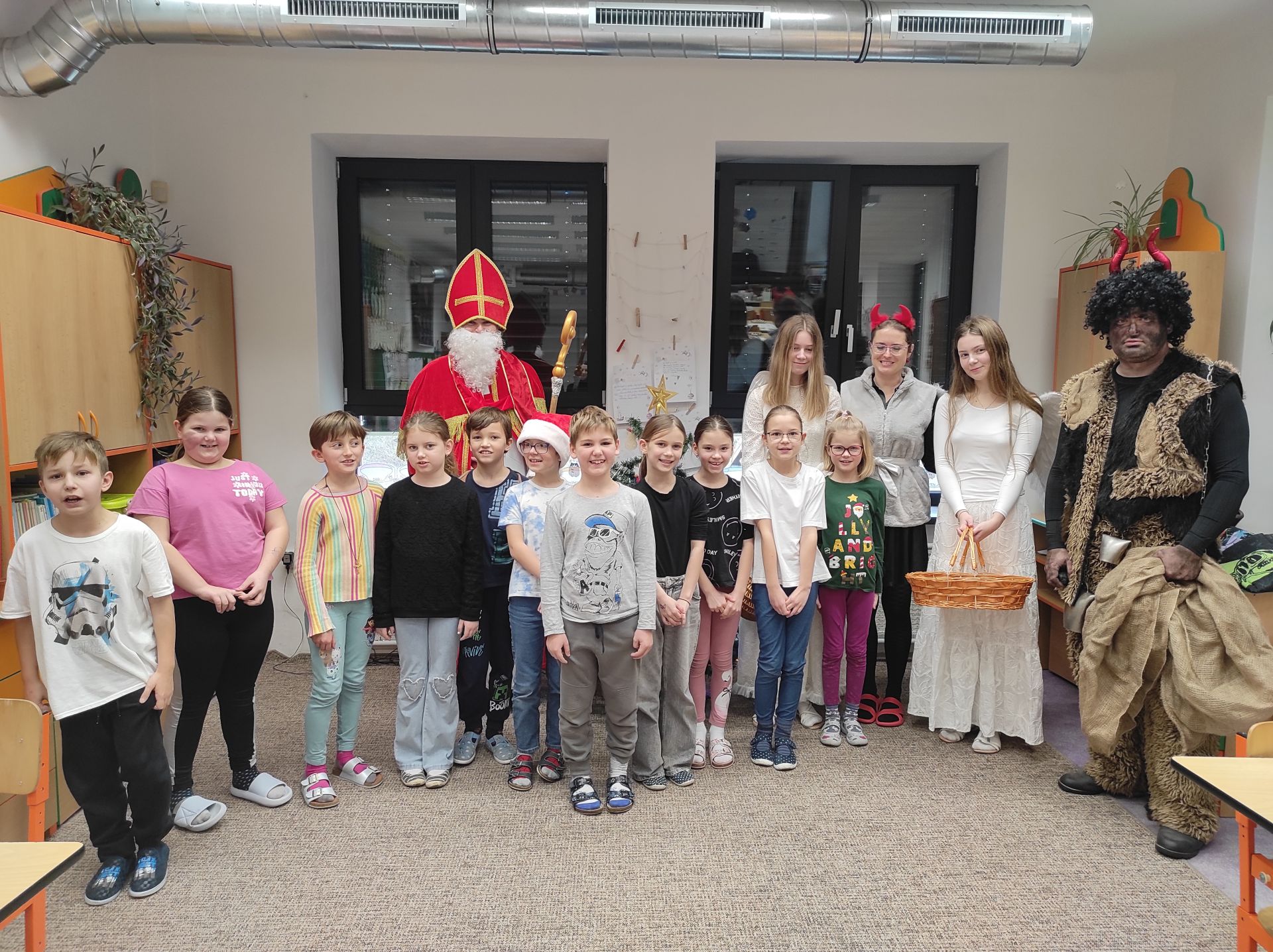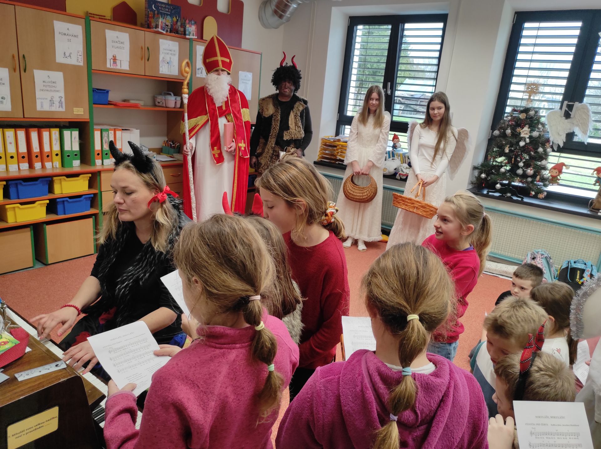 V pátek 5. prosince děti navštívil svatý Mikuláš v doprovodu dvou andělů a čerta. Ujistil se, že jsou děti slušně vychované a nemluví sprostě, společně si zazpívali a všechny děti podaroval sladkými odměnami.