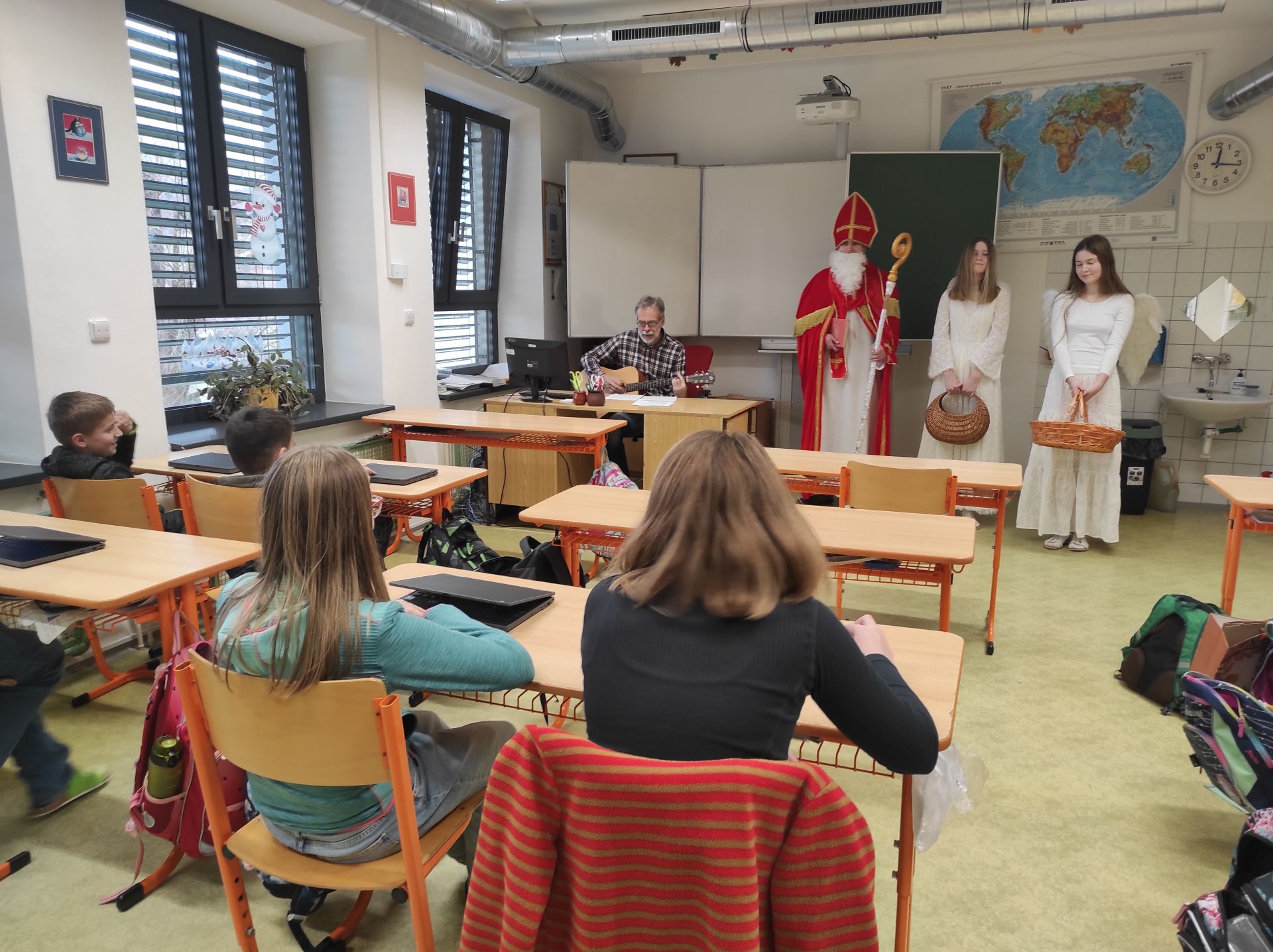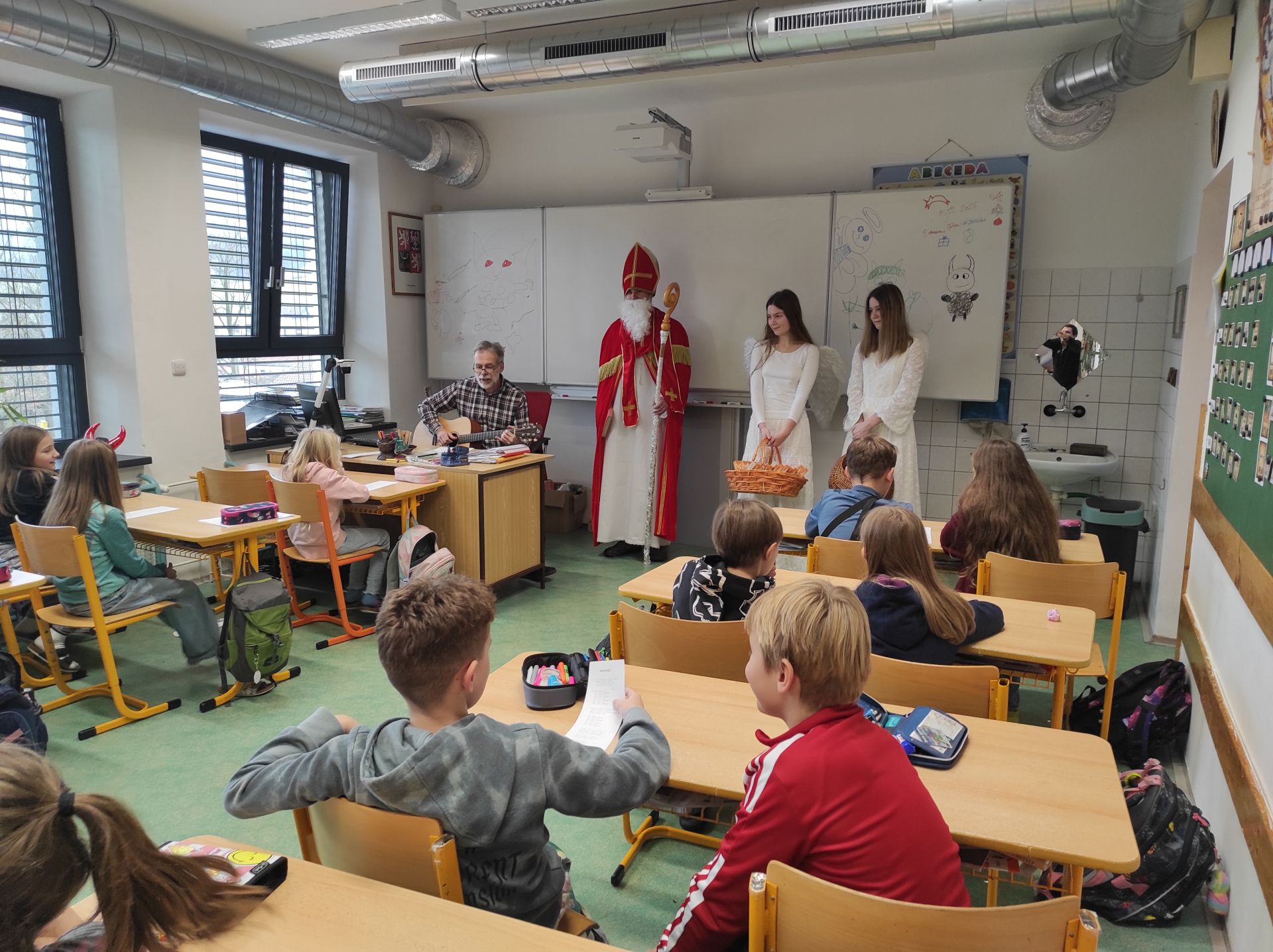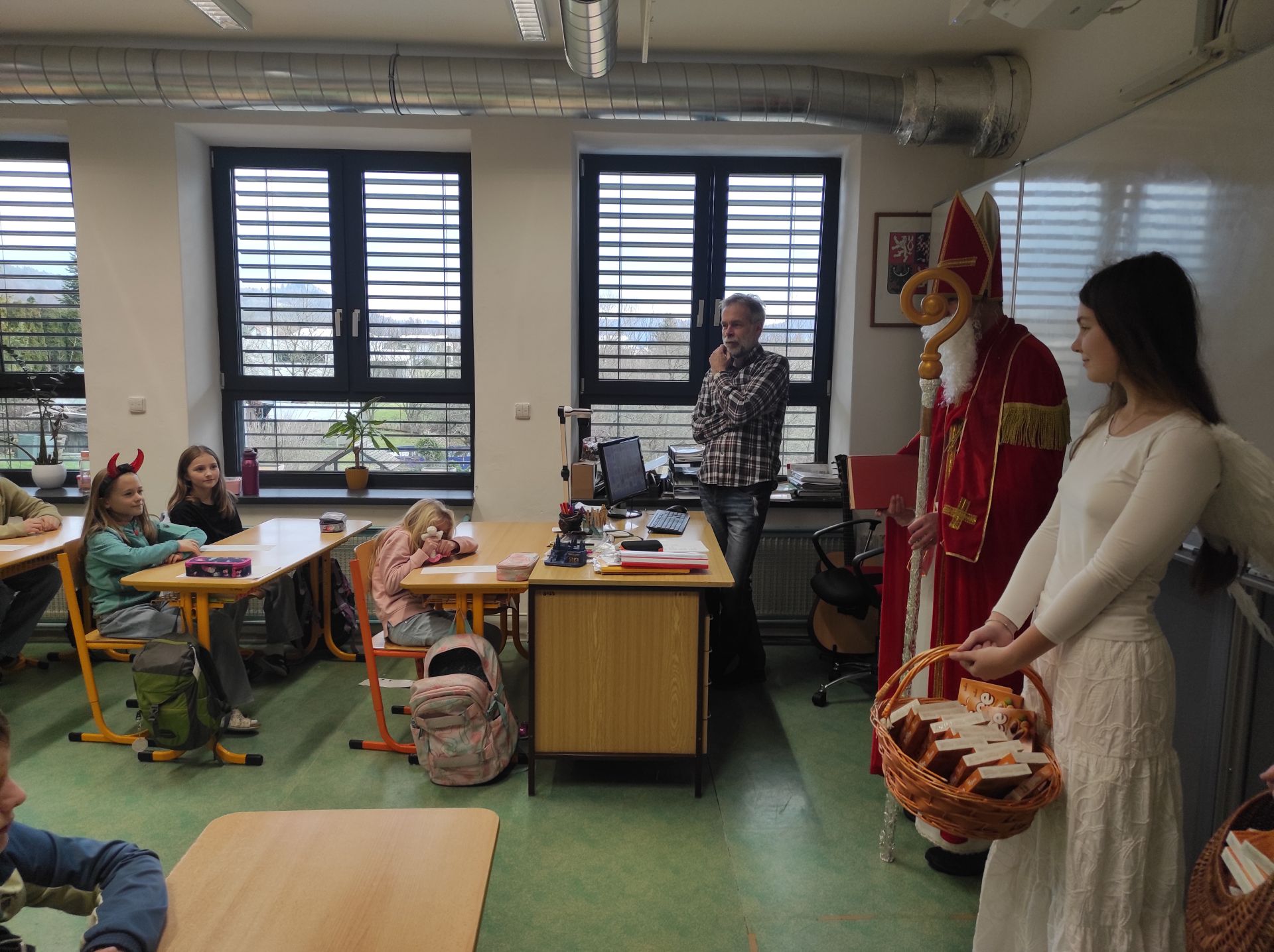 V pátek 5. prosince děti navštívil svatý Mikuláš v doprovodu dvou andělů a čerta. Ujistil se, že jsou děti slušně vychované a nemluví sprostě, společně si zazpívali a všechny děti podaroval sladkými odměnami.