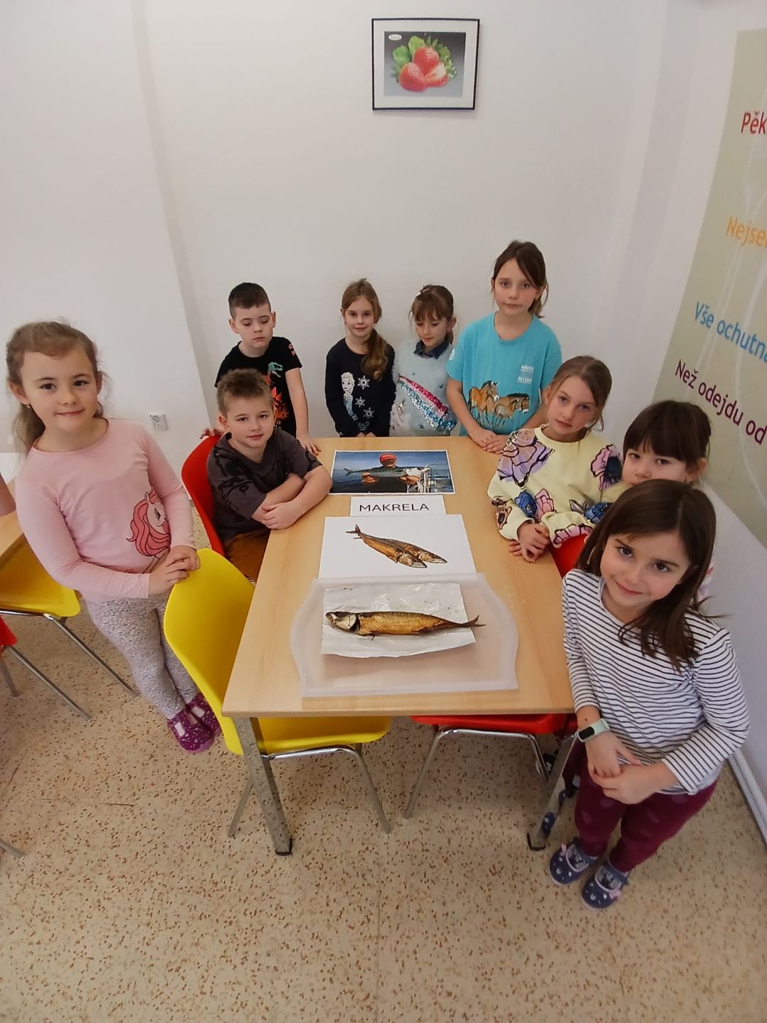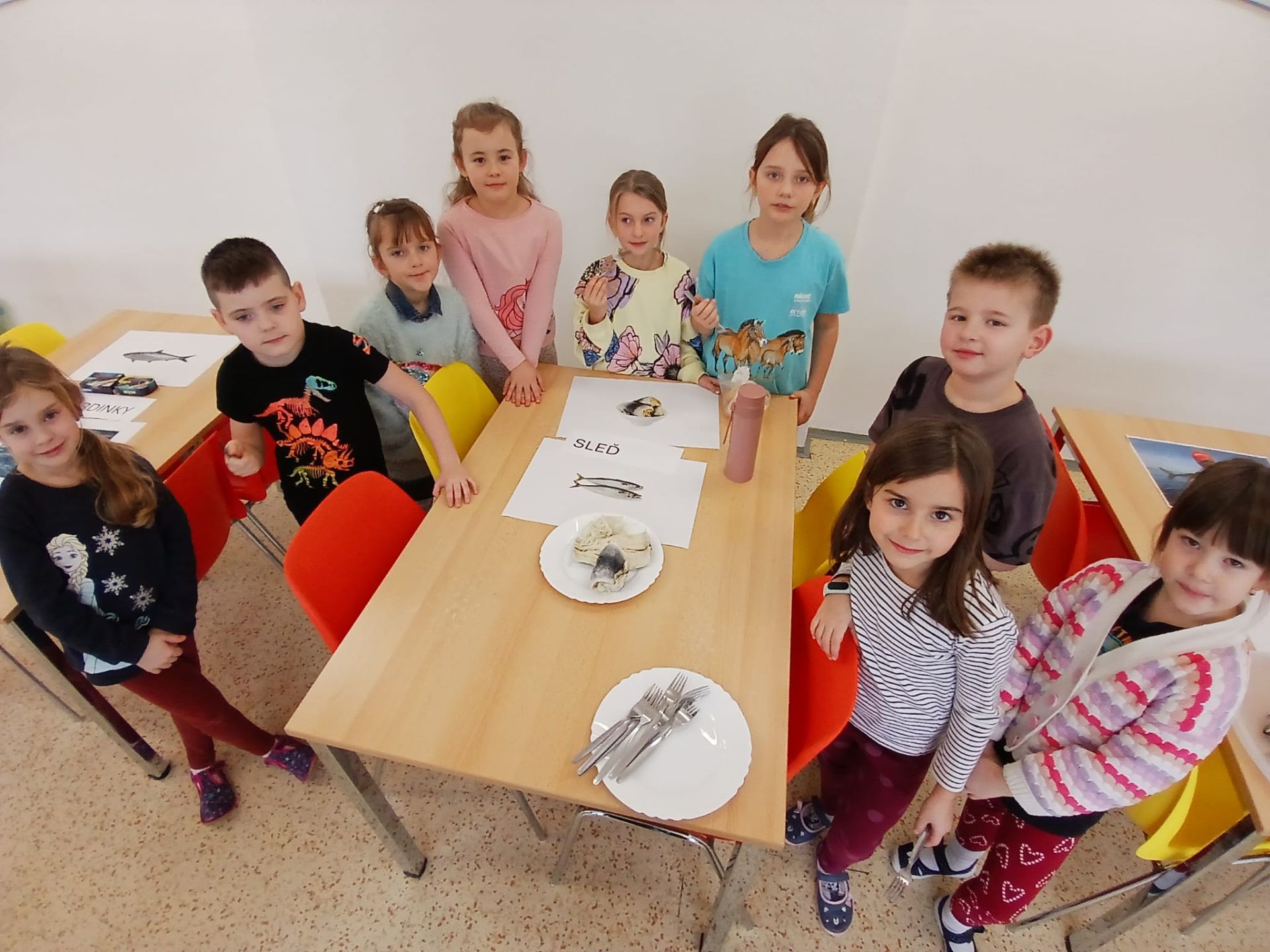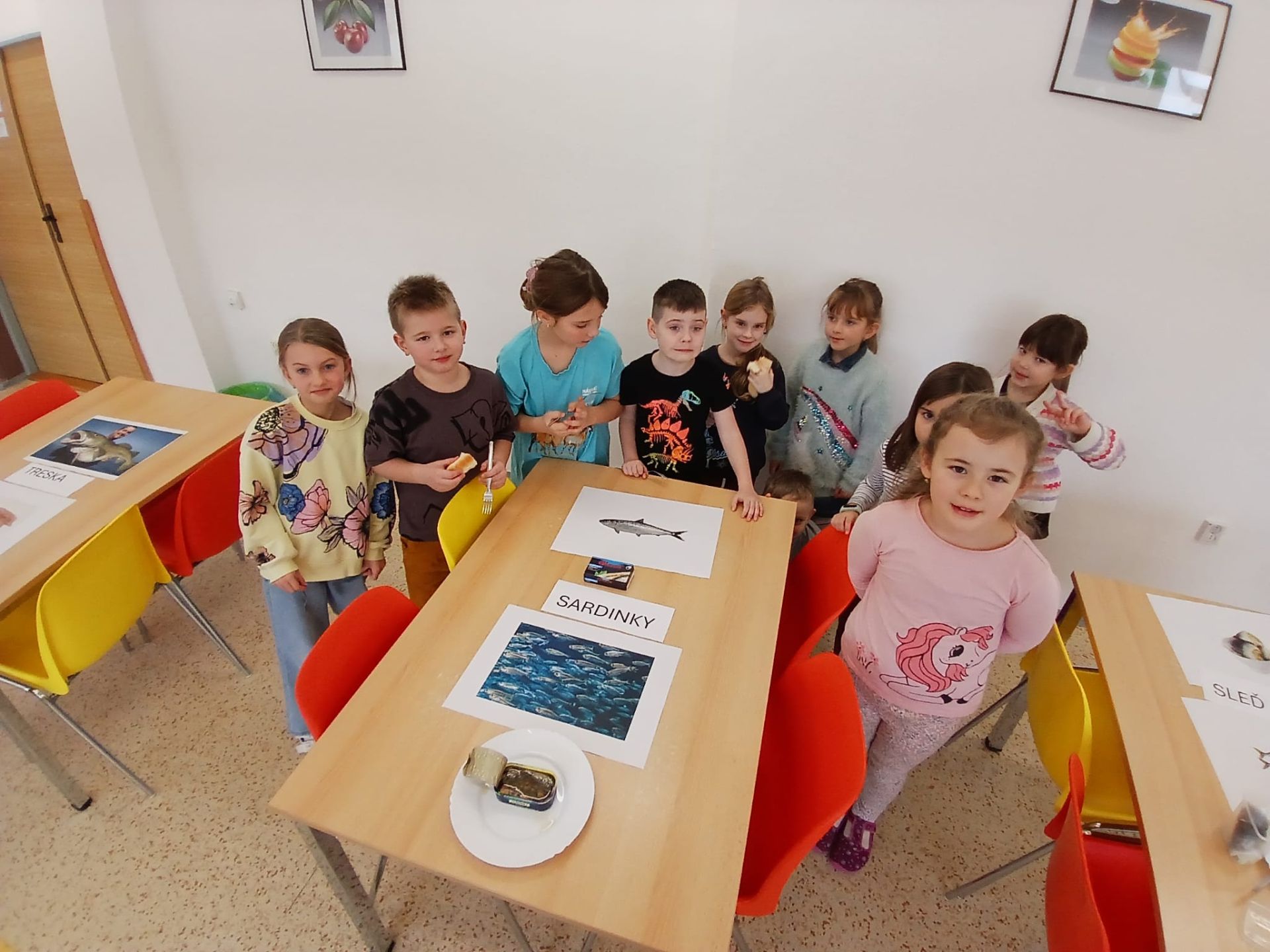 V rámci výuky o rybách si žáci 2. A vyzkoušeli chutě mořských ryb, které lze koupit běžně v obchodě. K porovnání si prohlédli fotografie živých ryb.
