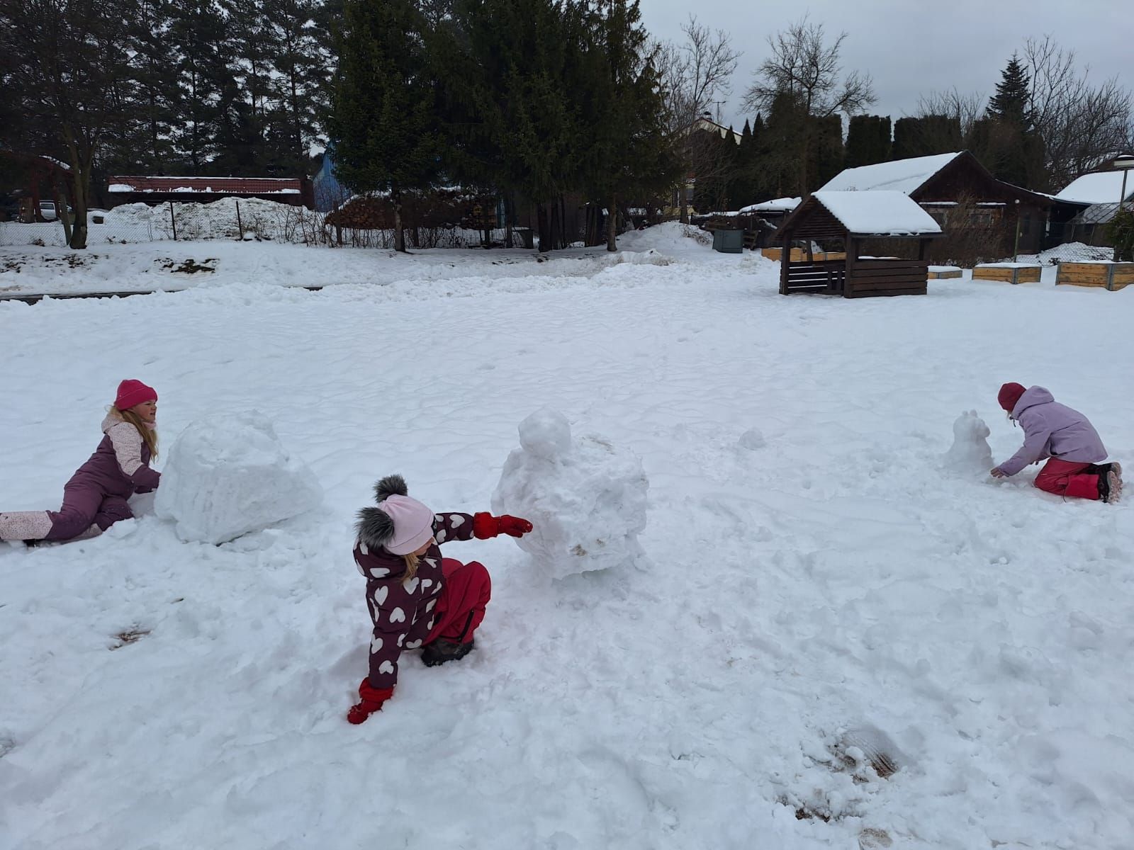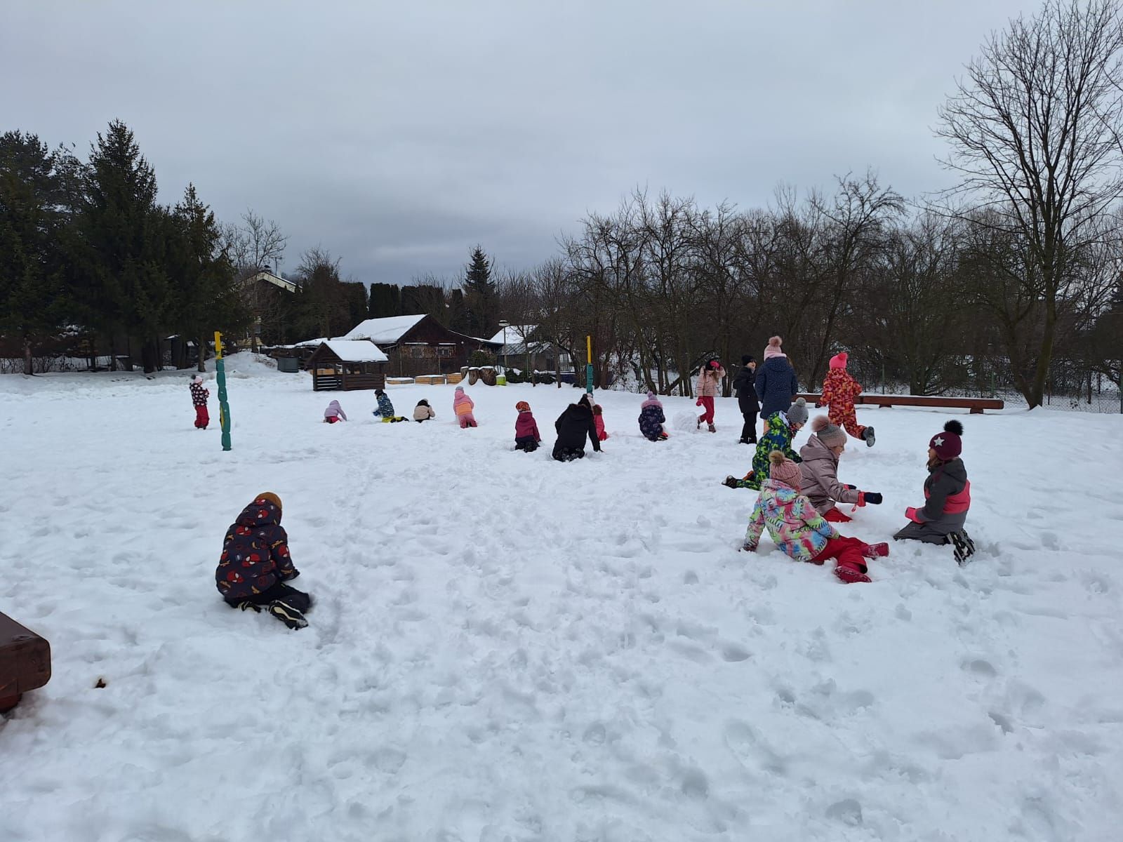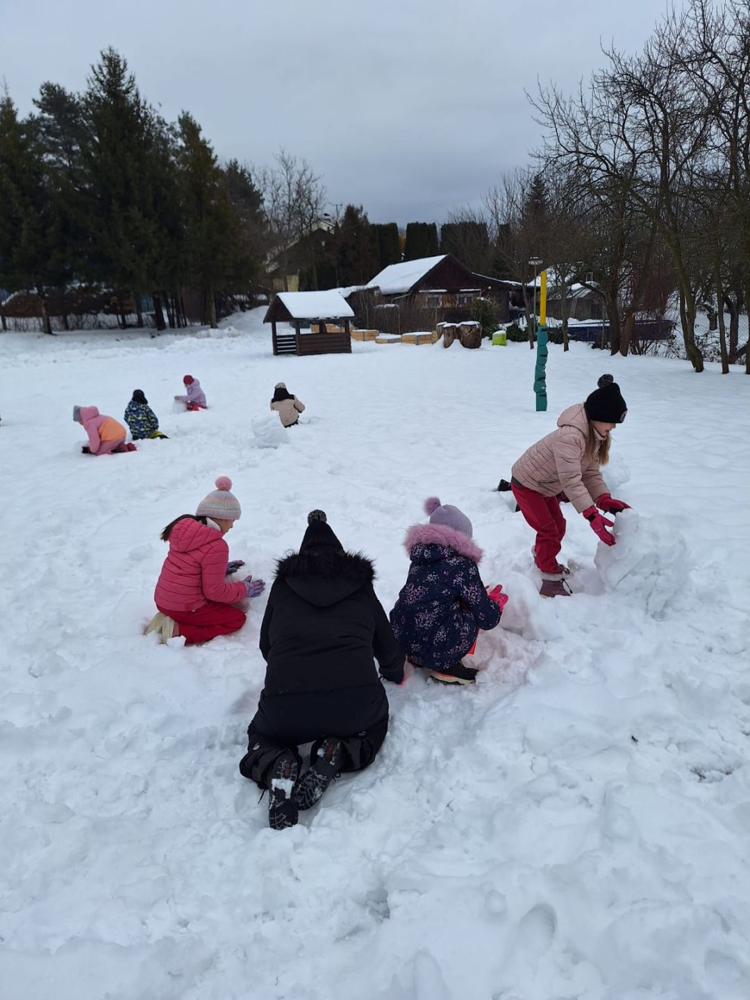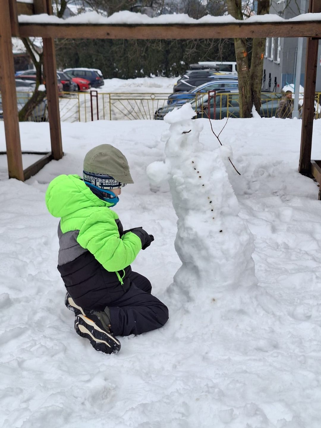 Žáci 2.B a třetího ročníku si zahráli v pracovních činnostech na sochaře a vytvořili na školní zahradě pár velmi unikátních kousků. Někteří vytvořili klasické sněhuláky, jiní různá zvířata od želvy, lva kabyparu, medvěda nebo až po labuť.