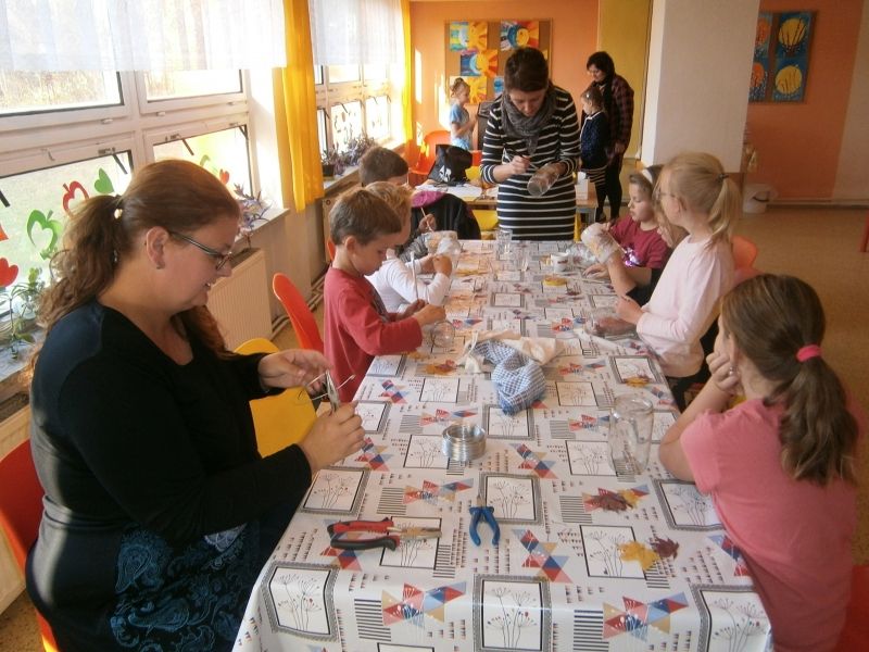 Ve čtvrtek 31.října proběhla 2.kreativní dílnička. 14 přihlášených dětí zdobilo za vydatné pomoci organizátorek dílniček Hanky a Hedviky podzimní lucerničky. Všechny děti byly moc šikovné, domů si odnášely krásné podzimní dekorace.