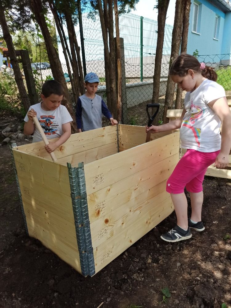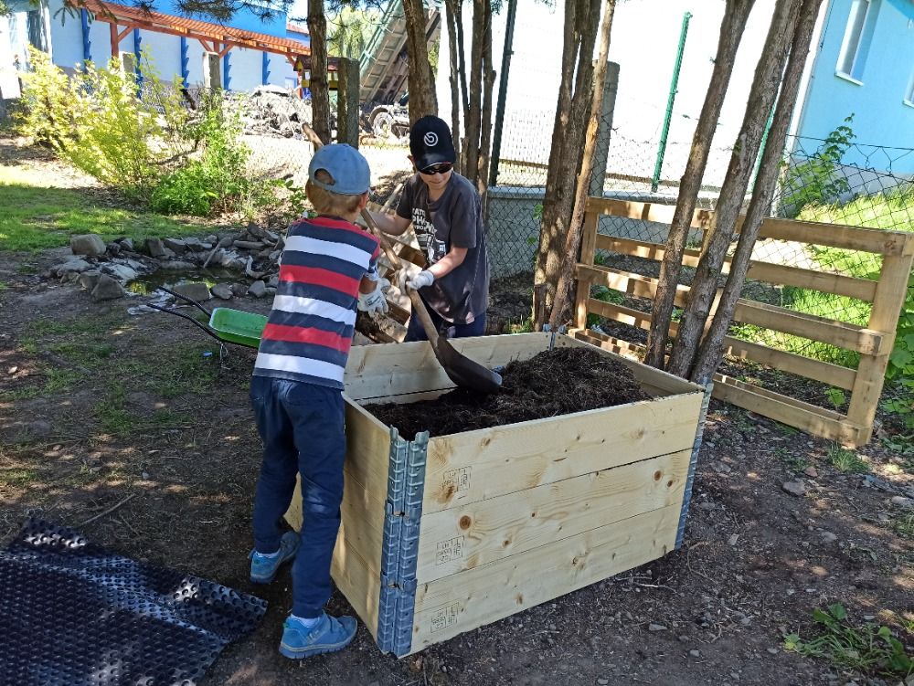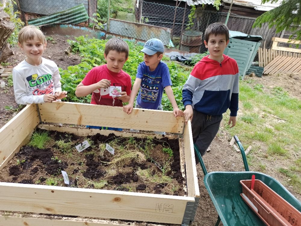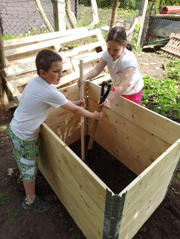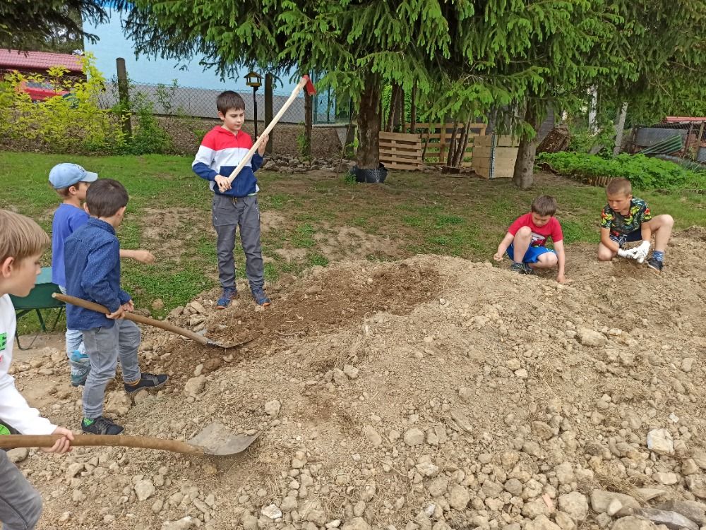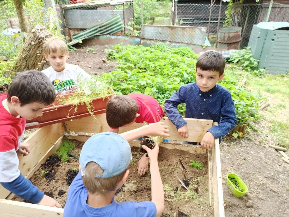 Děti v družině vybudovaly vyvýšený záhon, do kterého nasadily předpěstované bylinky z bylinkového koutku na chodbě školy. Zejména Vojta Pavlát s ohromným nasazením, Ondřej a Honza Moravčík, Adam Kuchyňa a někteří další malí "zahradníci" stavěli, přesívali a kopali hlínu, kompost, větvičky a nasázeli bylinky: majoránku, pažitku, saturejku, mátu, bazalku, kopr, měsíční jahody a cibuli. Děti se už těší na svačinu s pažitkou, mátový čaj a jiné přírodní dobroty - vlastnoručně vypěstované.
