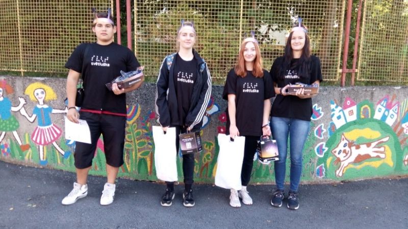 „Den pro Světlušku“ se odehrál v Rožnově pod Radhoštěm v pátek 11. 9. pod záštitou Základní školy Záhumení v Rožnově pod Radhoštěm. Od 7:00 hodin prodávaly dobrovolnické dvojice - "Světlušky" ze Střední zemědělské a přírodovědné školy v Rožnově pod Radhoštěm v ZŠ Záhumení i v centru města Rožnova p. R. sbírkové předměty, jejichž zakoupením přispěli všichni dárci na projekty Nadace Českého rozhlasu "Světluška" pro projekty pro nevidomé děti i dospělé. Paní učitelky i páni učitelé si v rámci výuky připravili aktivity pro děti ve třídě v duchu "být nevidomým dítětem". Od 12:00 hodin probíhala cukrárna "Po slepu" na školní zahradě v ZŠ Záhumení díky skvělým maminkám žáků školy, které napekly spoustu výtečných zákusků, muffinů, koláčů, buchet atd., při kterých si děti i dospělí vyzkoušeli prakticky být nevidomým a jíst zákusky, moučníky a pít nealko nápoje apod. Ve 14:00 hodin zahrálo loutkové divadlo V batohu interaktivní pohádku O Nebojsovi pro děti nejen z družiny. Výtěžek z dobrovolného vstupného jde také opět na NČR Světluška. Děkujeme za spolupráci Střední zemědělské a přírodovědné škole v Rožnově pod Radhoštěm a jejím studentkám i studentům, kteří dobrovolně pracovali jako "Světlušky" a rozzářili mnohá srdce Rožnováků pro nevidomé děti i dospělé, dále děkujeme T -Klubu, kulturní agentuře za propagaci plakátů pro Světlušku, ochotným maminkám za pečení pro cukrárnu "Po slepu", všem dárcům, kteří si koupili sbírkové předměty, všem pedagogům s žáky ZŠ Záhumení, jež se zapojili do aktivit, Martinovi Vojtovičovi za krásné fotografie z divadla pro Světlušku a Nadaci Českého rozhlasu Světluška na projekty pro nevidomé. V nejbližší době po uzavření sbírky bude na webu ZŠ Záhumení zveřejněný celkový finanční výtěžek z Rožnova p. R. věnovaný NČRS.