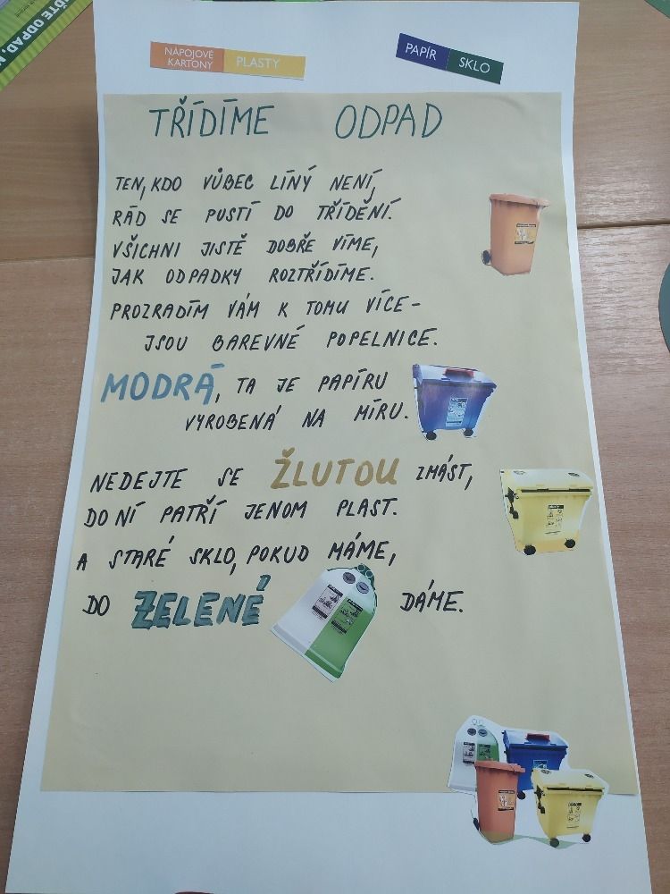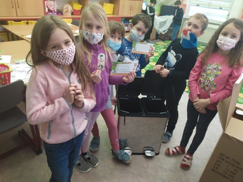 V úterý 16. února si žáci 2. třídy v rámci odpolední družiny osvojili správné třídění odpadu. V průběhu projektového dne „Třídíme odpady“ si děti připomněly, jak se bezpečně a prospěšně chovat k přírodě, co je to recyklační koloběh a jak vlastně odpady putují z kontejnerů na skládku. Kdo do této doby nevěděl s jistotou, do popelnice které barvy vyhodit papír, plasty, sáček od svačiny nebo prázdnou tubu od lepidla, nyní v tom nikdo ze zúčastněných nemá žádné nesrovnalosti a bez váhání určitě správně všechno roztřídí. Děti se zapojily do pohybových her a aktivit. Součástí také byly soutěže v přesnosti a rychlosti třídění. Na závěr celého ekologické odpoledne dostaly děti odměnu i sladkost za šikovnost a do družinky přibyl i nový odpadkový koš, kde budeme dnešní teoretické znalosti o třídění odpadu i prakticky zkoušet.