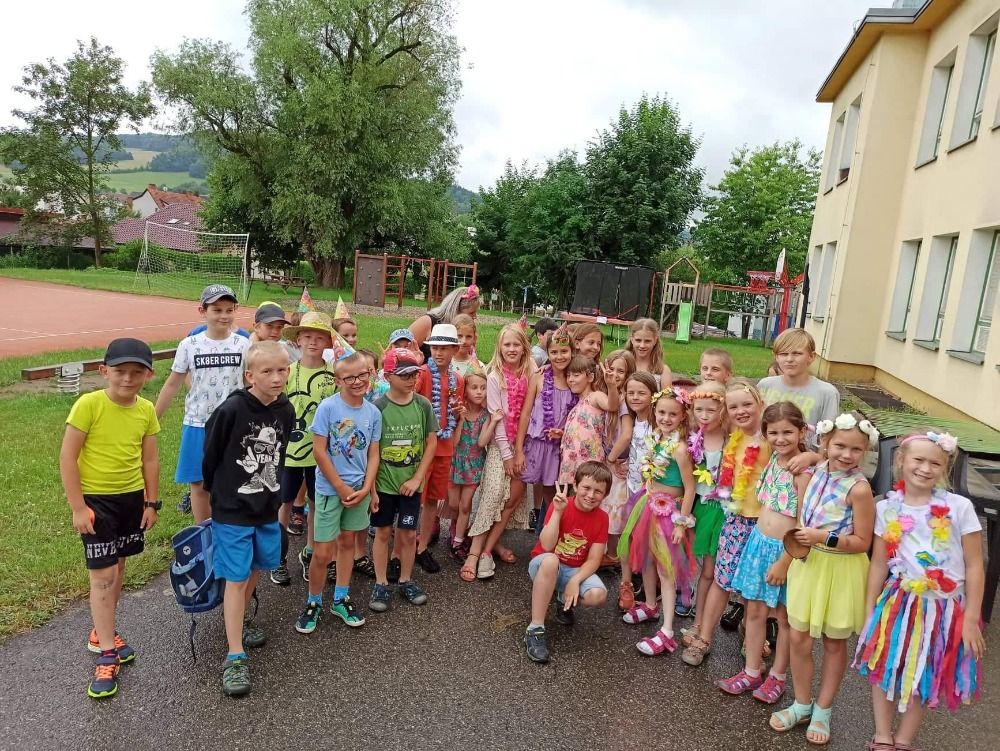 Ani jsme se nenadáli a je tu konec školního roku. Celý rok si děti ve školní družině užily pracovních,  výtvarných, sportovních aktivit, naučily se vzájemné ohleduplnosti, rozvíjely mezi s sebou kamarádské vztahy a naučily se pozorovat a chránit přírodu. V posledním školním týdnu se konala ve družině barevná Hawaj Party a rozloučili jsme se tak společně se školním rokem. Na zahradě vyhrávala hudba, jedli jsme spoustu dobrot, co nám napekly maminky a babičky a žáci si tak naposledy zasoutěžili na školním hřišti. Bylo to moc prima odpoledne. Přejeme všem krásné a pohodové prázdniny plné sluníčka a krásných zážitků.