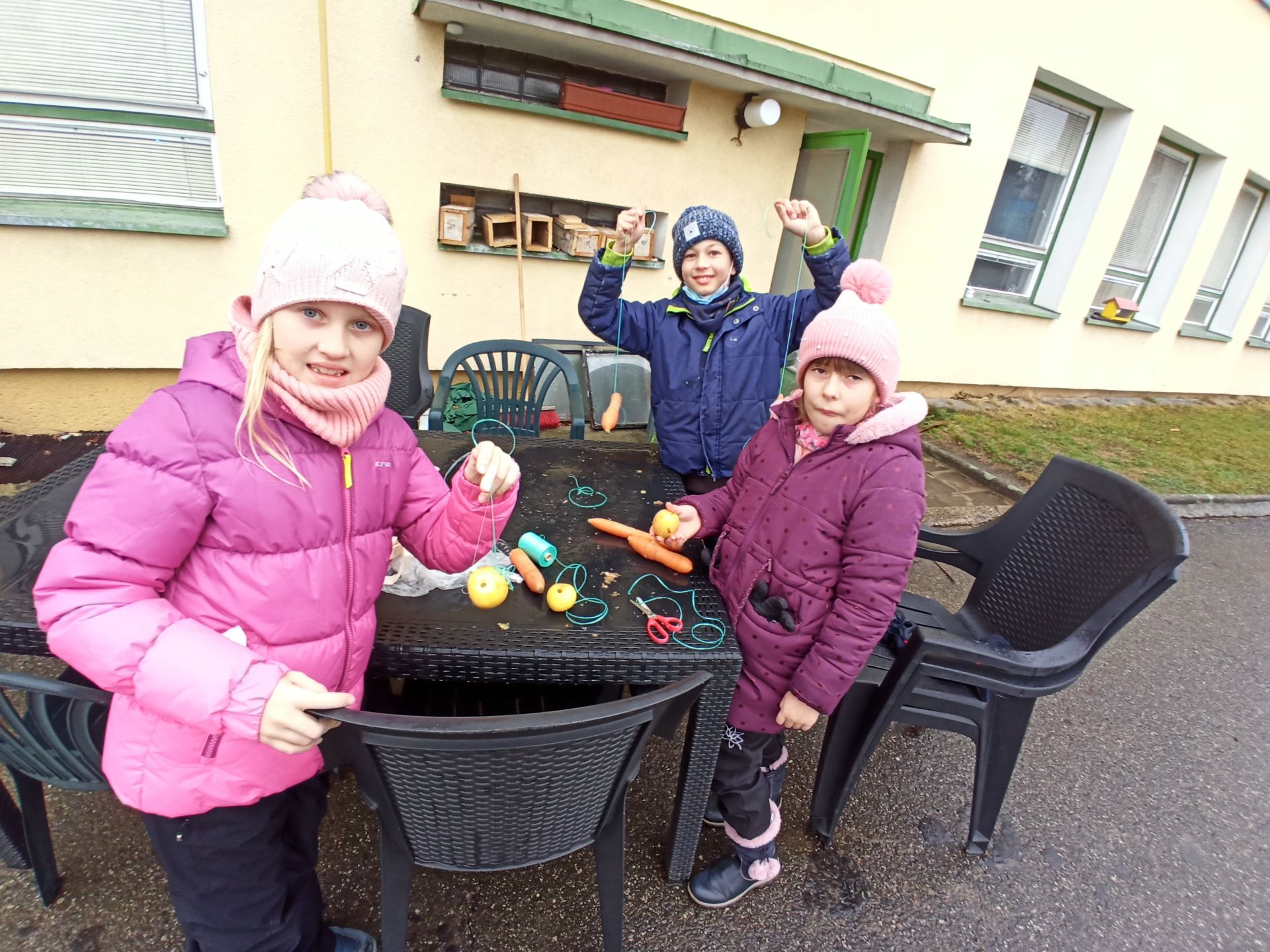 Letos Ježíšek nadělil dárky v družině na stromeček ptákům a zvířatům, aby se v zimě netrápili hladem. Děti přinesly jablíčka, mrkve, staré pečivo, kaštany a ořechy, Ježíšek přinesl lojové koule a slunečnicová semena. Společně potom nazdobily smrk, zazpívaly vánoční koledy a slunečnice nasypaly do všech krmítek na školní zahradě.