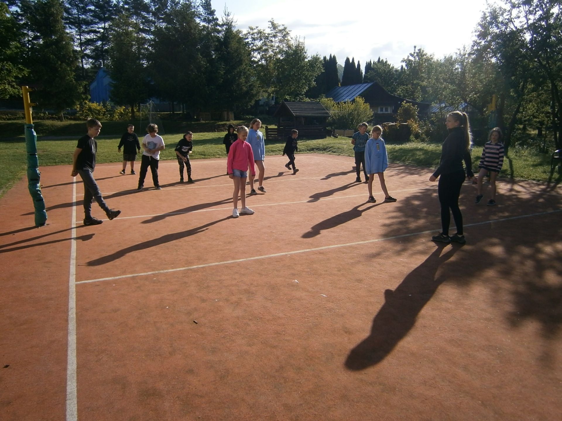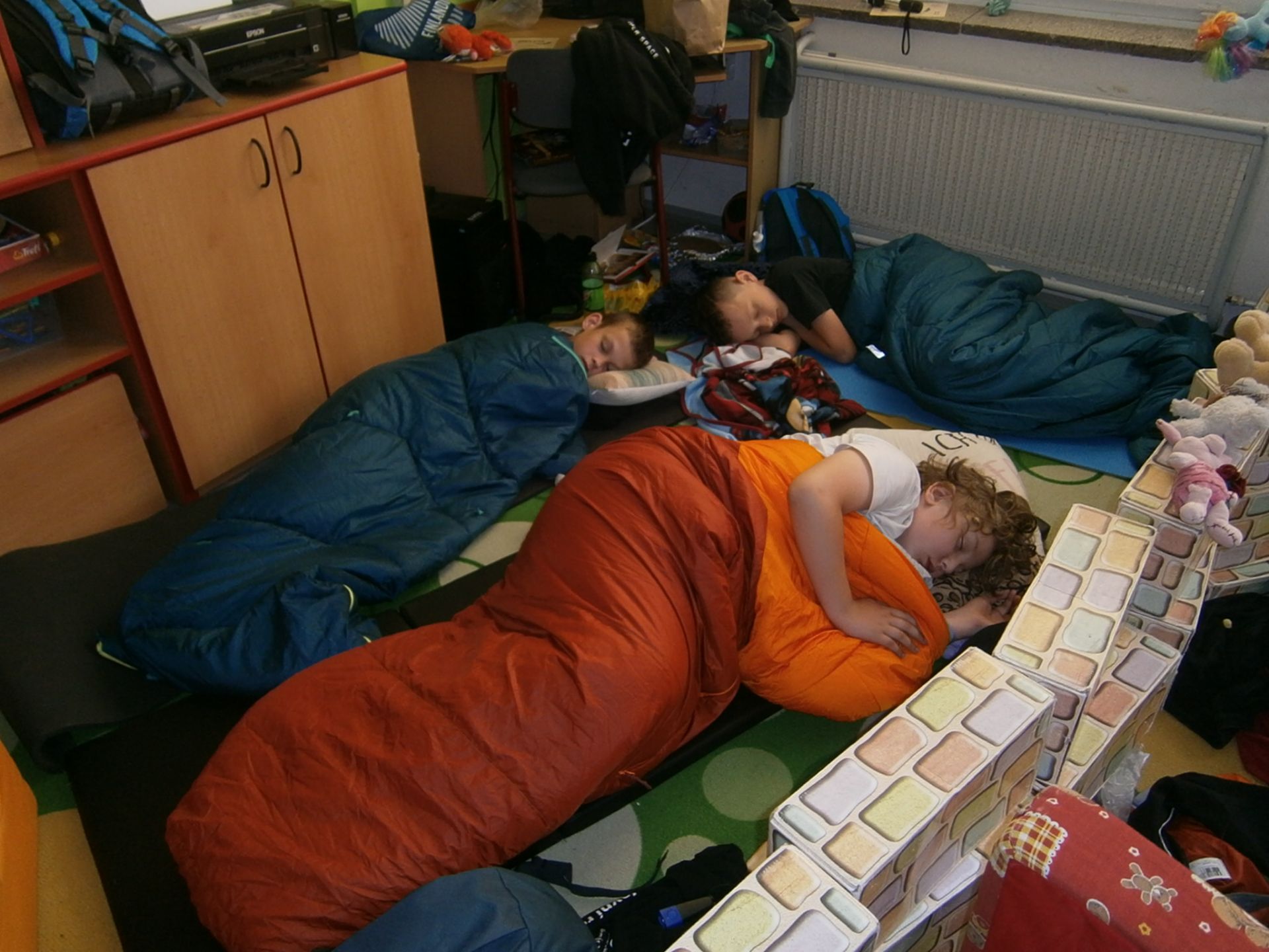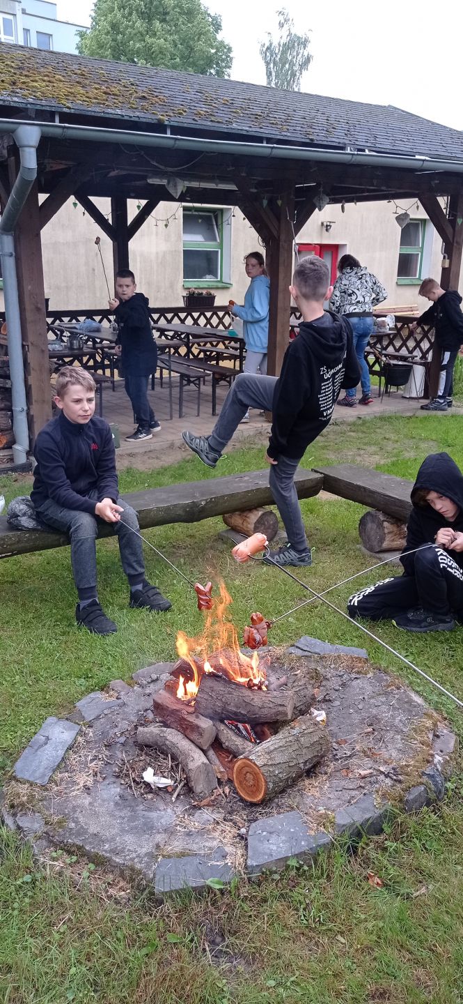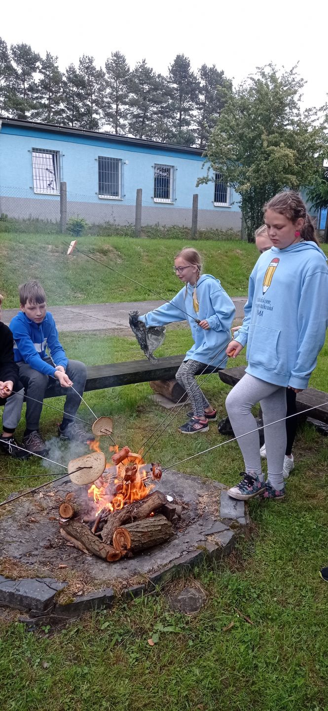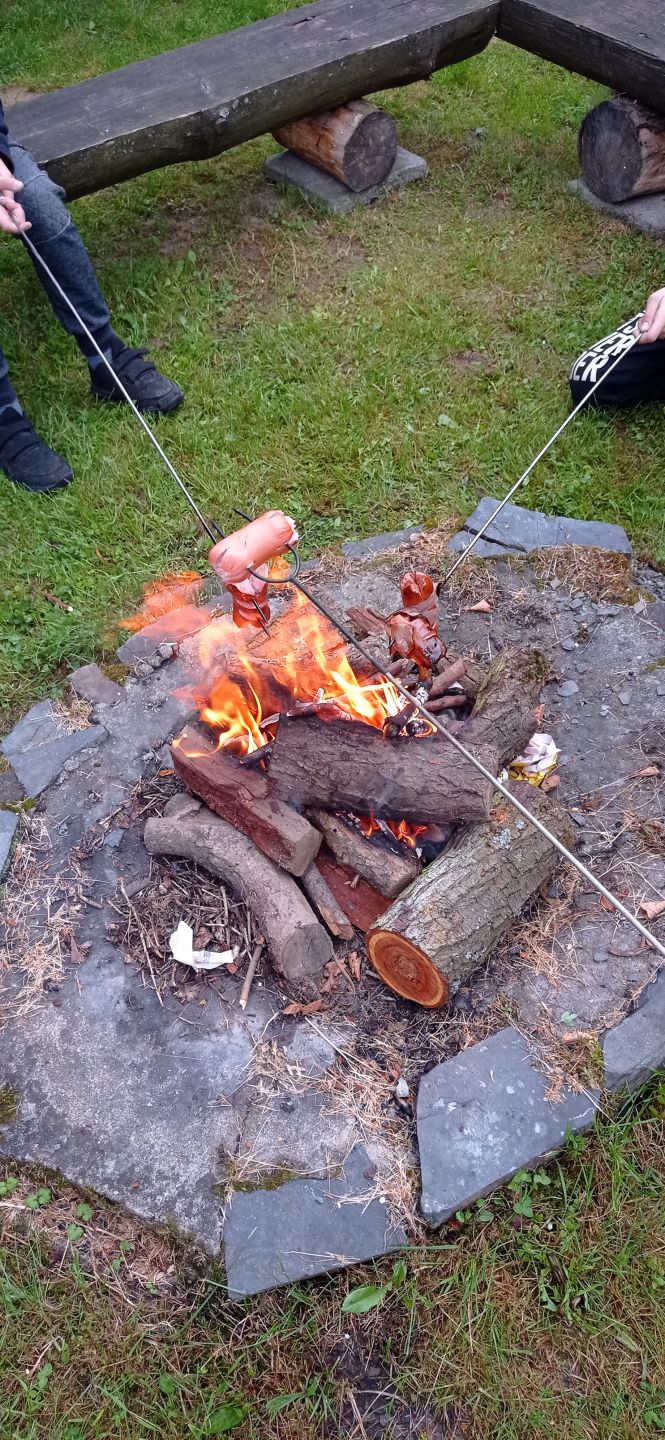 Po společném uvítání se děti ubytovaly v přízemních učebnách školy. Pak nachystaly ohniště, kde se opékaly špekáčky.