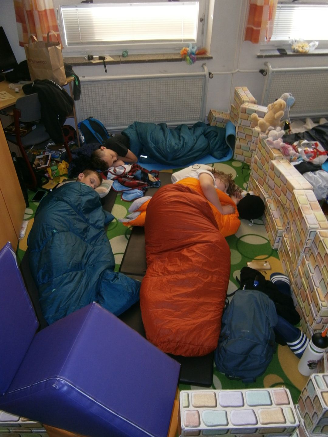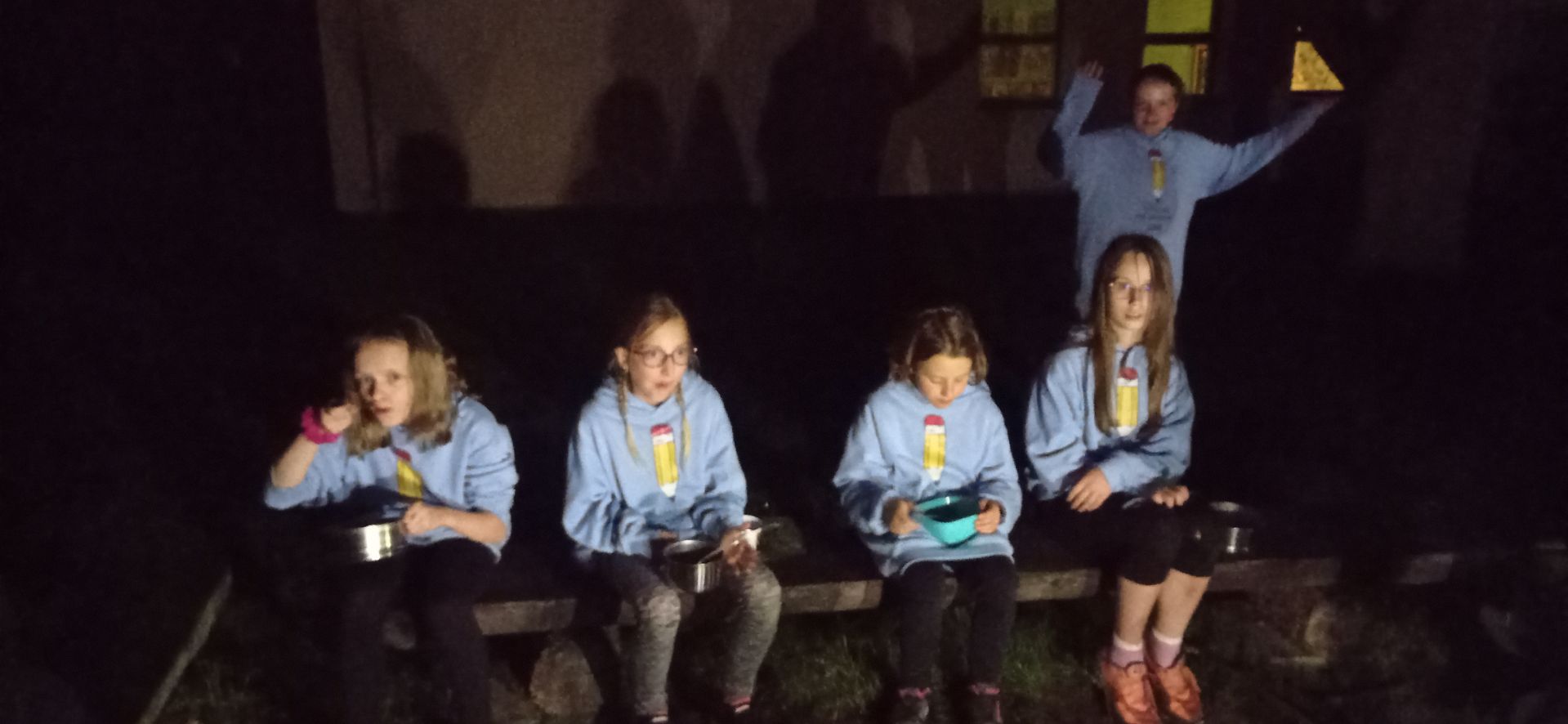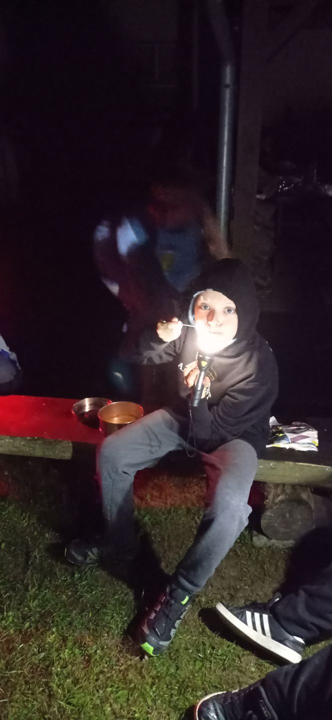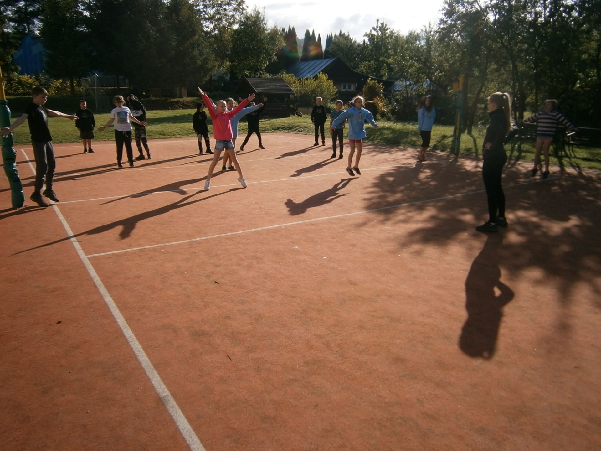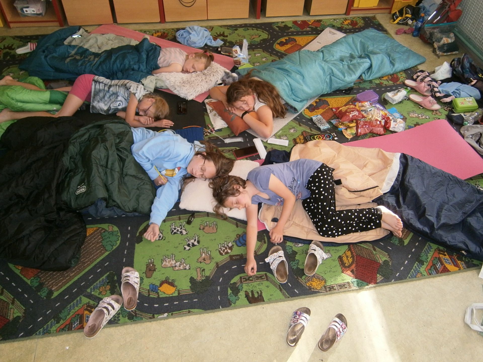 Po společném uvítání se děti ubytovaly v přízemních učebnách školy. Pak nachystaly ohniště, kde se opékaly špekáčky.