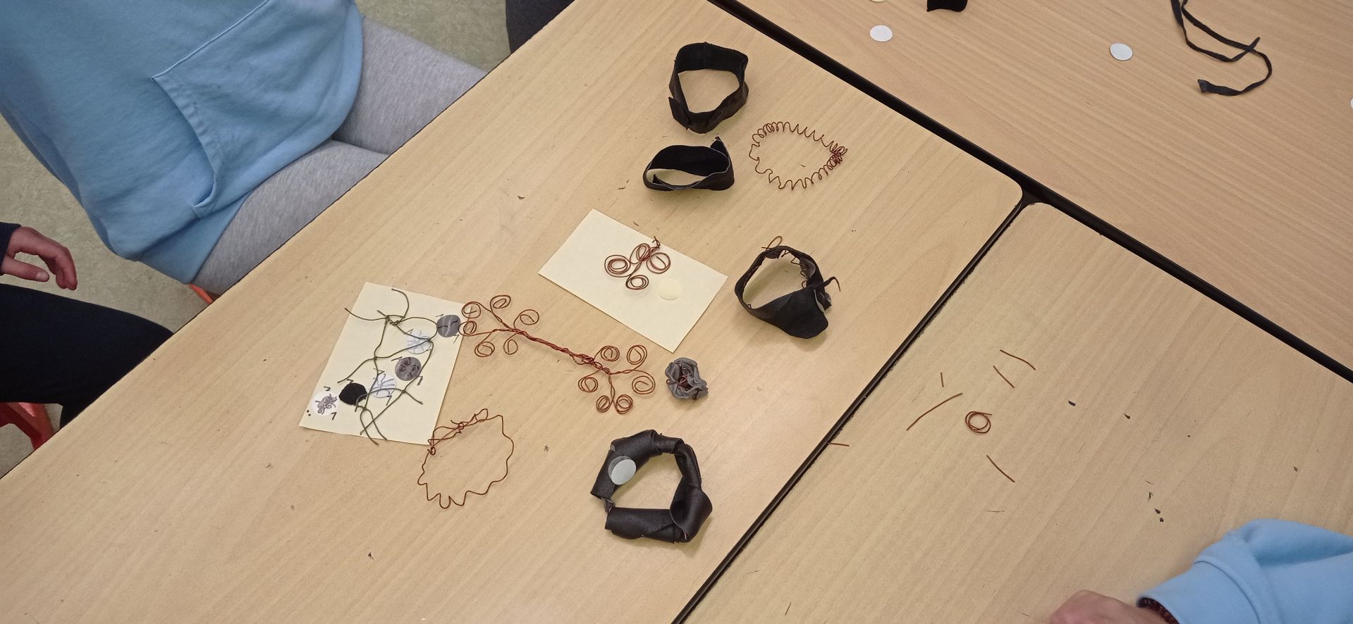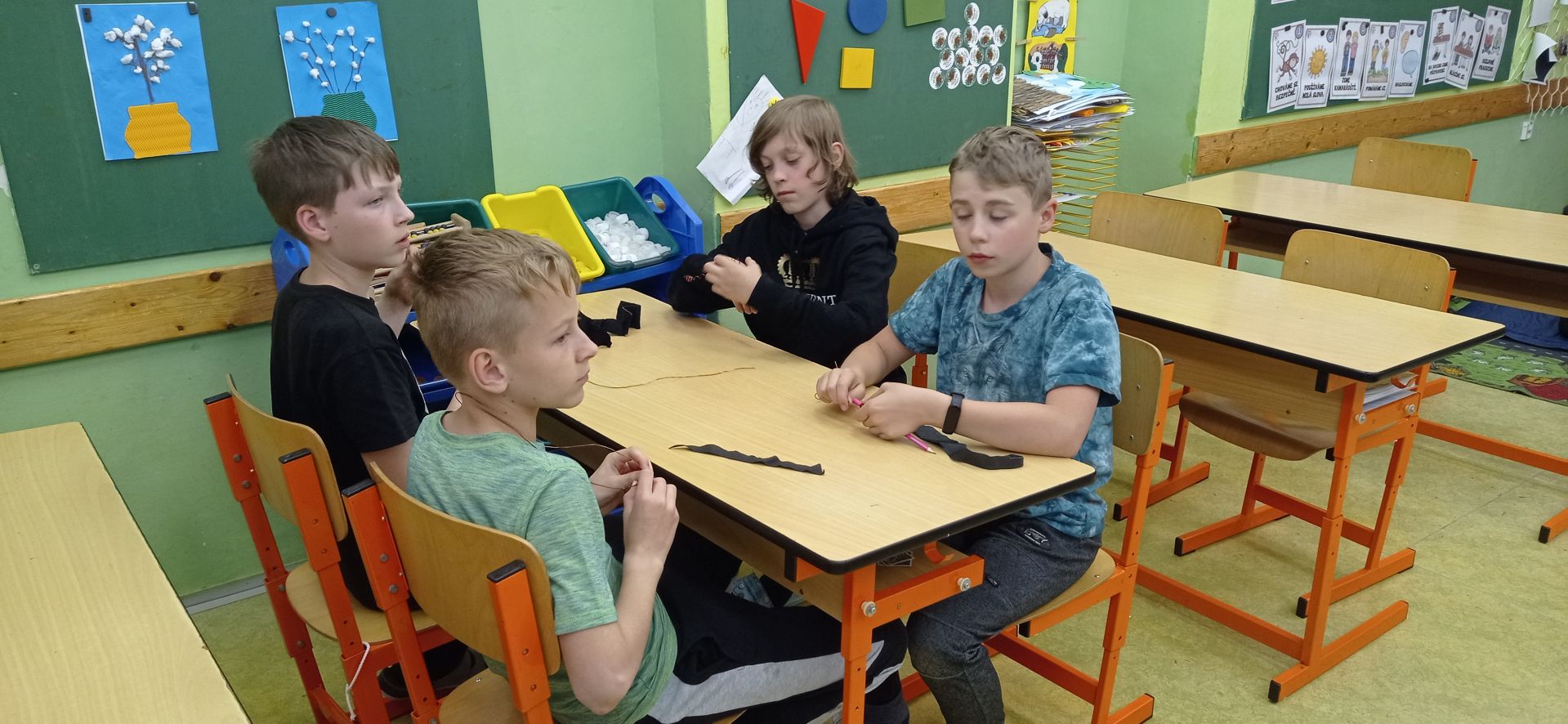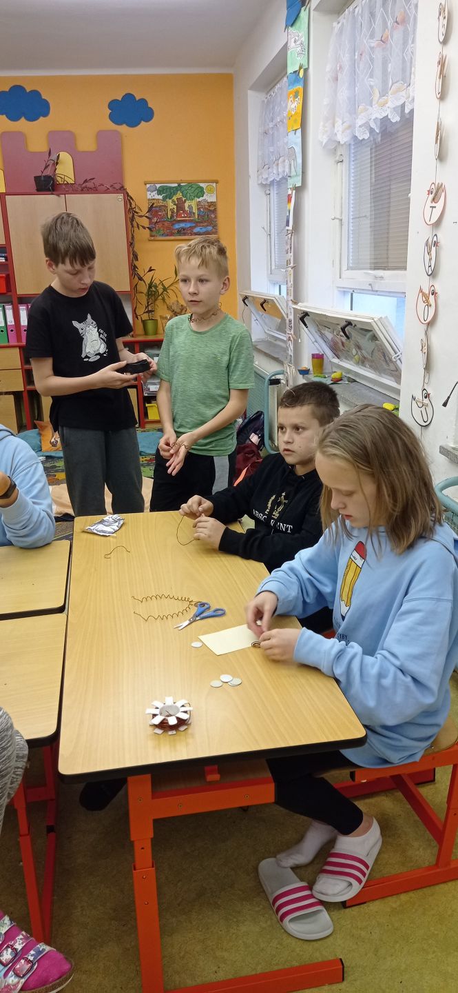 V době deště  si žáci zkoušeli vyrobit keltské ozdoby z měděných drátků a kousků kůží, soutěžili ve skládání miniaturních kostek.