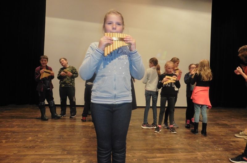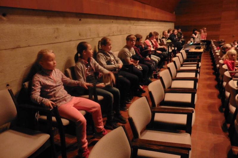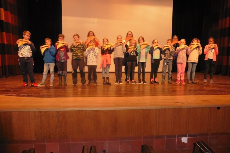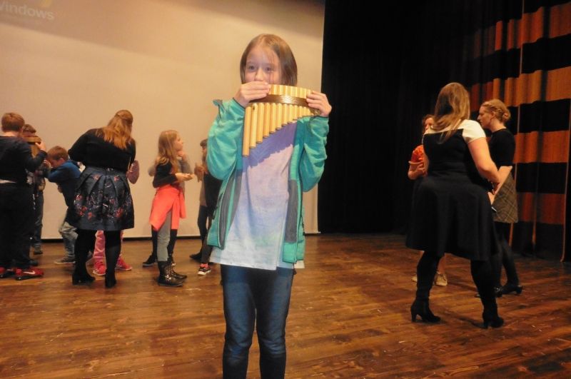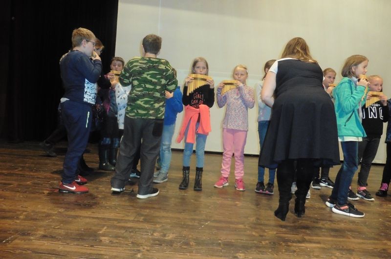 Čtvrťáci se v pátek 4.října vydali do Janíkovy stodoly na pořad nazvaný Božská flétna. Měli si vzít s sebou nůžku, což na koncert nebývá zrovna obvyklá rekvizita. Proto šli především zvědavě . Nejprve si poslechli několik skladeb, které hrály solistky ze Švýcarska na Panovy flétny. Nástroje se mezi sebou lišily rozměry i počtem trubic, tedy i hloubkou tónů. Ve výtvarné dílničce si děti malou flétnu samy vyrobily, přilepily na proužek papíru a některé stihly i nazdobit. V závěru viděly krátký film o výrobě zmíněného nástroje. Přítomen byl i sám autor, takže mu děti mohly položit spoustu zvídavých otázek. Bylo to zajímavé, poučné, zábavné, veselé a příjemné dopoledne. Do školy se čtvrťáci vraceli s úsměvem a prima náladou.