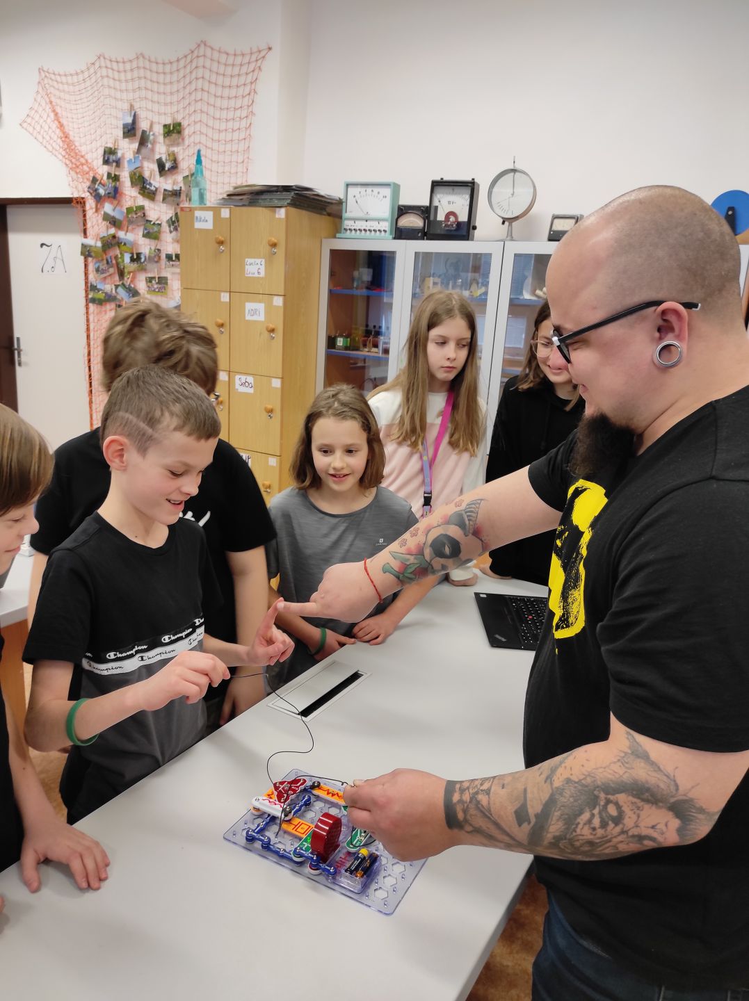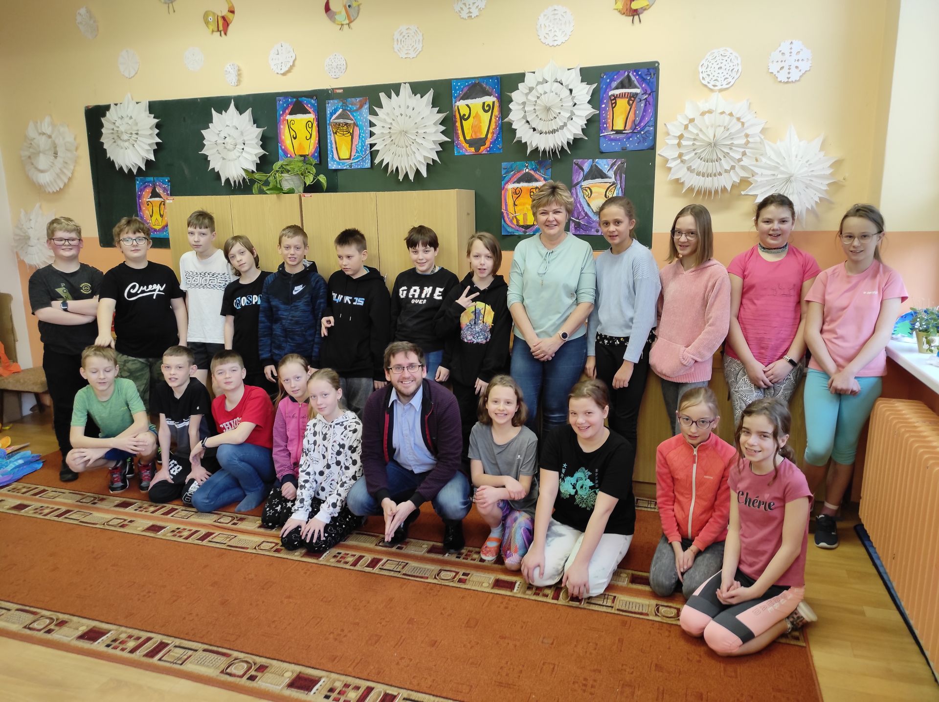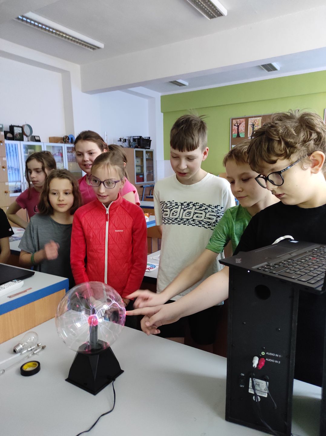 V pátek 25. února byli naši páťáci pozváni na prohlídku Základní školy Pod Skalkou, kde na ně čekal bohatý program. Seznámili se s novým sportem korfbalem, prohlédli si téměř celou školu, zkusili si zajímavé pokusy v učebně fyziky včetně robotiky. Navštívili také svou předchozí paní učitelku, kterou mají moc rádi a dnes učí na zmíněné základní škole. Příjemný závěr programu pak zažili v učebně přírodopisu.