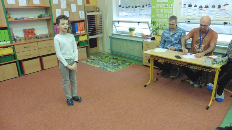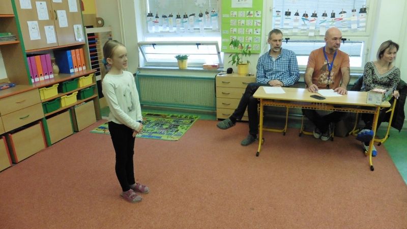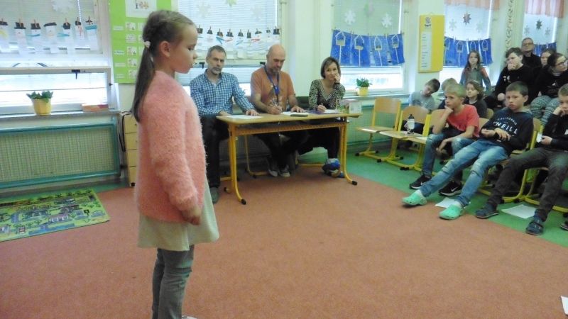 V úterý 5.února proběhlo školní kolo recitační soutěže. Děti soutěžily ve třech kategoriích: 0.kategorie ( 1.třída ), 1.kategorie ( 2.a 3.třída ) a 2.kategorie ( 4.a 5.třída ). A kdo se umístil na pomyslných stupních vítězů? V 0.kategorii zvítězila Magda Šústková, na 2.místě skončila Veronika Špetíková a 3. byl Adam Kuchyňa. V 1.kategorii zvítězila Lenka Šústková, 2.skončila Elen Boráková a 3. byl Zbyněk Pomkla. A ve 2.kategorii se na 1.místě umístila Pavla Šústková, na 2.místě Nikolaos Kokinopulos a 3.skončila Anna Bathke. Děti, které se umístily na prvních dvou místech, postupují do okrskového kola, které proběhne 27.2.2020 v ZŠ Videčská. Všem vítězům blahopřejeme!