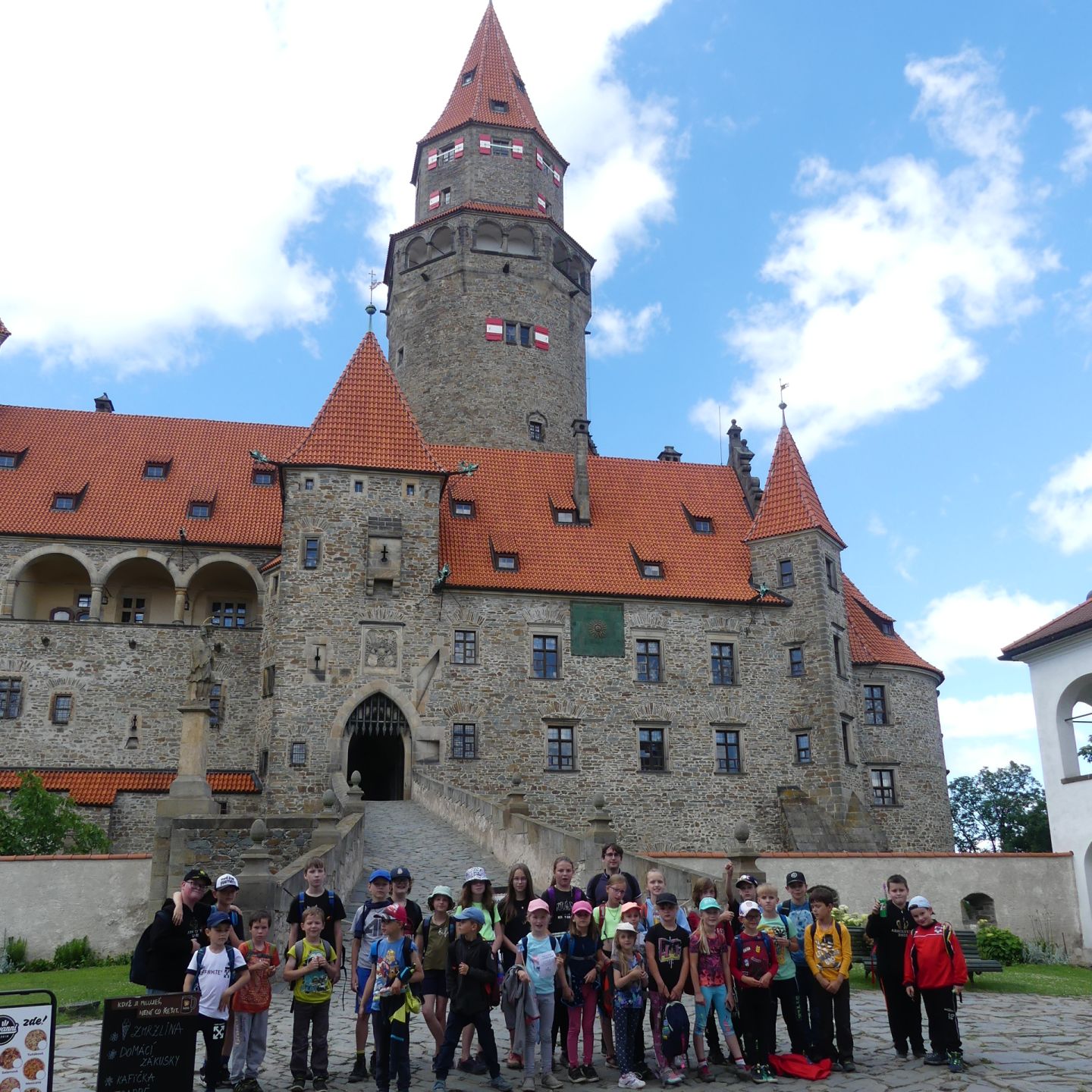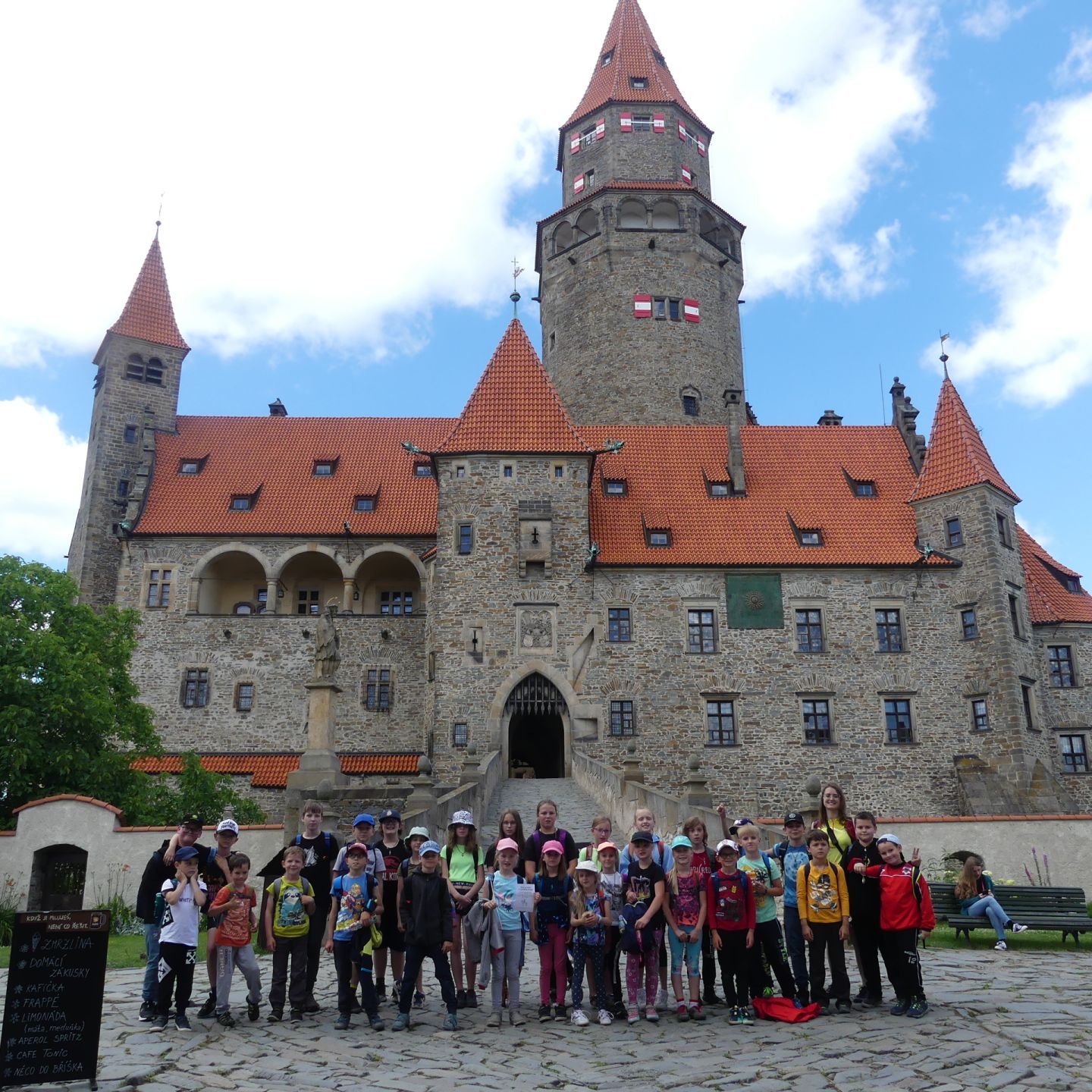 V pátek 17. června 2022 podnikli společně naší prvňáčci a páťáci výlet do Mladečských jeskyní a na hrad Bouzov. Prohlédli si miliony let starý jeskyní komplex, kde si v místě s výbornou akustikou poslechli hudební ukázku paní učitelky Evy hrající na flétnu. V podhradí hradu Bouzova si žáci zastříleli z katapultu, palných zbraní, kuše a luku a prohlédli si zevnitř trójského koně. Na nádvoří samotného hradu se pak osvěžili zmrzlinou. Výlet se nám krásně vydařil a nabyli jsme celou řadu nových zkušeností a vědomostí.