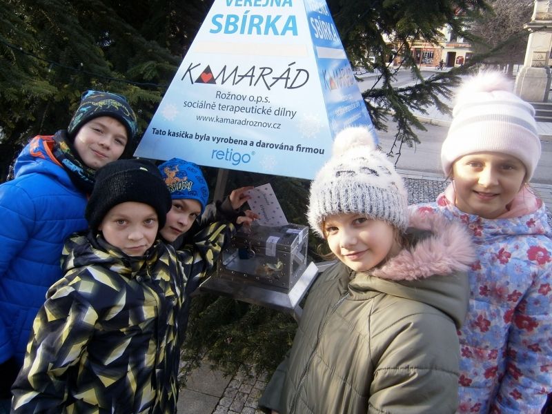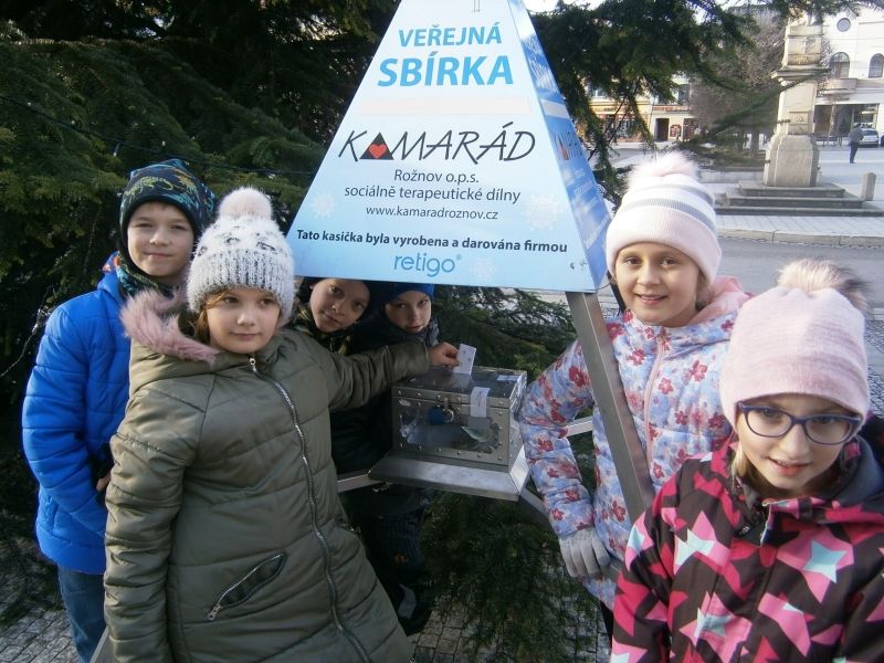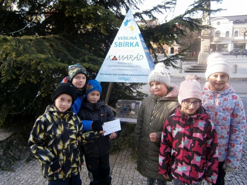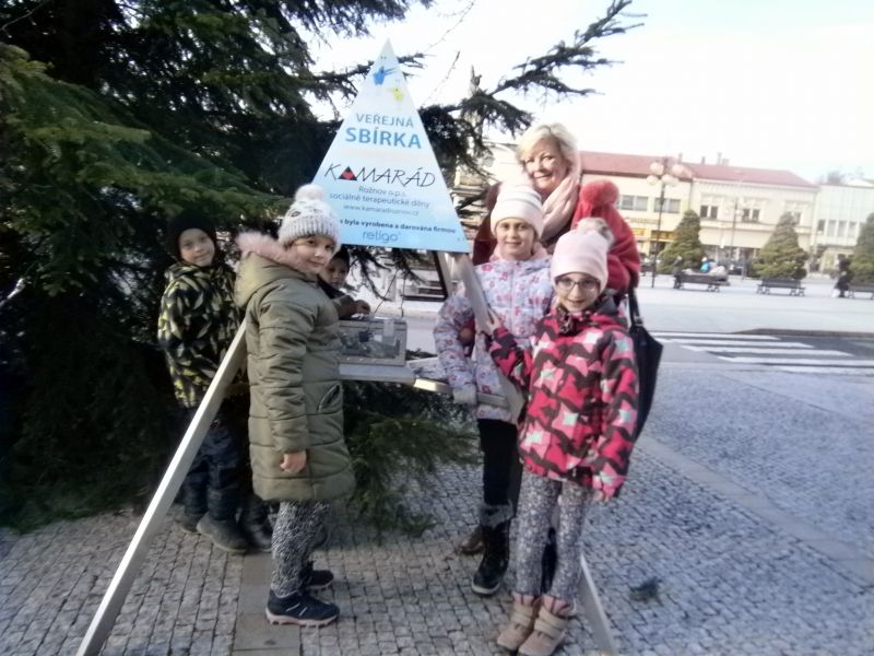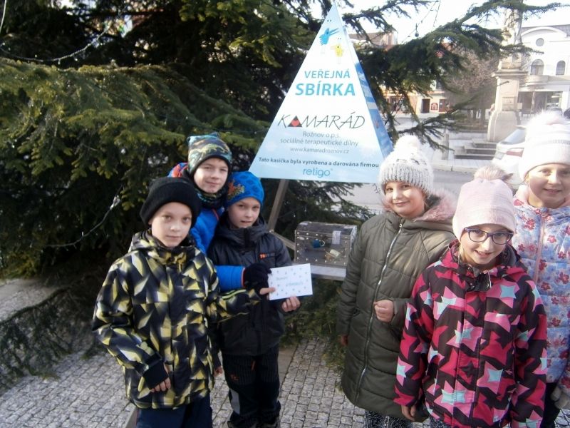 Rozhodli jsme se, že opět, tak jako vloni, část výtěžku z Adventního jarmarku věnujeme potřebným lidem. Několik dětí ze školní družiny s paní ředitelkou vhodili do kasičky pro Domov Kamarád u vánočního stromu na náměstí obálku s vánočním přáním a částkou 1 000,- Kč. Milí Kamarádi, přejeme vám jménem celé naší školy krásné Vánoce a šťastný nový rok!