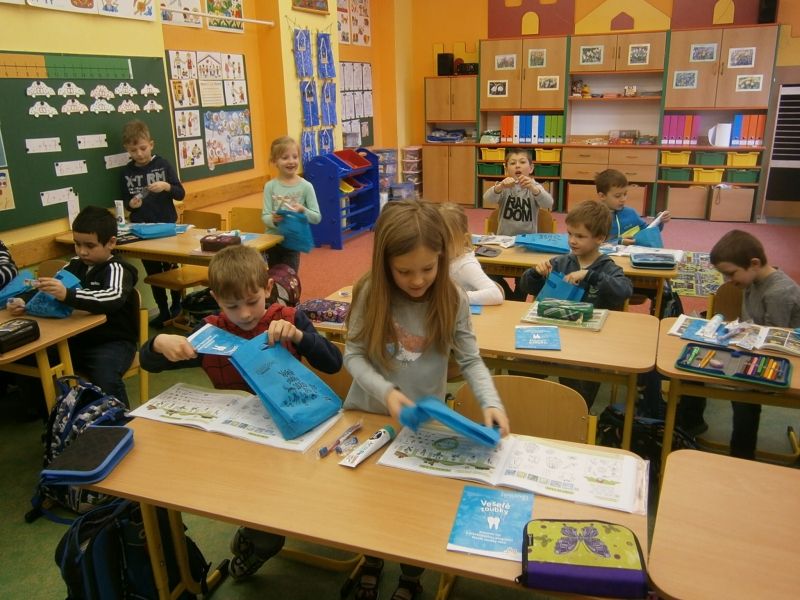 Naše škola se pravidelně již mnoho let zapojuje do DM preventivního programu "Veselé zoubky", který je zaměřený na péči o chrup a zdravou výživu a který každoročně pořádá společnost DM drogerie markt s.r.o. Také letos jsme se s prvňáčky v rámci hodiny prvouky do projektu zapojili. Povídali jsme si o ústní hygieně, podívali se na pohádku Jak se dostat Hurvínkovi na zoubek a za domácí úkol si děti vyplní zábavné pracovní listy. Za odměnu si všichni domů odnesli preventivní taštičky s potřebami pro správnou ústní hygienu. Děti, které ve škole chyběly, dostanou materiály a taštičky dodatečně.