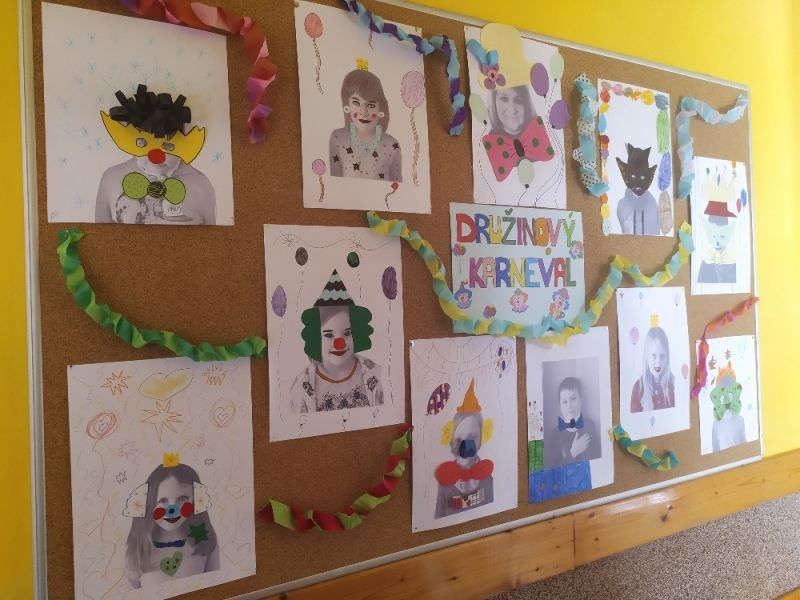 V týdnu od 22.-25. února probíhal ve školní družině u druháků netradiční týden. Jelikož v letošním školním roce kvůli koronavirovým opatřením se nemohl konat klasický maškarní bál, přece jen jsme se nechtěli o maškarní veselí připravit. Paní vychovatelka připravila pro druháky veselý maškarní týden. Nejprve jsme si povídali o tradicích a zvycích o Masopustu, koukali jsme na pohádku Chaloupky na vršku (Jak to bylo o Masopustu). Další den jsme vyráběli indiánské čelenky, škrabošky na obličej a princeznovské koruny. Ve středu jsme se fotili a z našich portrétů jsme si vytvořili vtipné masky. Ve čtvrtek se ve družince konal balonkový den. Celé odpoledne jsme soutěžili, tancovali i sportovali. Každé z dětí si zasloužilo odměnu a určitě brzy si zase podobný veselý týden zopakujeme. S úsměvem jde přece všechno líp :-)