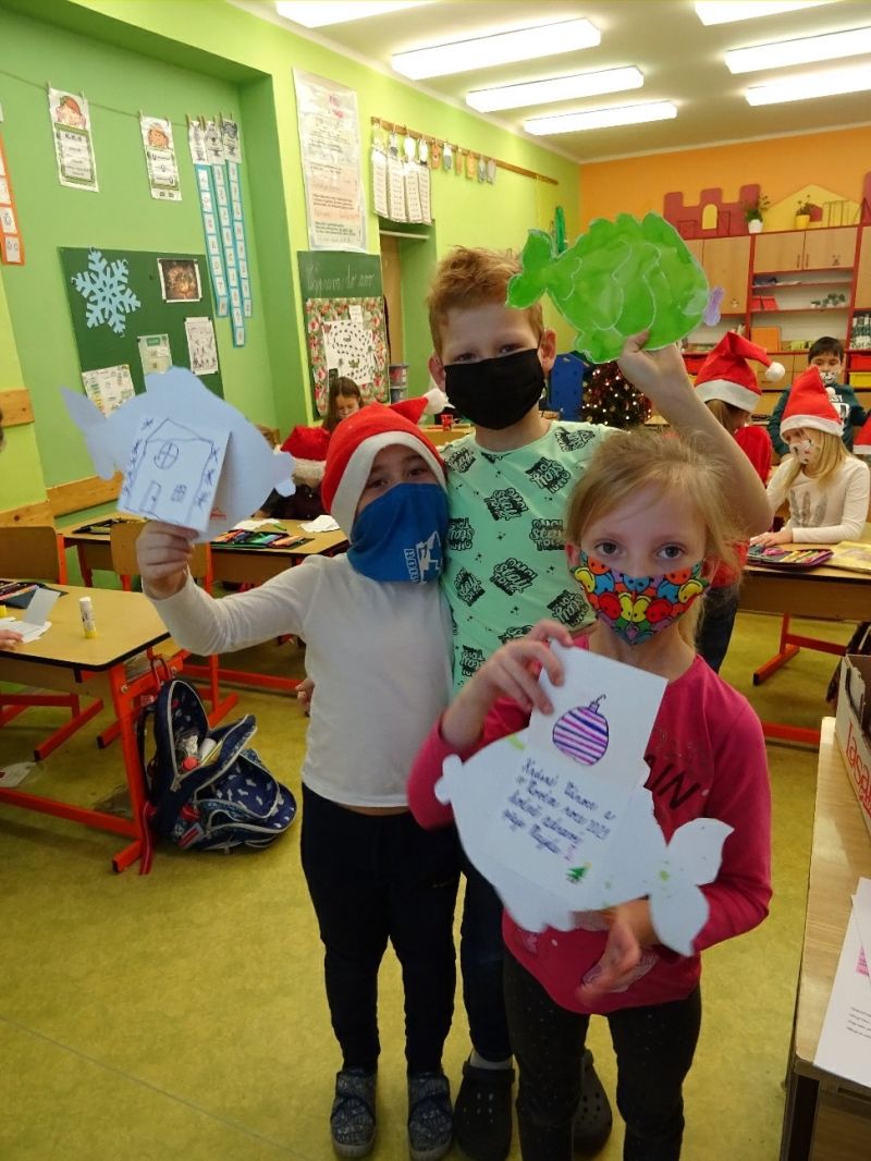 Žáci druhé třídy trávili předvánoční čas nejen pilným učením, ale také tvořením. V rámci výtvarné výchovy a pracovních činností jsme pro místní Domov pro seniory vytvořili vánoční kapříky s přáním krásných Vánoc a hodně zdraví do Nového roku. Zbylo nám času i na společné vánoční focení. Přejeme všem šťastné a veselé Vánoce!