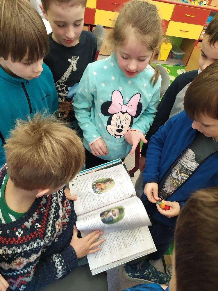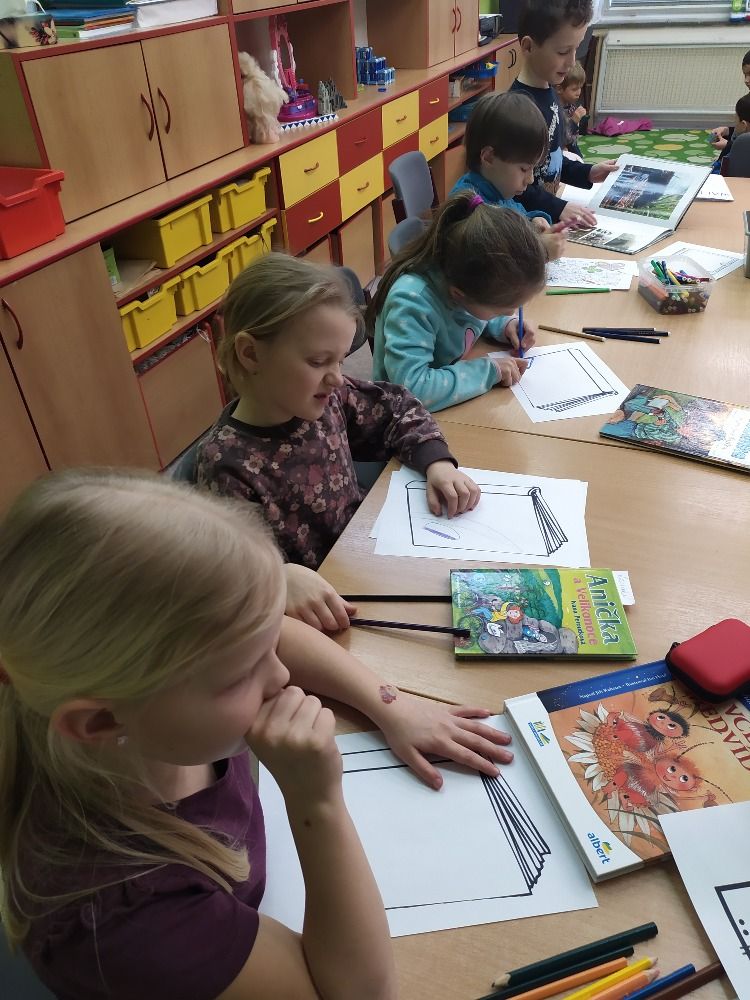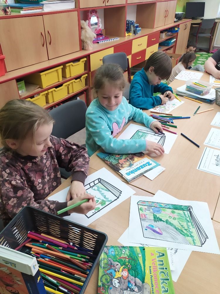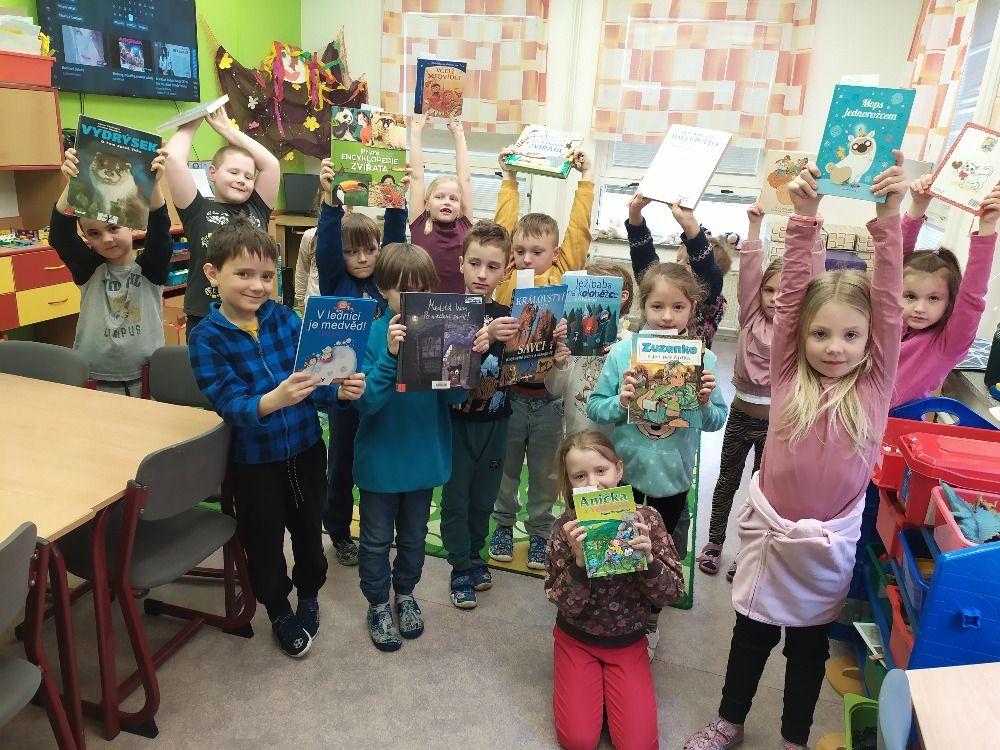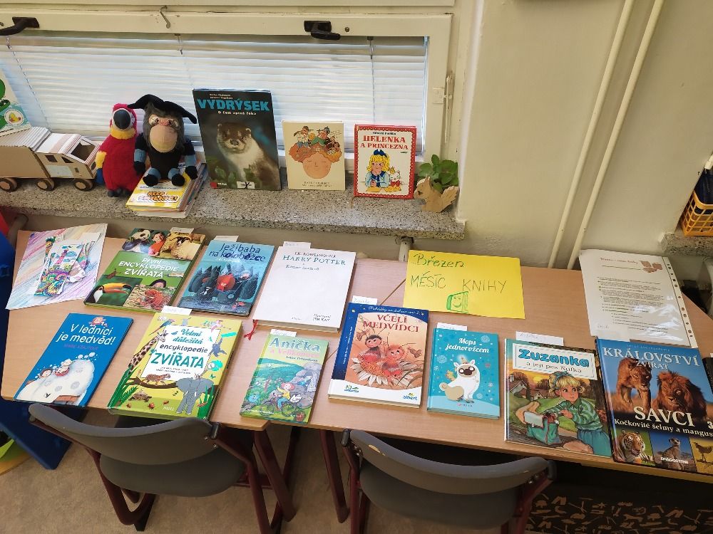 Ve druhém březnovém týdnu se děti z 1. oddělení ŠD věnovaly knihám. Každý si přinesl do družinky tu svoji nejoblíbenější a nejmilejší, kterou má v domácí knihovničce. Paní vychovatelka seznámila děti s tím, jaký rozdíl je mezi knihovnou a knihkupectvím, kdo je to spisovatel a ilustrátor i jaké máme žánry knih. Připomněli jsme si, jak se správně ke knížkám chovat a samozřejmě jsme si četli úryvky z přinesených knížek. Další den jsme zkoušeli různé jazykolamy a básnické rýmy. Poslední den jsme si ve výtvarné dílničce vyrobili přebal na svou vlastní knihu a také záložky. Byl to fajn týden strávený nad knížkami.