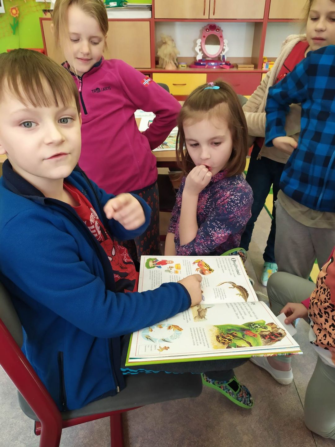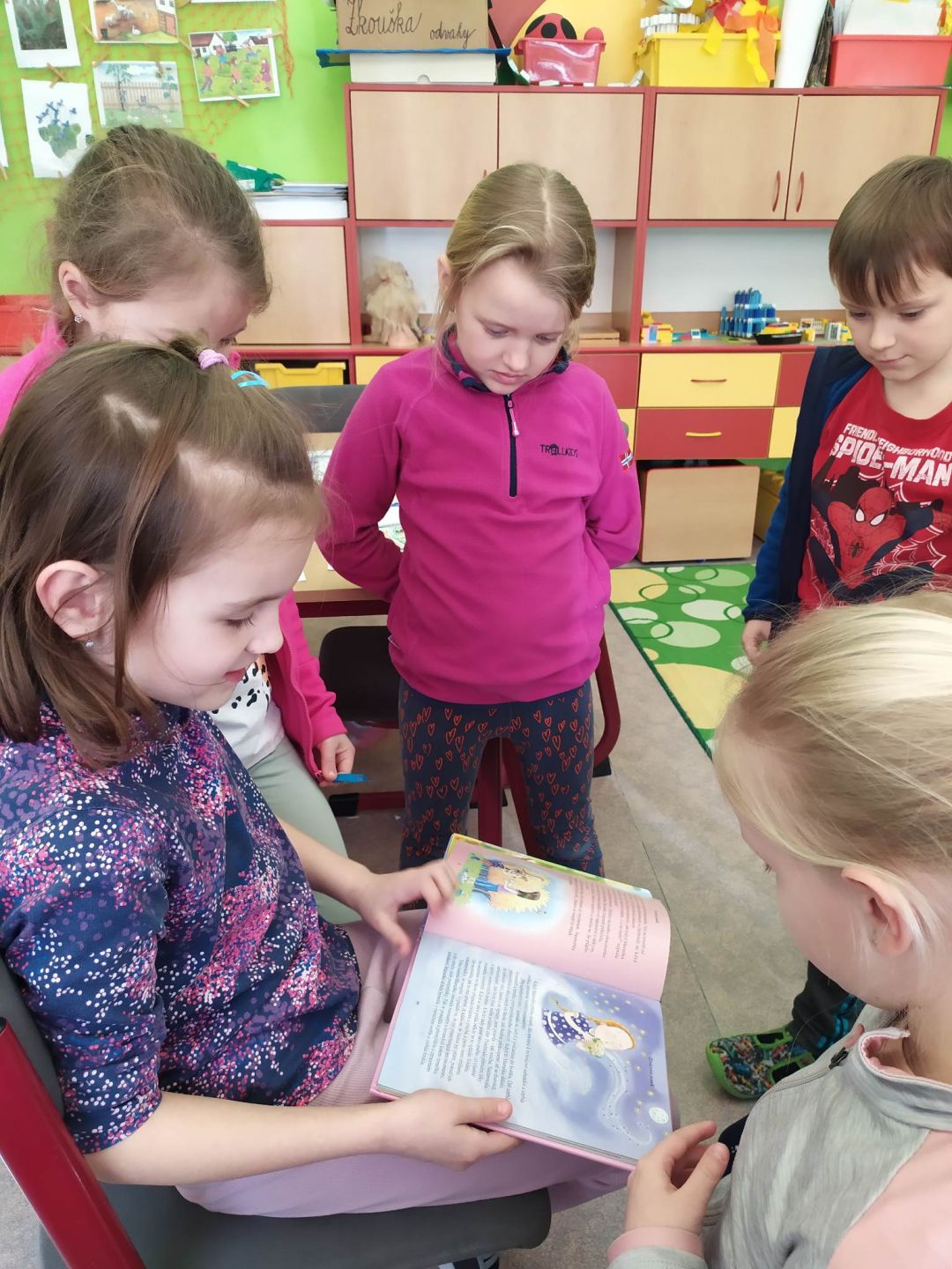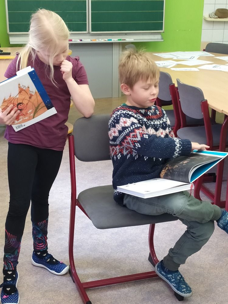 Ve druhém březnovém týdnu se děti z 1. oddělení ŠD věnovaly knihám. Každý si přinesl do družinky tu svoji nejoblíbenější a nejmilejší, kterou má v domácí knihovničce. Paní vychovatelka seznámila děti s tím, jaký rozdíl je mezi knihovnou a knihkupectvím, kdo je to spisovatel a ilustrátor i jaké máme žánry knih. Připomněli jsme si, jak se správně ke knížkám chovat a samozřejmě jsme si četli úryvky z přinesených knížek. Další den jsme zkoušeli různé jazykolamy a básnické rýmy. Poslední den jsme si ve výtvarné dílničce vyrobili přebal na svou vlastní knihu a také záložky. Byl to fajn týden strávený nad knížkami.