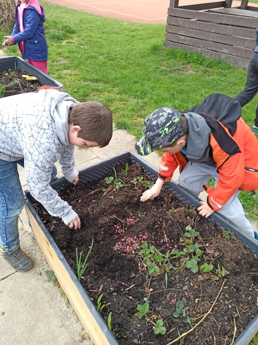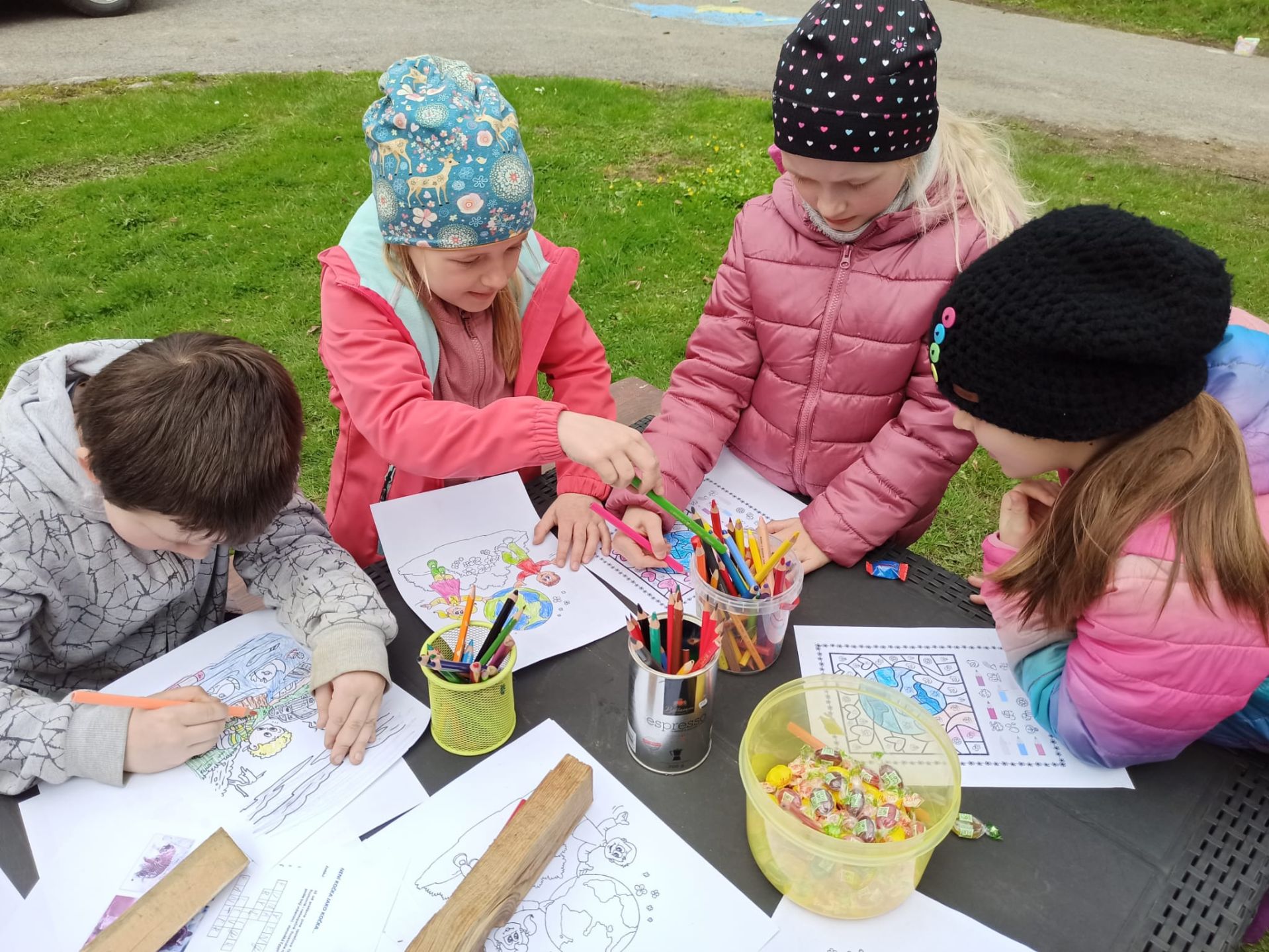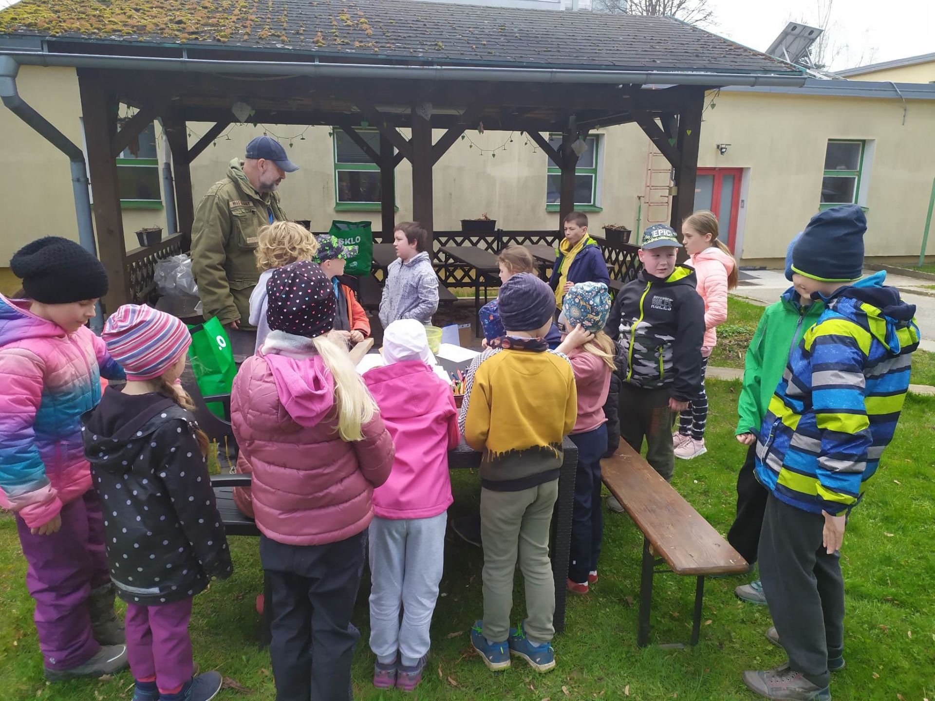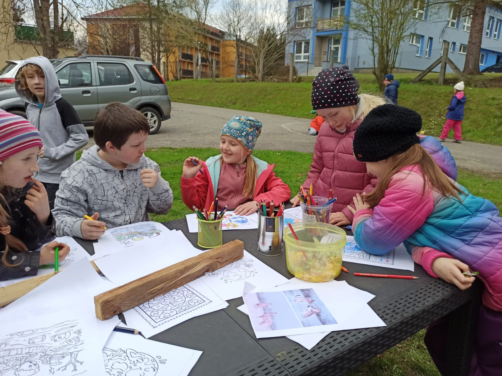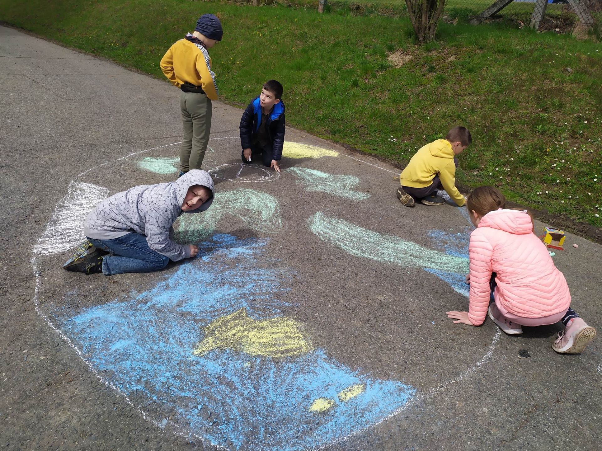Děti ze všech tří oddělení družiny oslavily Den Země 20. 4.na zahradě ZŠ Záhumení. Soutěžily v třídění plastů a papírů, závodily v běhu, vyplňovaly kvízy na téma ekologie, malovaly obrázky na téma "Jak zachránit planetu Zemi" na výkresy a také křídami na cestě. Vysázely také cibuli na vyvýšeném záhoně, aby v září mohlo být opět cibulobraní.