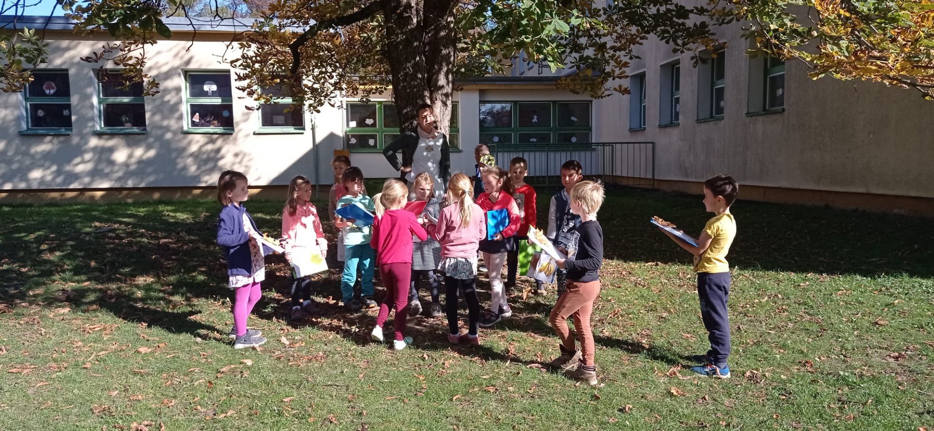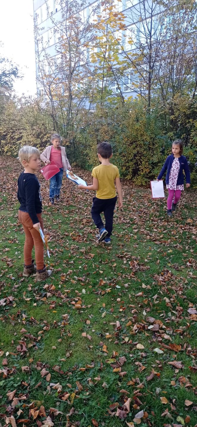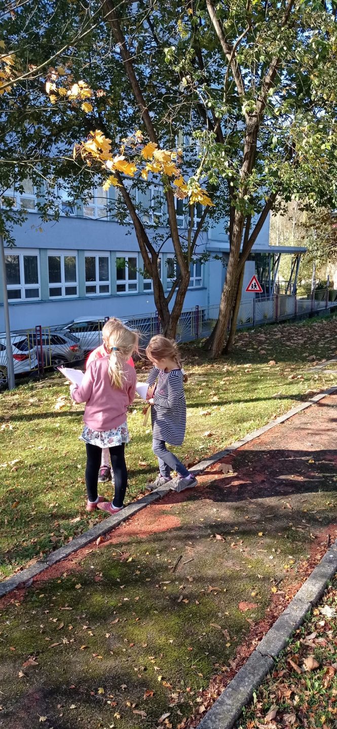 V úterý 18. října se prvňáčci vydali v hodině prvouky na školní zahradu. Nejprve se seznámili s jednotlivými částmi stromy (kořeny, kmen, větve, listy, plody). Poté dostali za úkol najít listy ke 4 stromům, které jsme si pojmenovali pomocí listů a plodů na obrázcích. Nalezené listy pak nalepili na svůj pracovní list.