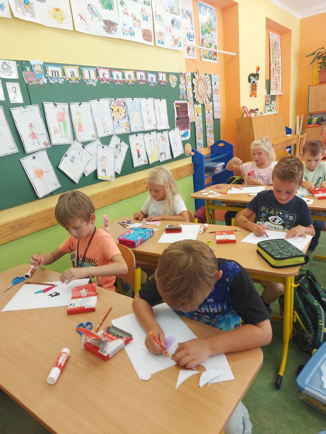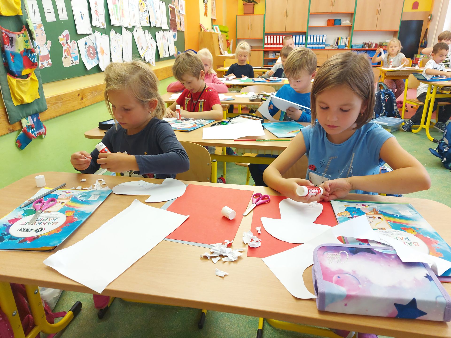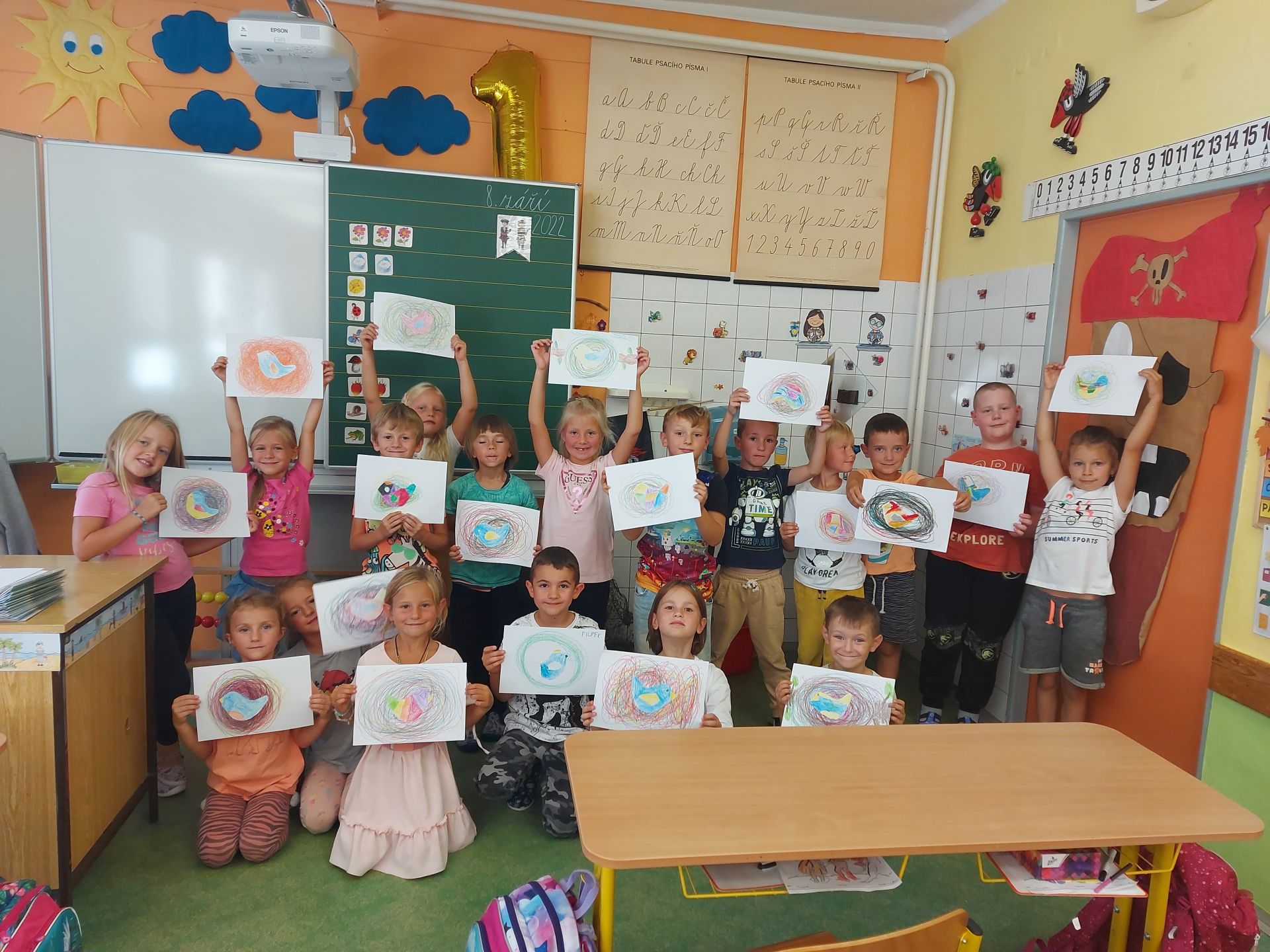 Prvňáčci nelení a již při svých prvních hodinách výtvarné výchovy a pracovních činnostech jsou velmi šikovní a vytvořili krásná ptačí hnízdečka i s ptáčky. Dále také houby, protože při vyprávění si, co jsme dělali o víkendu byla každá druhá věta "Byli jsme v lese na houbách..."