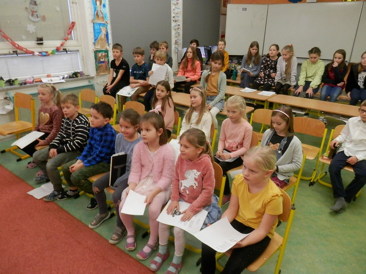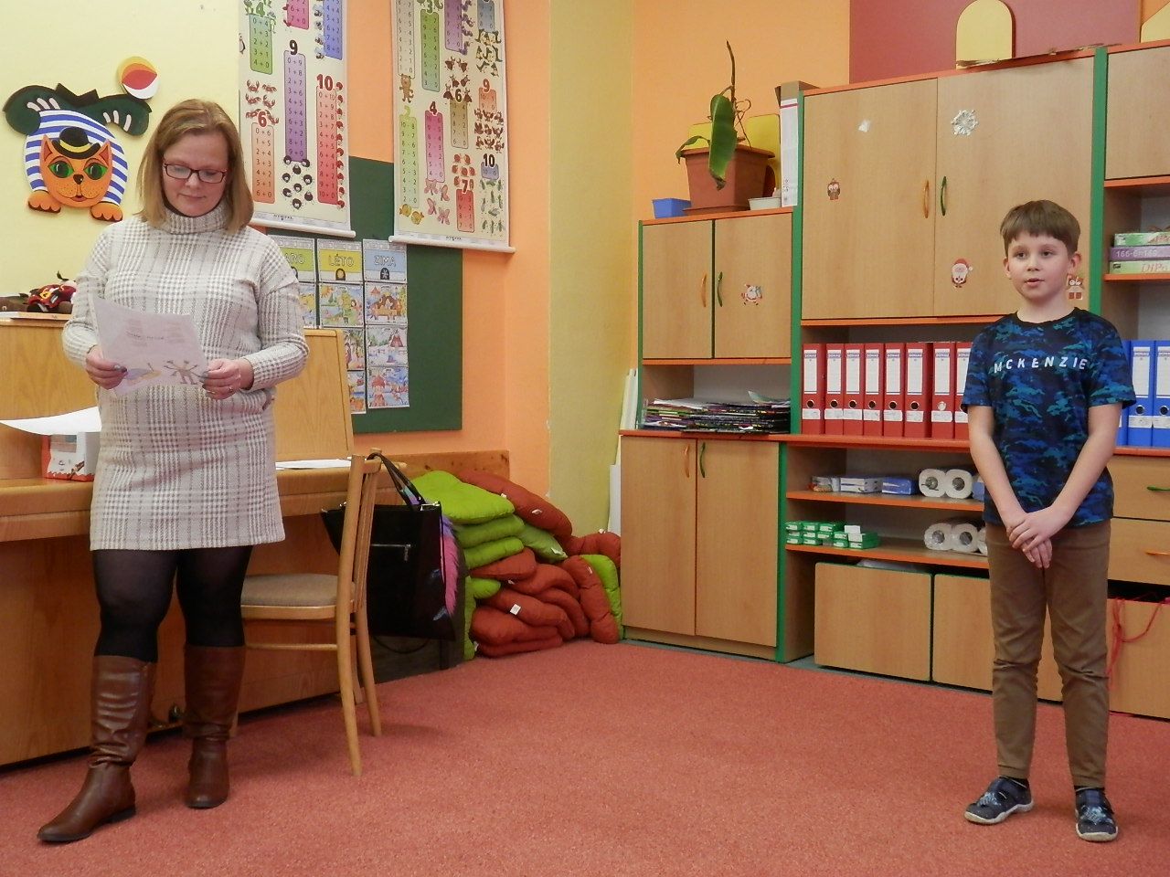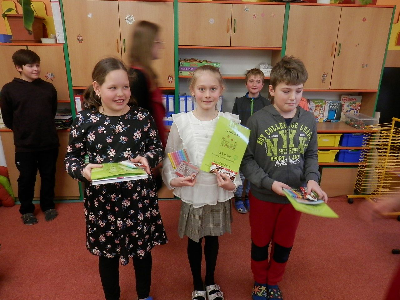 V pátek 27. ledna proběhlo školní kolo recitační soutěže. Děti soutěžily ve třech kategoriích: 0. kategorie (1.třída), 1. kategorie (2. a 3. třída) a 2. kategorie (4. a 5. třída). A kdo se umístil na pomyslných stupních vítězů? V 0. kategorii zvítězila Štěpánka Mildorfová, na 2. místě skončila Eva Slováková a 3. příčku obsadil Martin Kubáň. V 1. kategorii zvítězil David Kubáň, 2. skončila Nikol Mildorfová a na 3. místě se umístila Eliška Pavlicová. A ve 2. kategorii 1. místo obsadila Alžběta Kulišťáková, na 2. místě byla Anna Mildorfová a 3. skončil Adam Kuchyňa. Děti, které se umístily na prvních dvou místech, postupují do okrskového kola, které proběhne ve čtvrtek 2. 3. 2023 v ZŠ Videčská. Všem vítězům blahopřejeme!