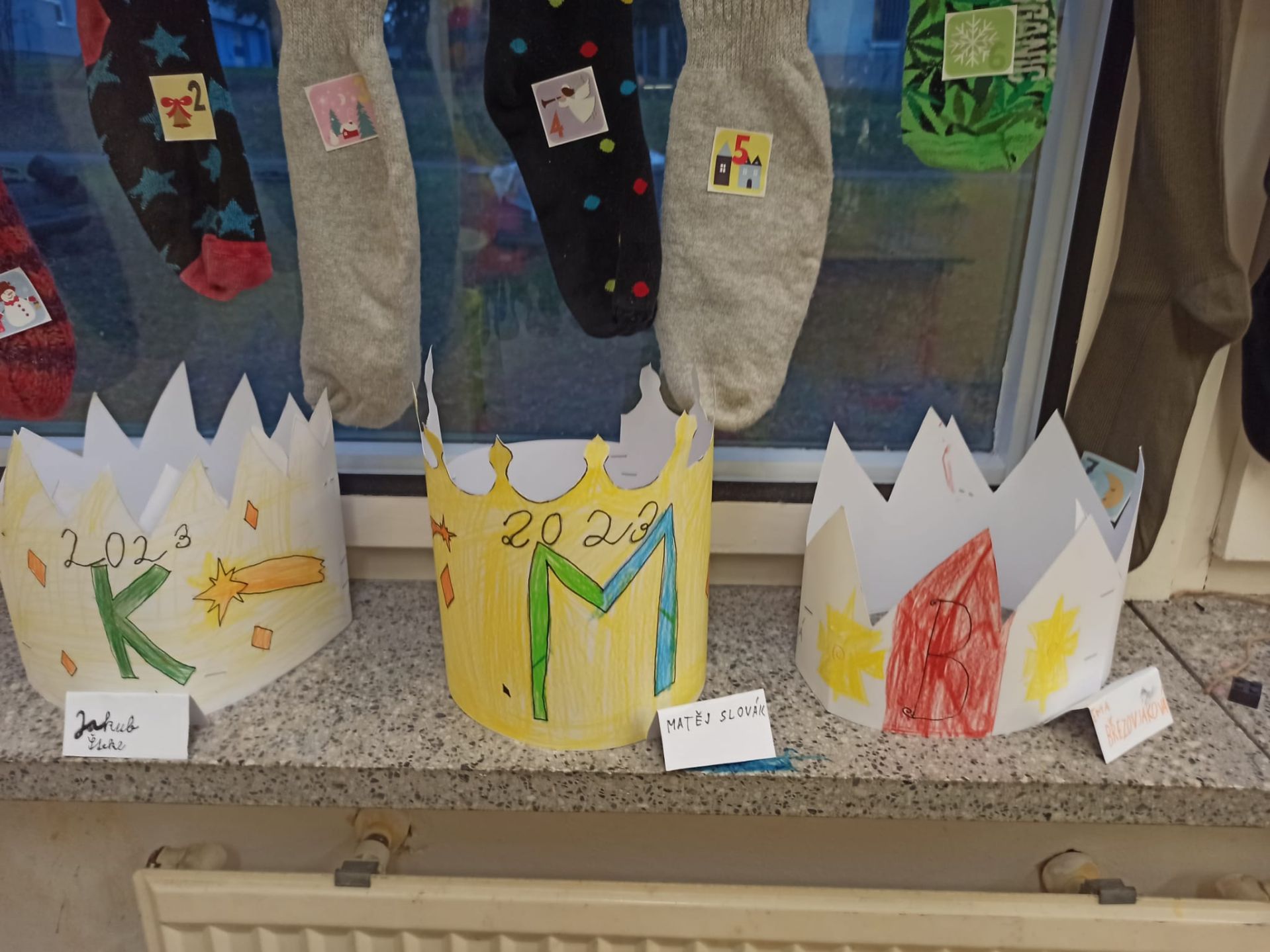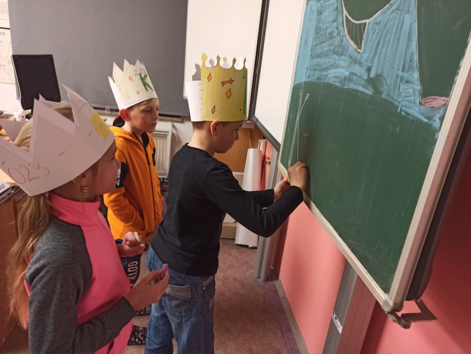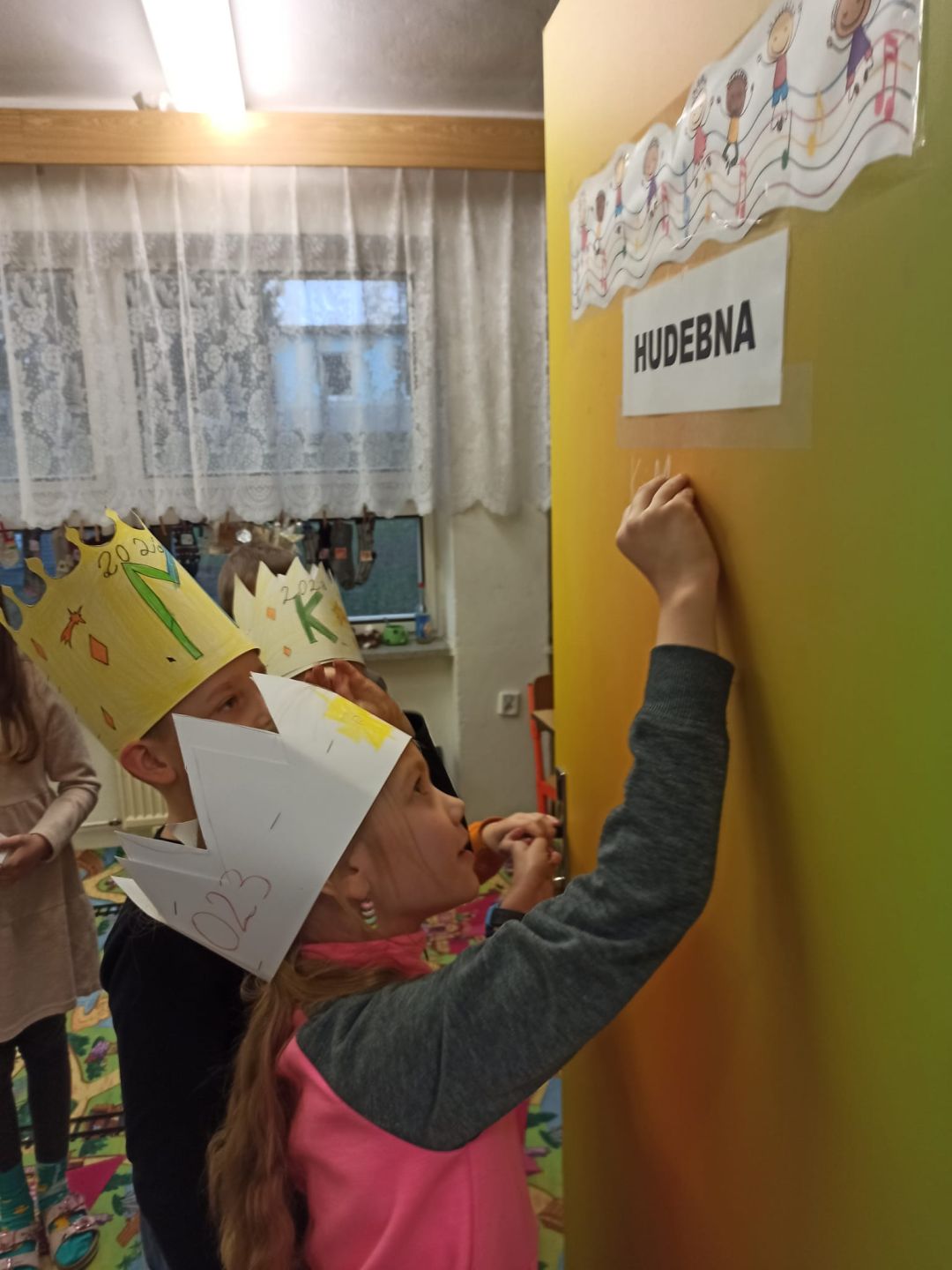 Tři Králové dnes navštívili 2. oddělení družiny. Zpívali a malovali křídou na dveře a tabule ve třídách.