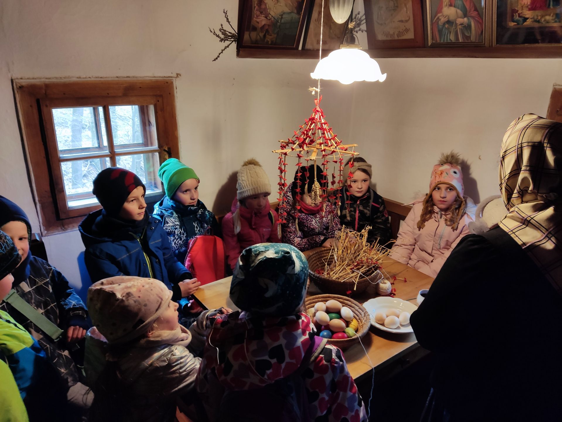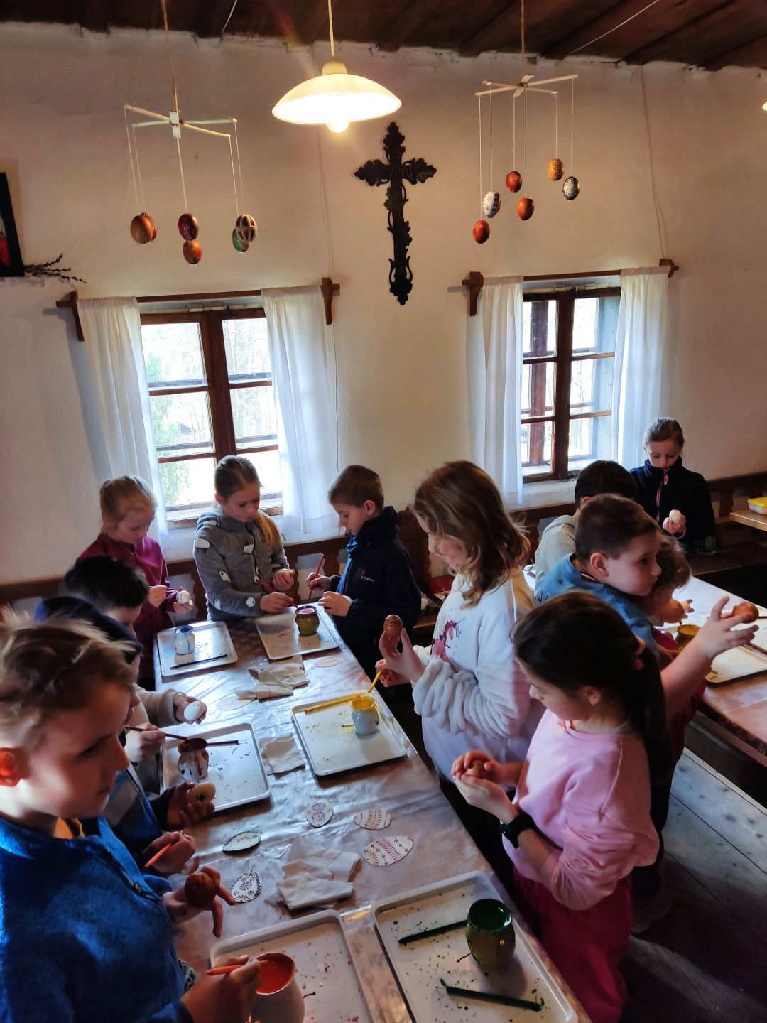 V úterý 4. dubna se naši druháčci s paní učitelkou vydali do Valašského muzea v přírodě do Valašské dědiny a připomněli si velikonoční tradice a také se přiučili novým věcem. Žáci se naučili zajímavou techniku zdobení vajíček a také si upletli nádhernou pomlázku. Na dědině jsme také viděli tradiční vynášení Mařeny za zpěvu valašských céreček a také místní ogary s rapači. Přiložené fotografie jsou dokladem toho, jak moc jsme si to na velikonoční dědině užili.
