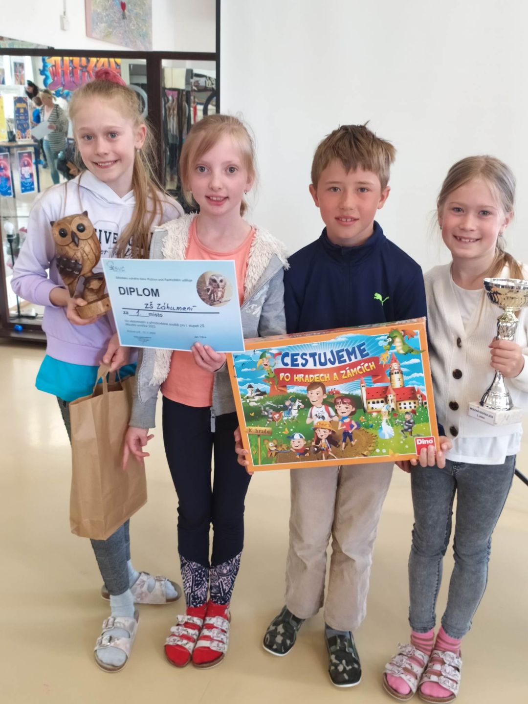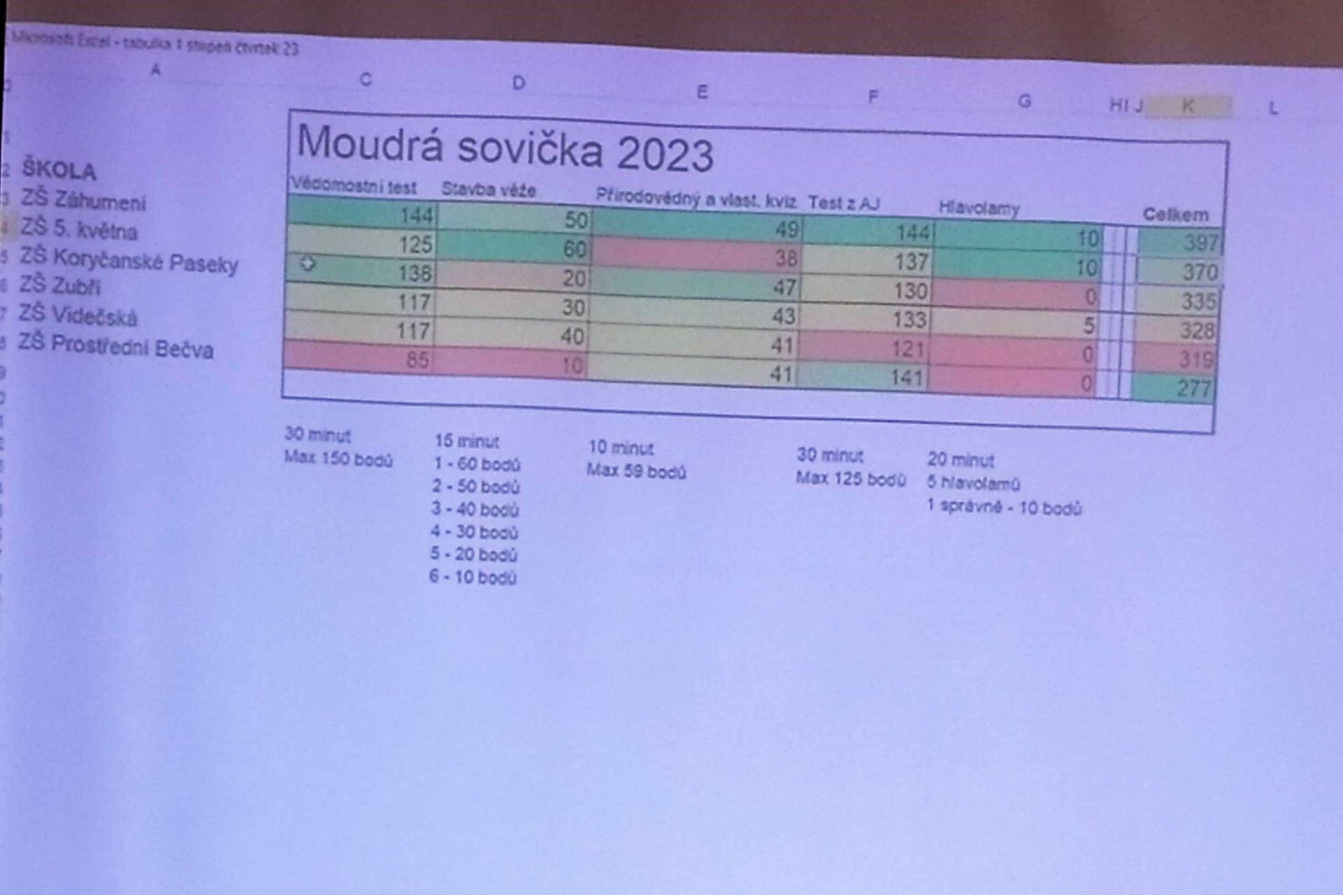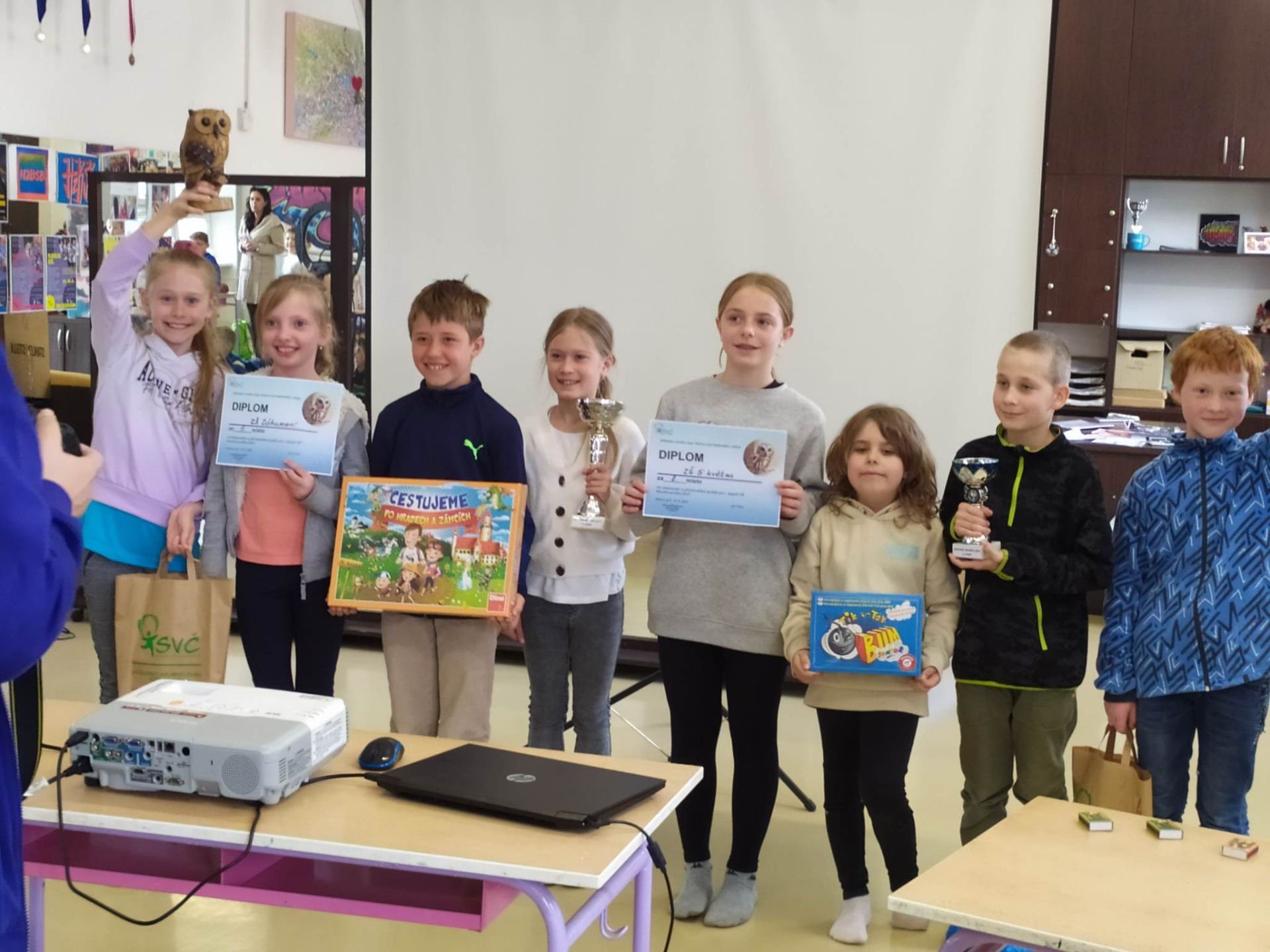 V pátek 12. května se vybraní žáci (Nikolka Mildorfová, Anička Mildorfová, David Kubáň a Magdička Šústková) zúčastnili soutěže Moudrá sovička, kterou pořádalo SVČ Rožnov pod Radhoštěm. Akce se zúčastnili i žáci z ostatních rožnovských škol, ze ZŠ Zubří a ZŠ Prostřední Bečva. V soutěži si žáci otestovali znalosti z historie i současnosti ČR, anglického jazyka, vyzkoušeli si test na pozornost, přírodovědný test, pohráli si s hlavolamy apod. Zástupci naší školy ve velké konkurenci zvítězili a získali první místo, stejně jako v loňském roce. Žákům děkujeme za nádhernou reprezentaci školy.