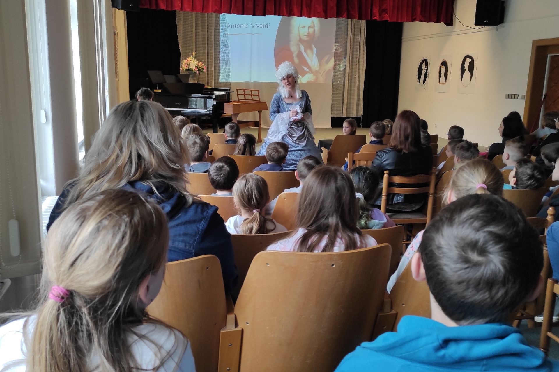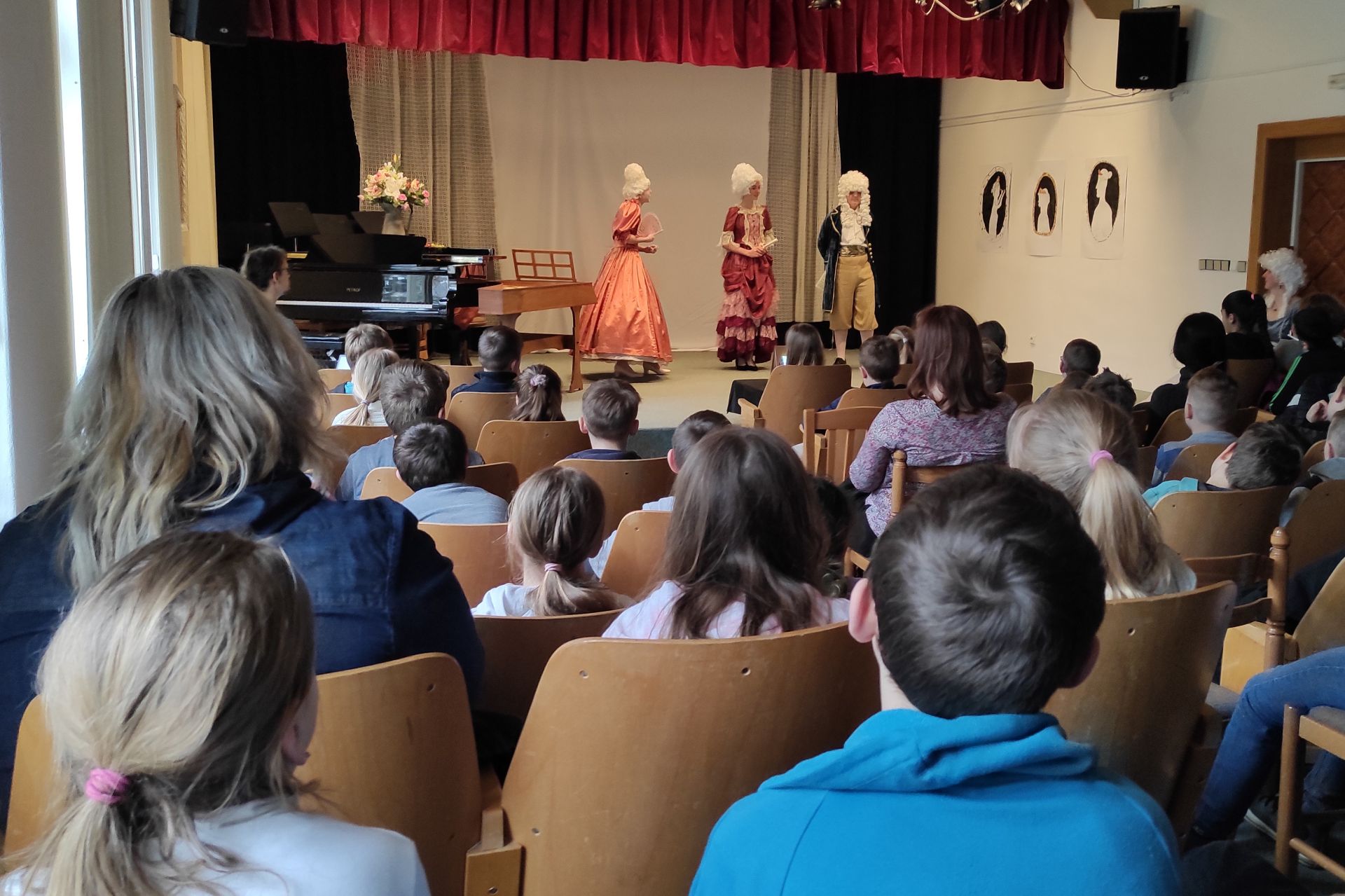 Žáci 3., 4. a 5. ročníku ve středu 19. dubna nabyli kulturního zážitku prostřednictvím koncertu žáků Základní umělecké školy Rožnov pod Radhoštěm zaměřeného na dějiny hudby (baroko). Naši žáci si poslechli krásnou klasickou hudbu a zhlédli baletní i dramatické představení. Děkujeme.