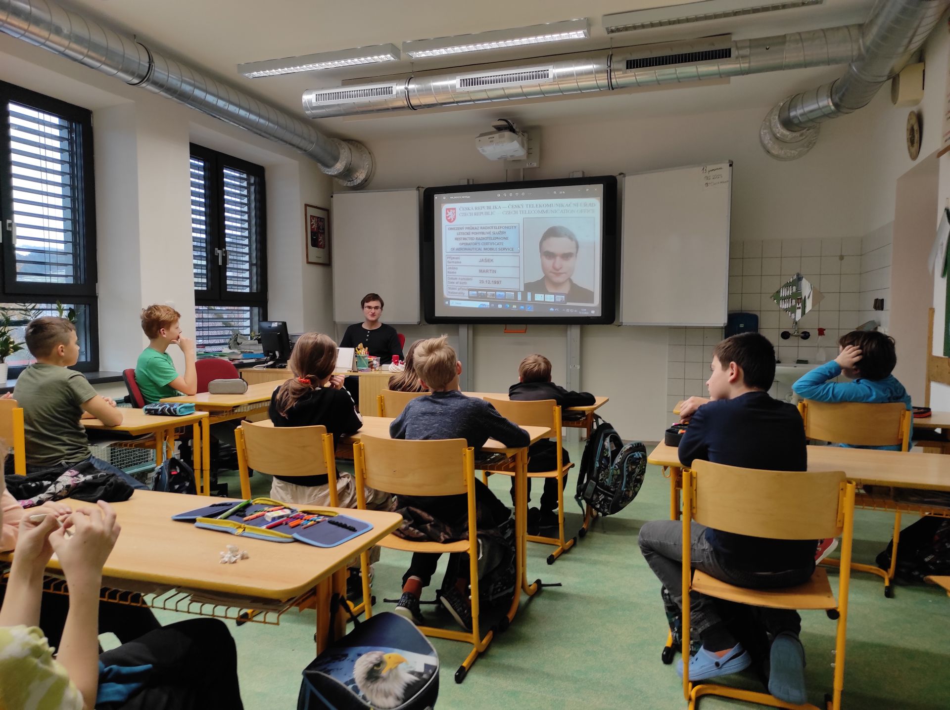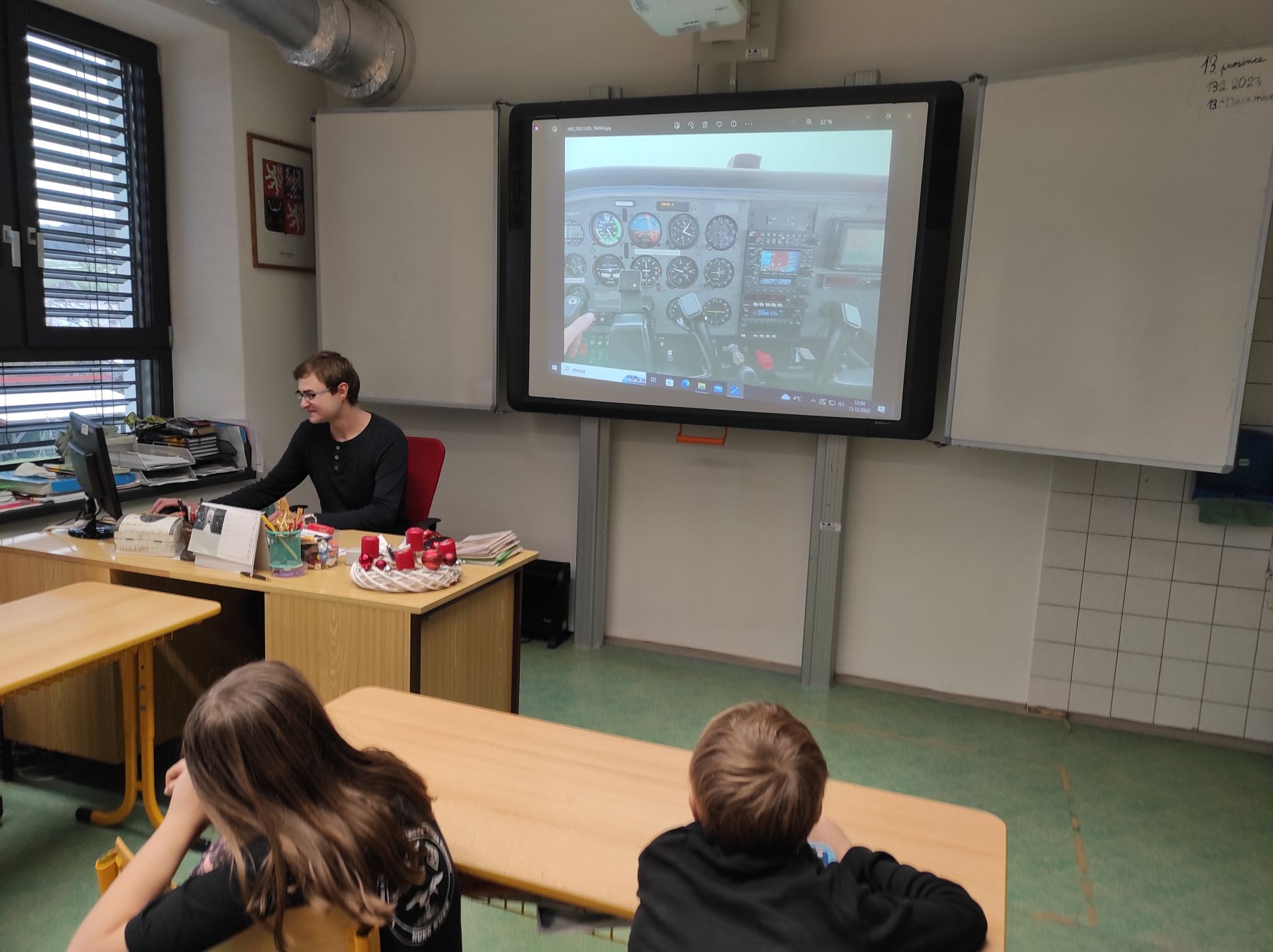 Naše páťáky navštívil Ing. Martin Jašek, specialista technologie provozu letadlové techniky, vysokoškolský učitel a pilot, který dětem prozradil, co musí člověk udělat, aby se stal pilotem.