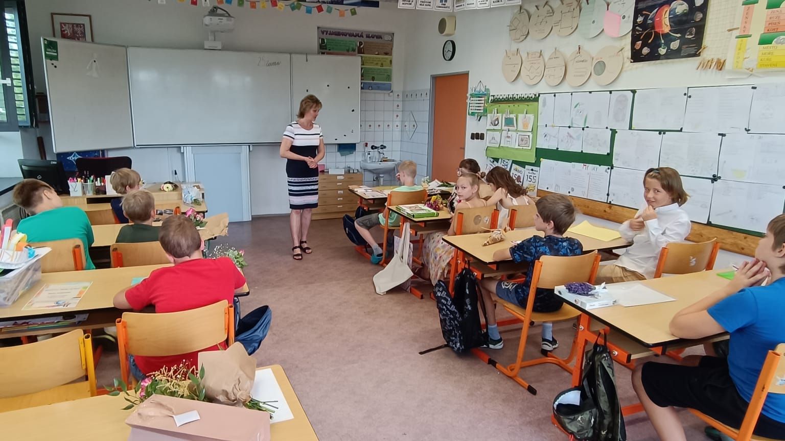 Paní ředitelka předala Davidu Kubáňovi pochvalu ředitelky školy za reprezentaci školy v celostátním kole matematické soutěže Pangea.