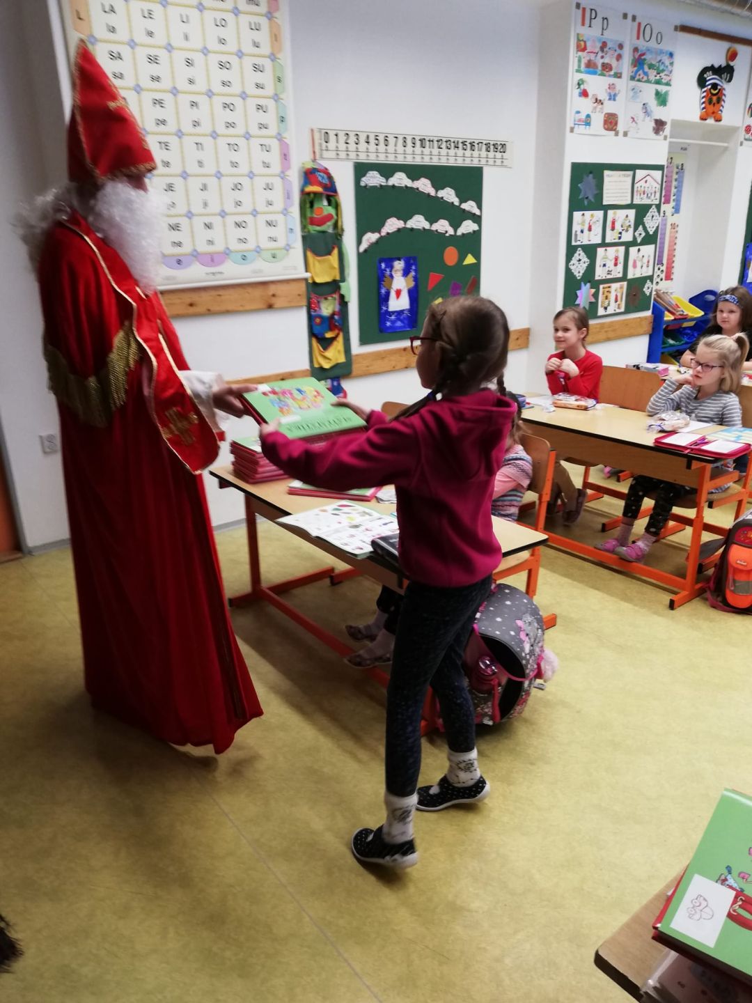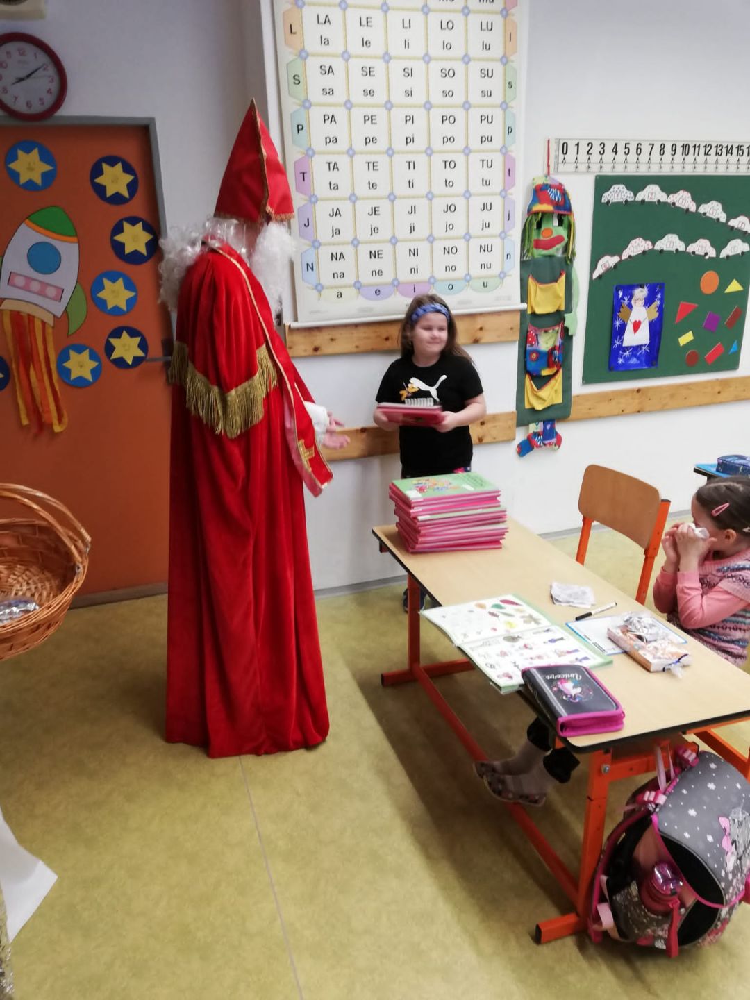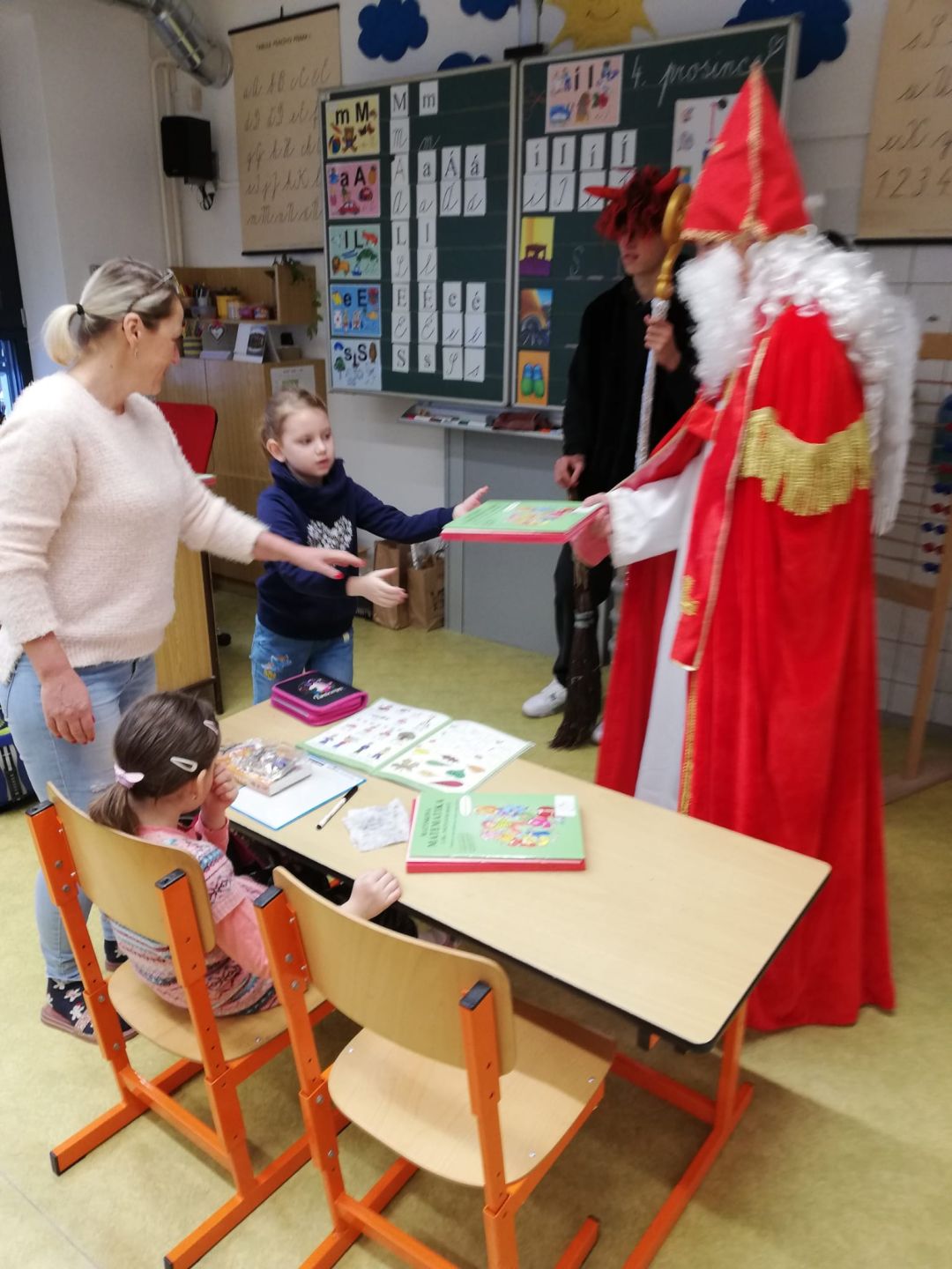 Mikulášská nadílka v 1. třídě se slavnostním rozdáváním Slabikářů