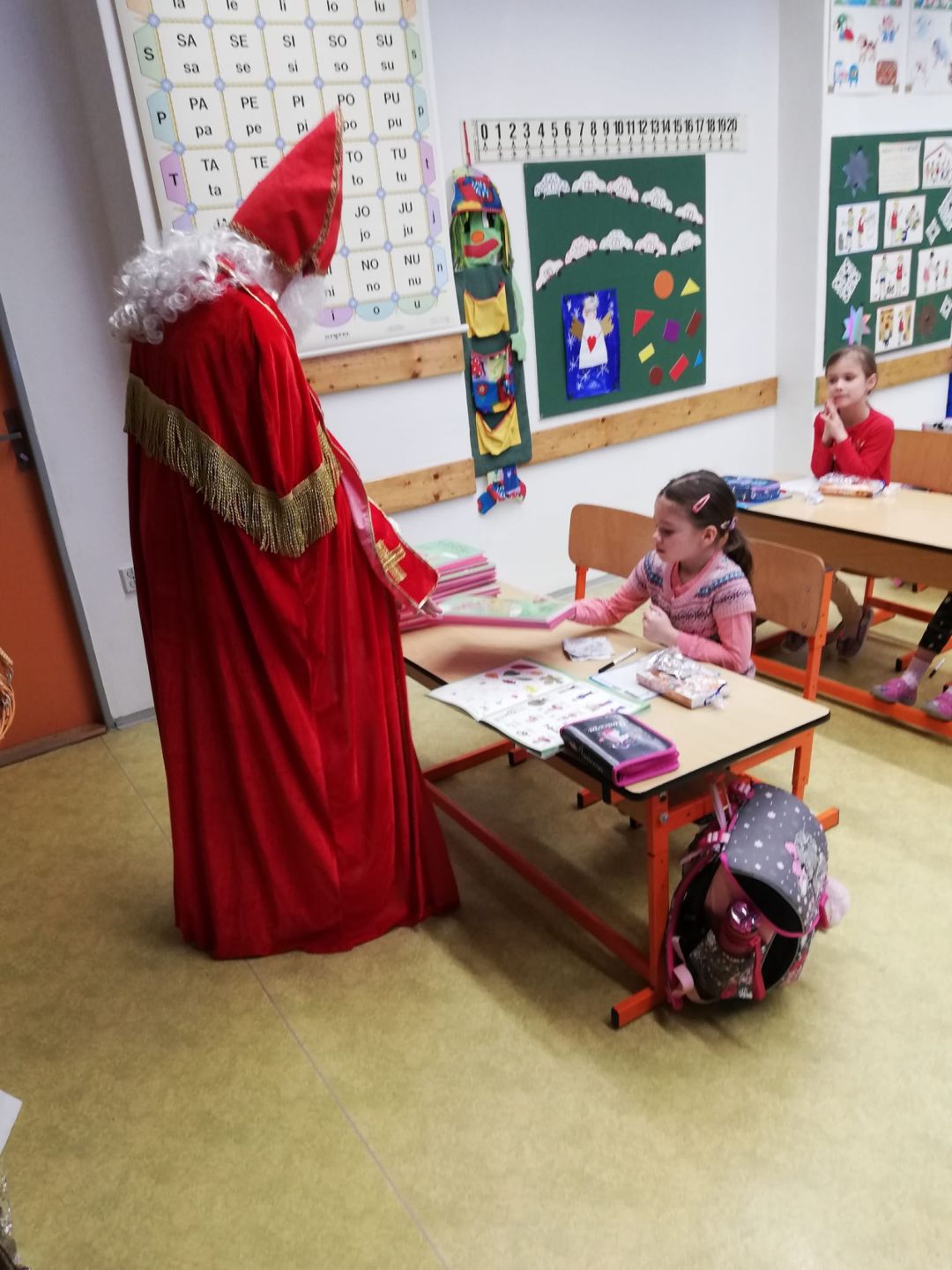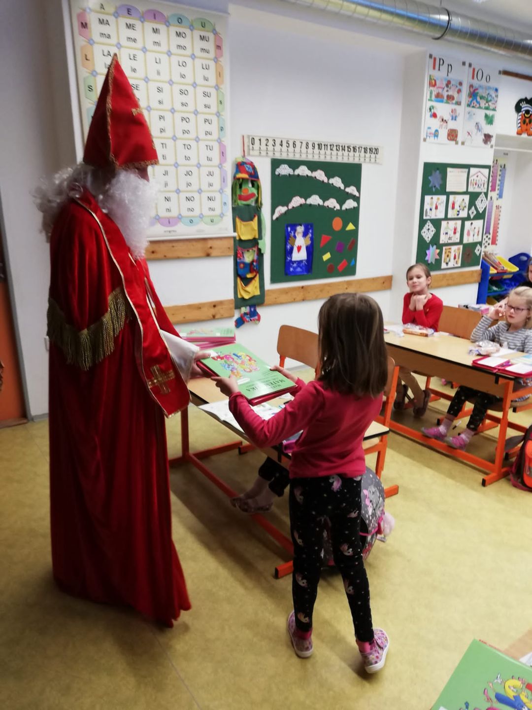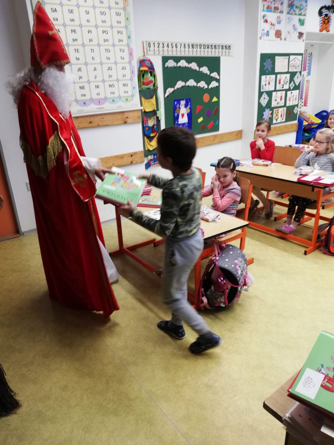 Mikulášská nadílka v 1. třídě se slavnostním rozdáváním Slabikářů