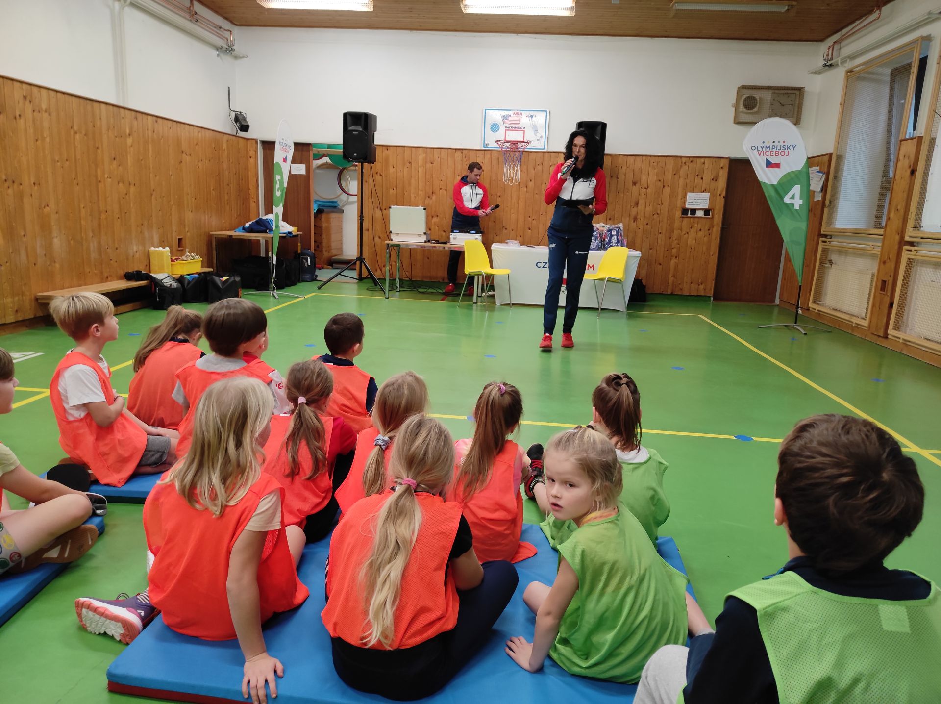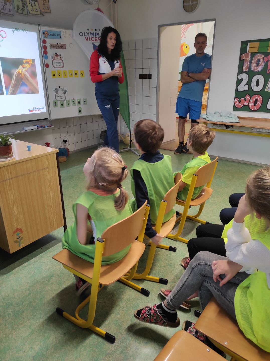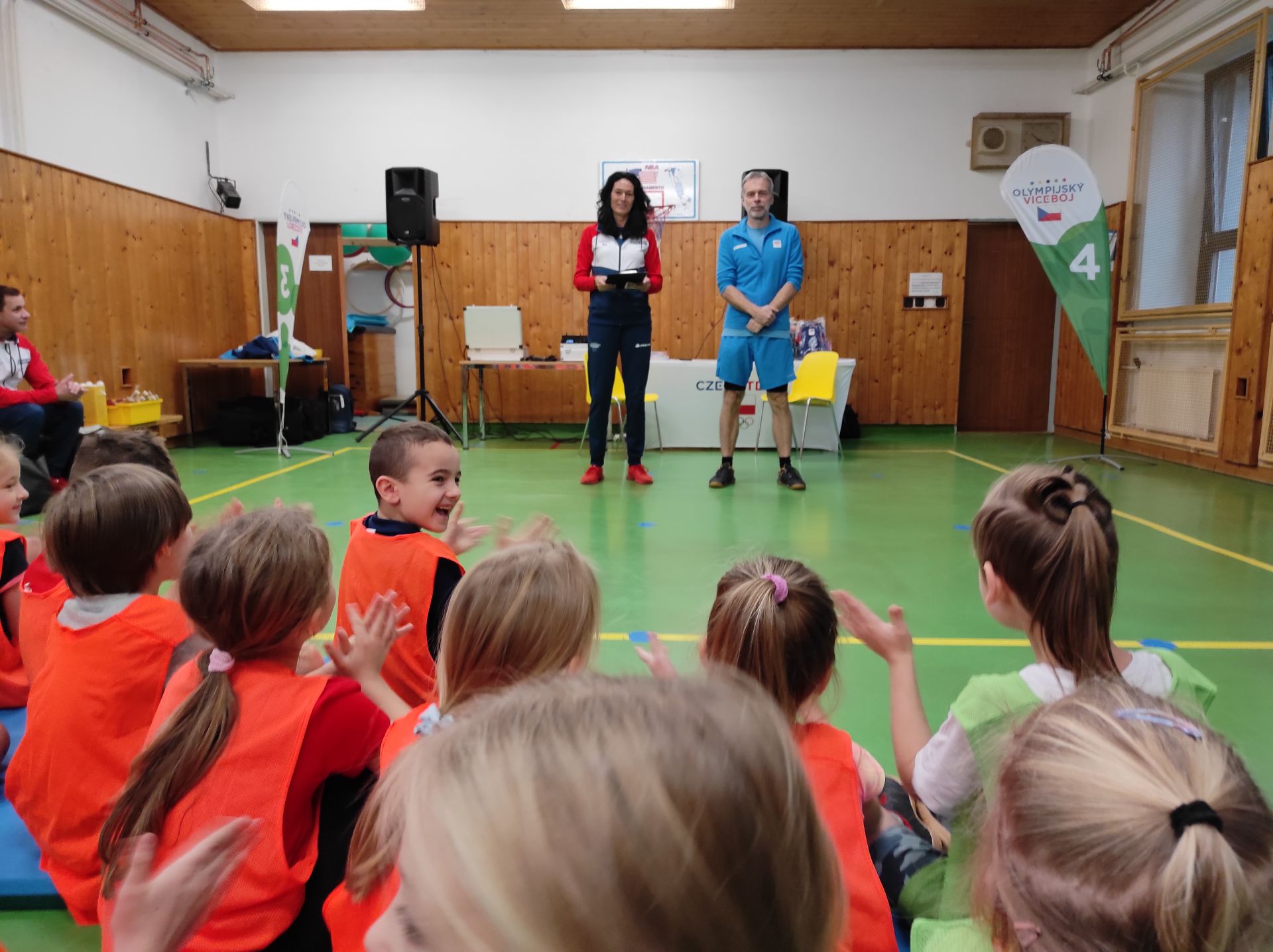 V rámci úvodní besedy sportovci představili sami sebe a také sport, kterému se nejvíce věnovali. Žáci si mohli v tělocvičně vyzkoušet zajímavé tréninkové techniky, zahrát si stolní tenis s Petrem Korbelem a získat mnoho praktických rad a doporučení. Ve třídě s využitím interaktivní tabule se hravou formou a více do hloubky seznámili s olympijskými hodnotami.