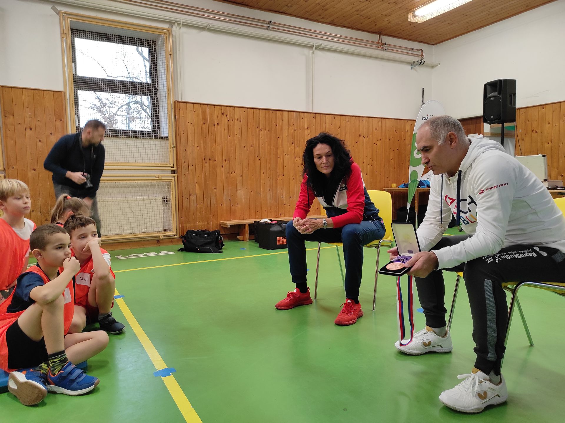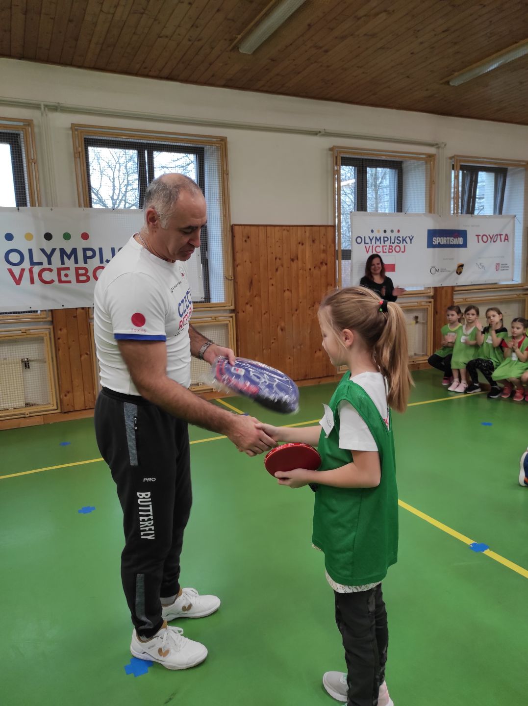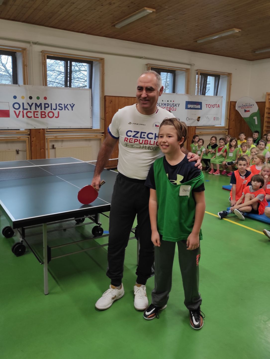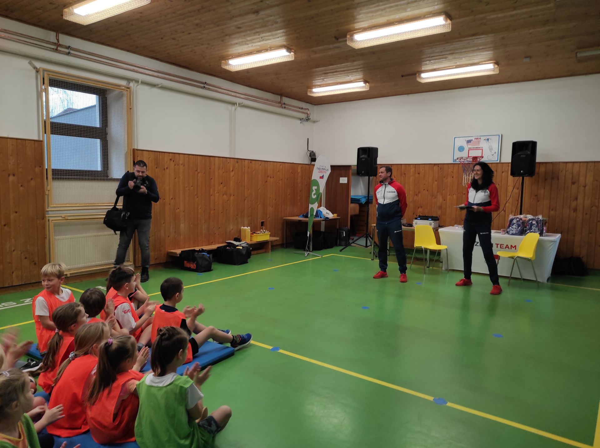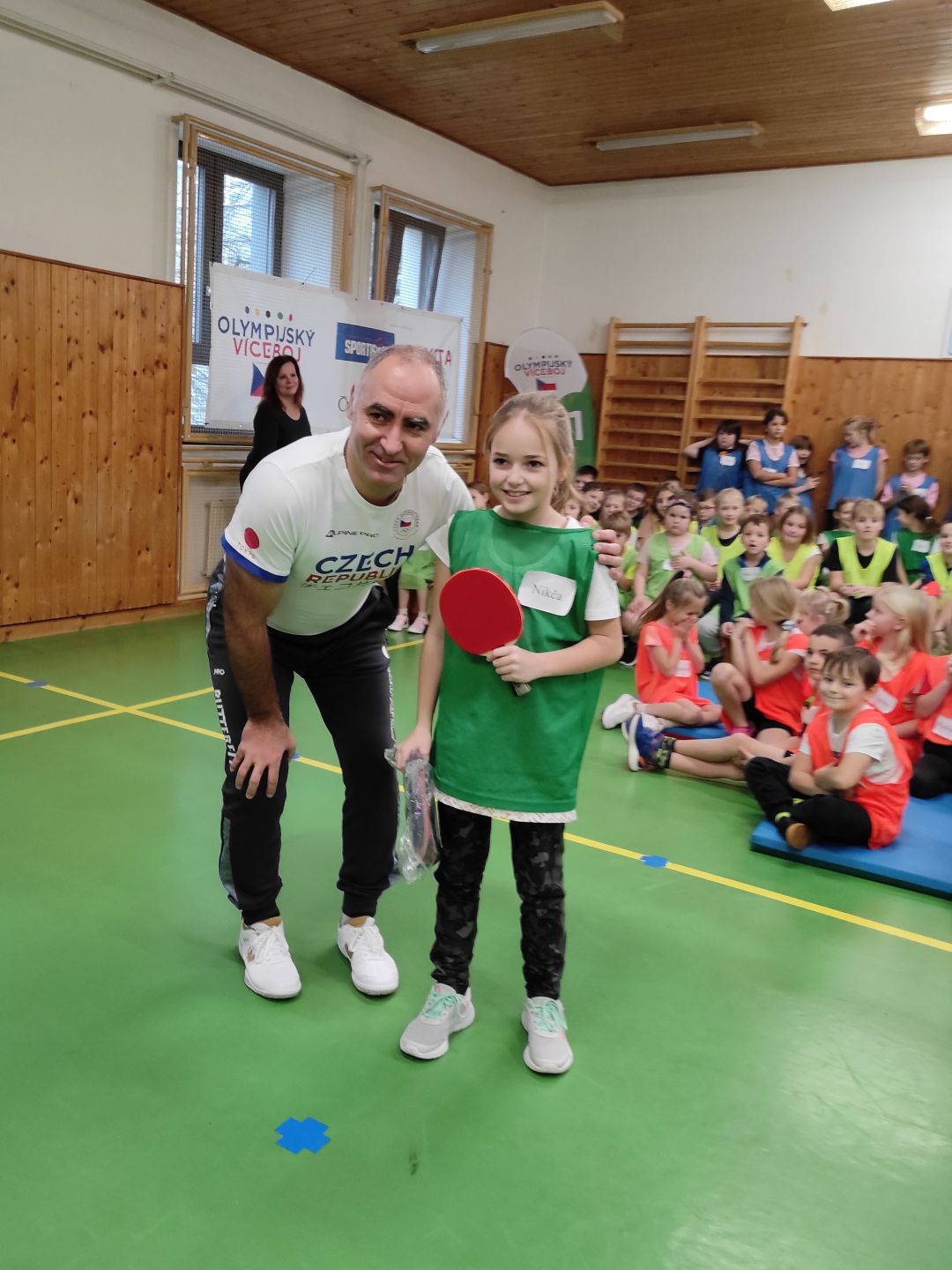 V letošním školním roce se na nás usmálo štěstí, naše škola byla vylosována.  Dne 14. 12. 2023 jsme na naší škole mohli přivítat juniorského mistra Evropy, bronzového medailistu MS, účastníka pěti OH, stolního tenistu Petra Korbela a medailovou atletku, basketbalistku, skokanku do výšky a trojskokanku Šárku Kašpárkovou, která celý program moderovala. Nedílnou součástí byl i realizační tým.