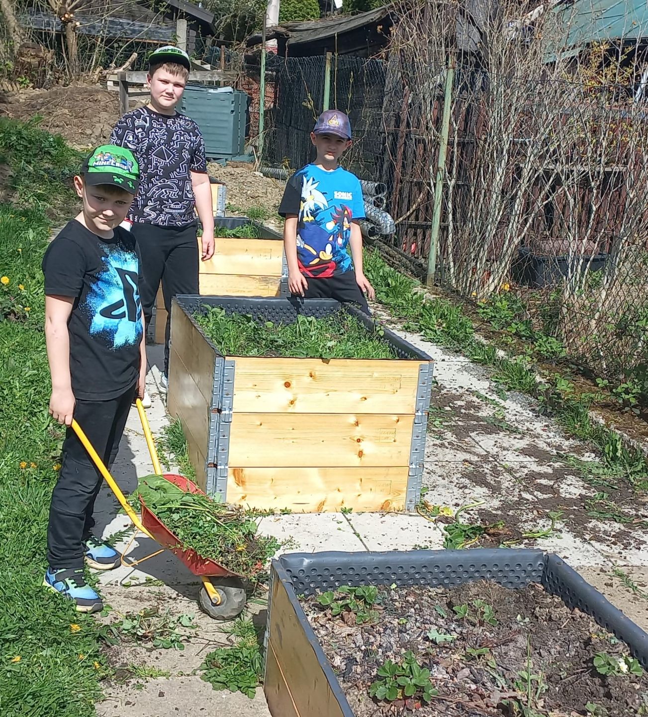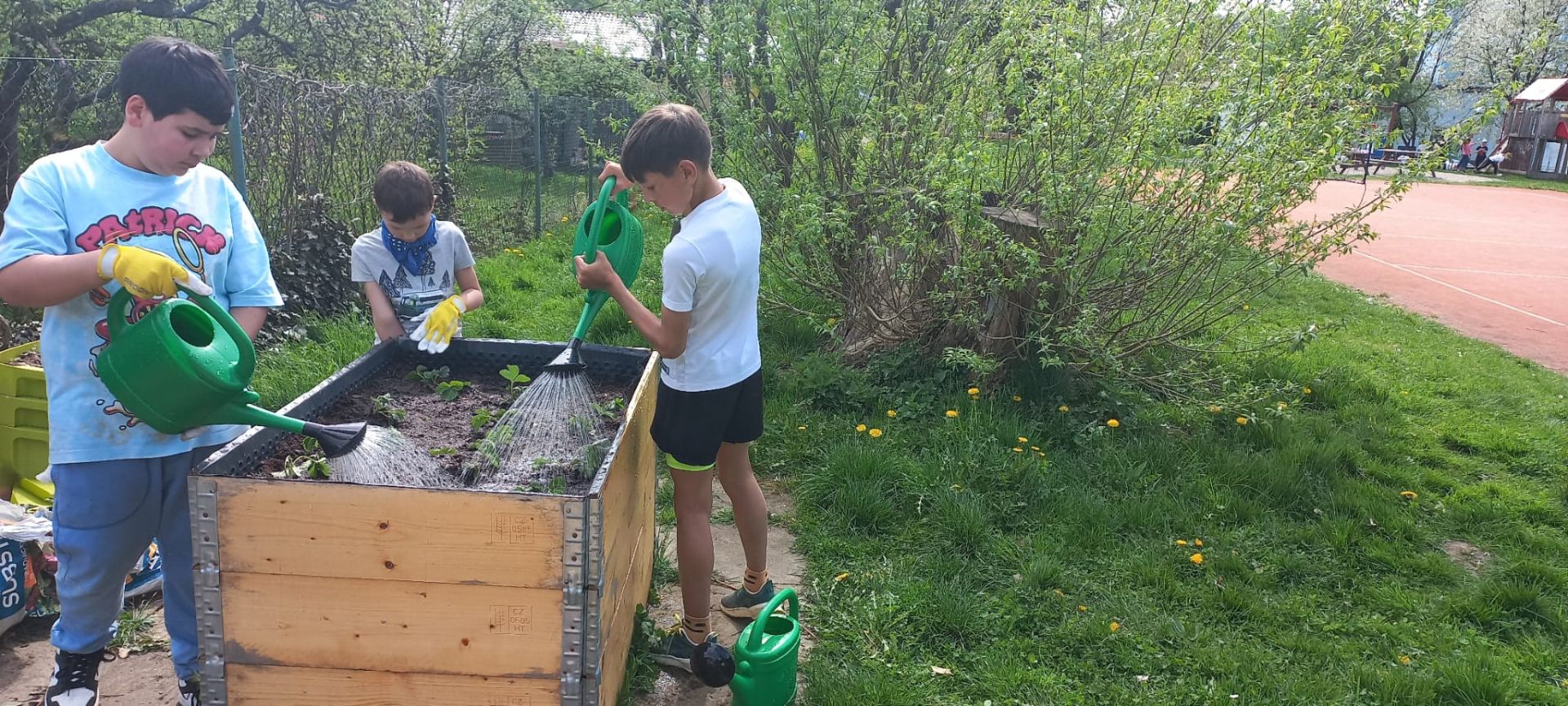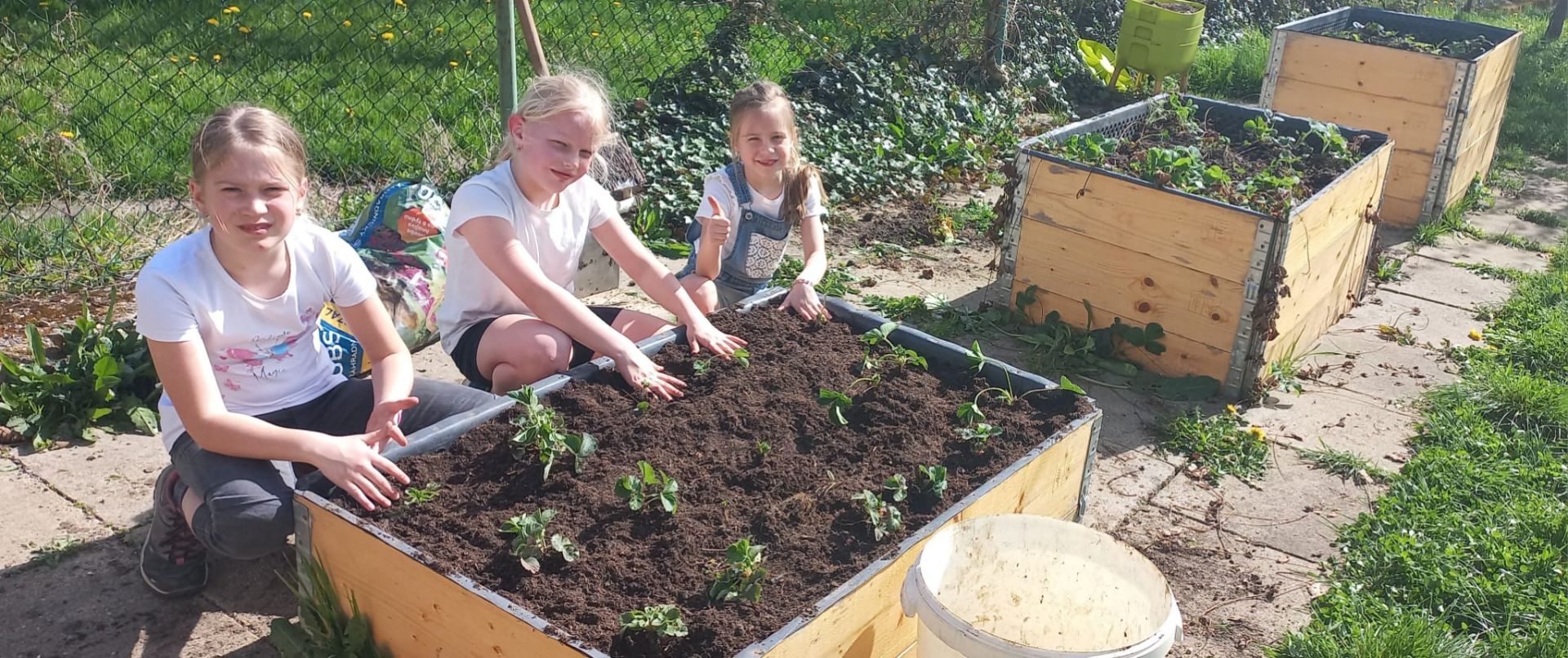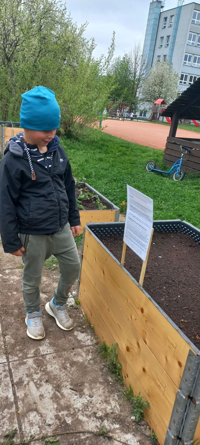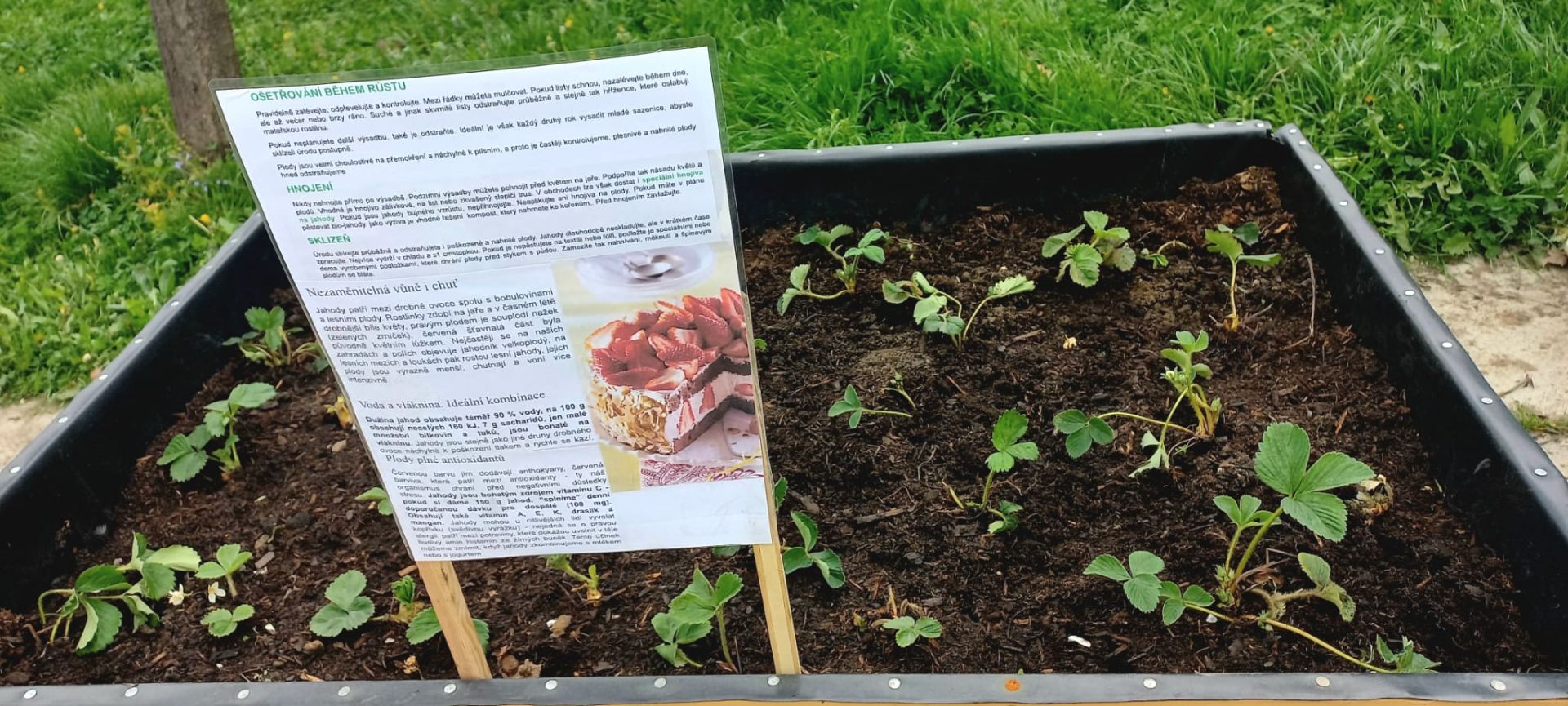 Školní družina upravila záhony jahod a zasadila hrášek a ředkvičky. Děti se mohou na záhonech dočíst informace ohledně dané rostliny - jak o ní pečovat, vegetační doba, hnojení, sklizeň, vitamíny atd.