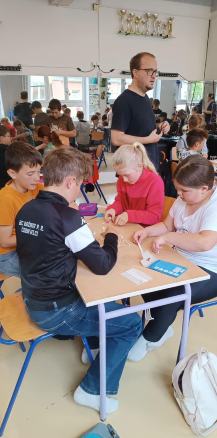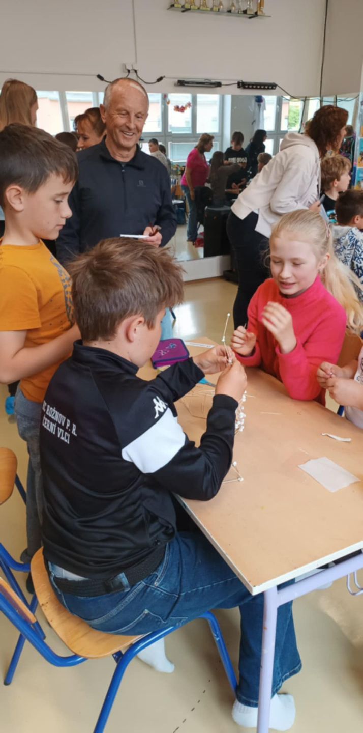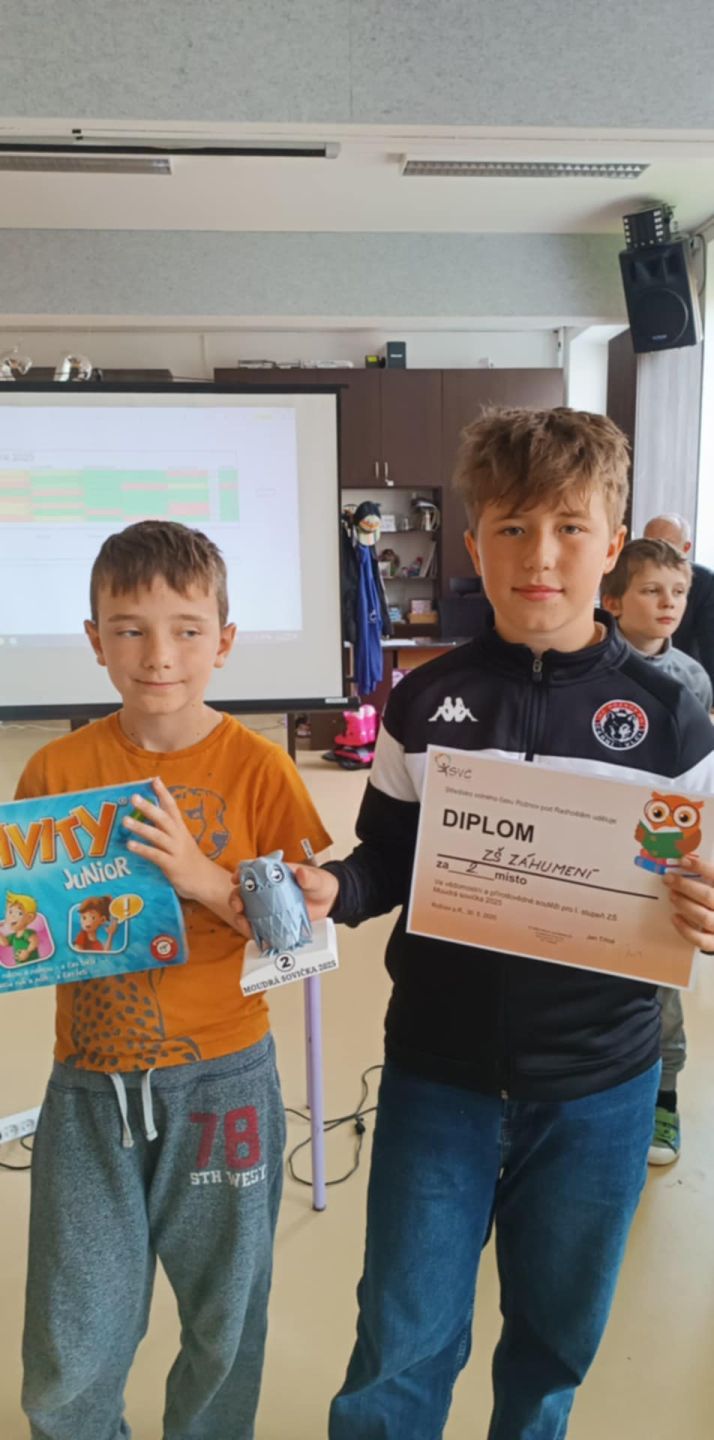 Děti z naší školy se zúčastnily soutěže pro žáky ZŠ "Moudrá sovička 2025". Z celkem 8 smíšených týmů rožnovských a okolních ZŠ získaly krásné 2. místo a stříbrnou sovičku! Týmovou spoluprácí žáci společně vypracovali: vlastivědný, přírodovědný a anglický test, skládali 3D puzzle a stavili věž z párátek. Naše děti si vedly skvěle a celé dopoledne v SVČ si moc užily. Děkujeme Davčovi, Marťovi, Barunce a Patričce za účast a velmi gratulujeme k umístění!