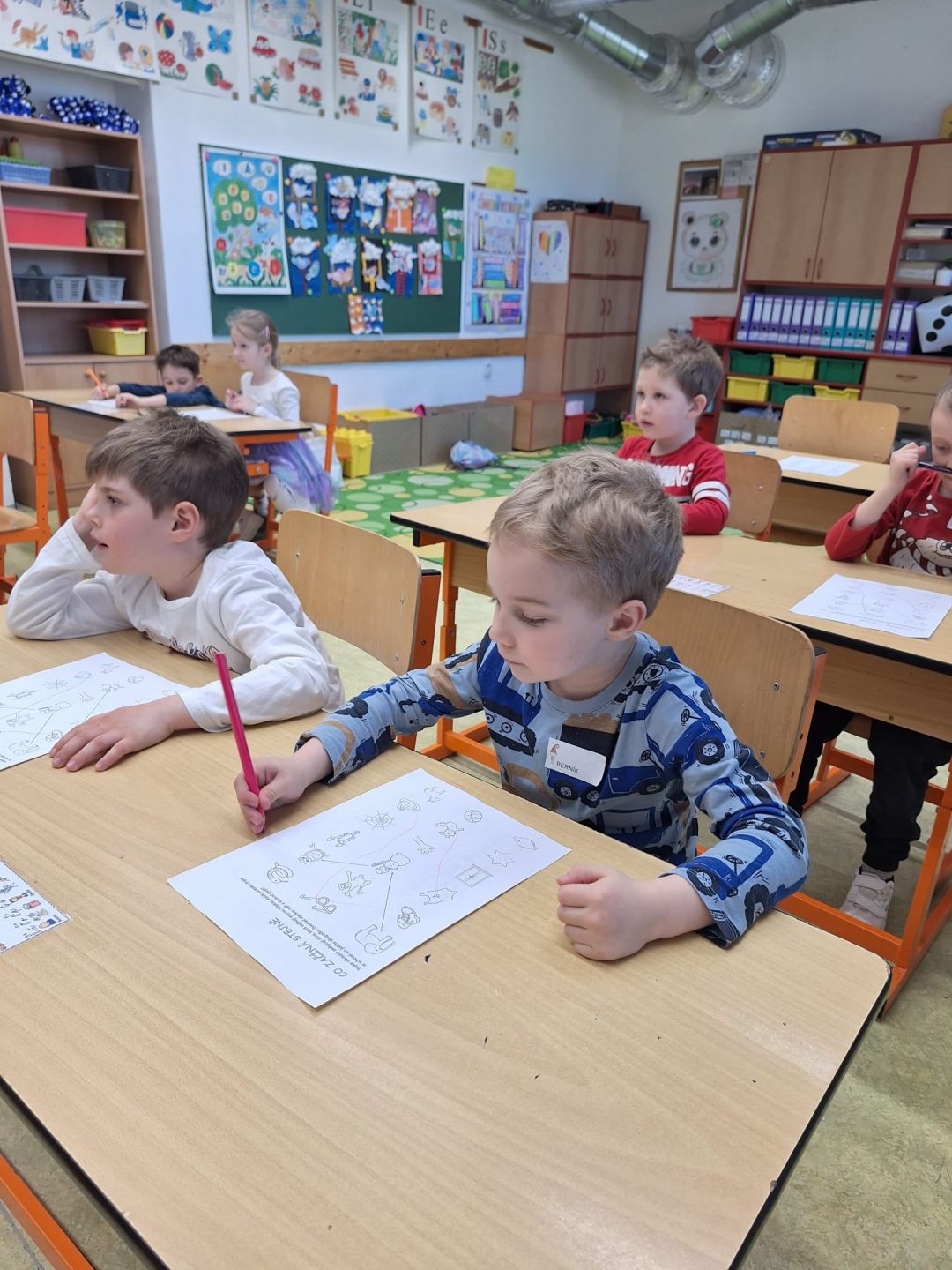 Ve čtvrtek 3. dubna nás čekalo poslední setkání s předškoláky a také se Skřítkem Záhumeníčkem. V poslední lekci si žáci procvičili první hlásku ve s pomocí spojování obrázků, poté si započítali s motýli v síťce. Poslední aktivitou jsme zkoušeli poznávat geometrické tvary a jejich barvy. Děti byly moc šikovné a aktivní.