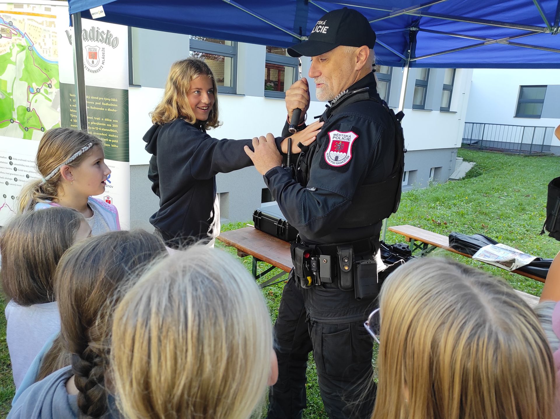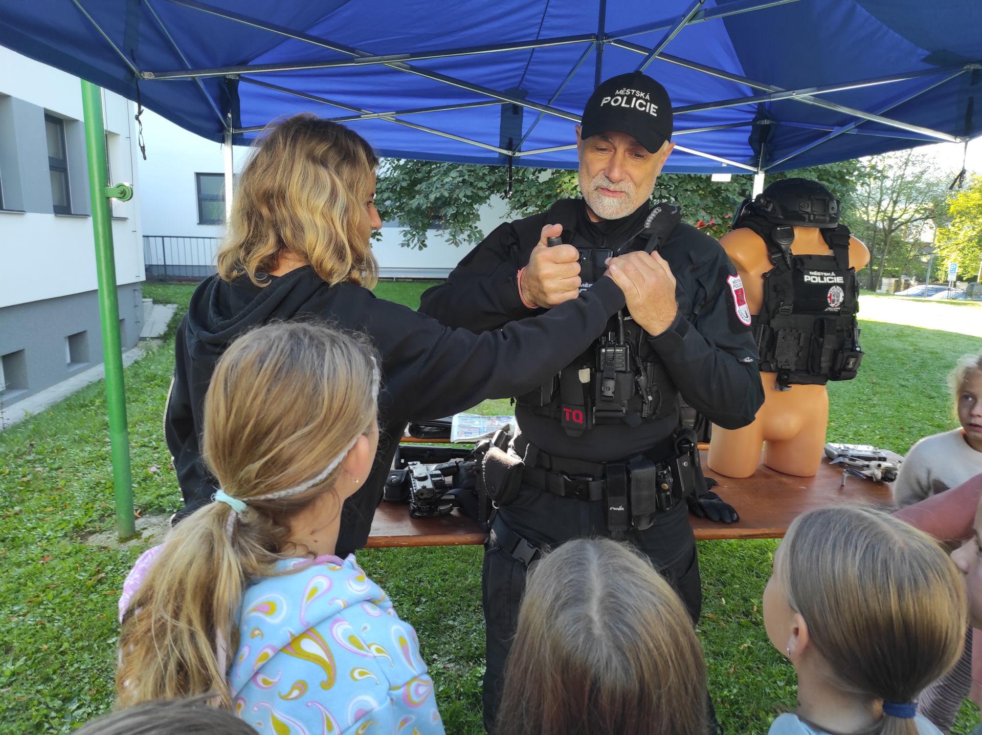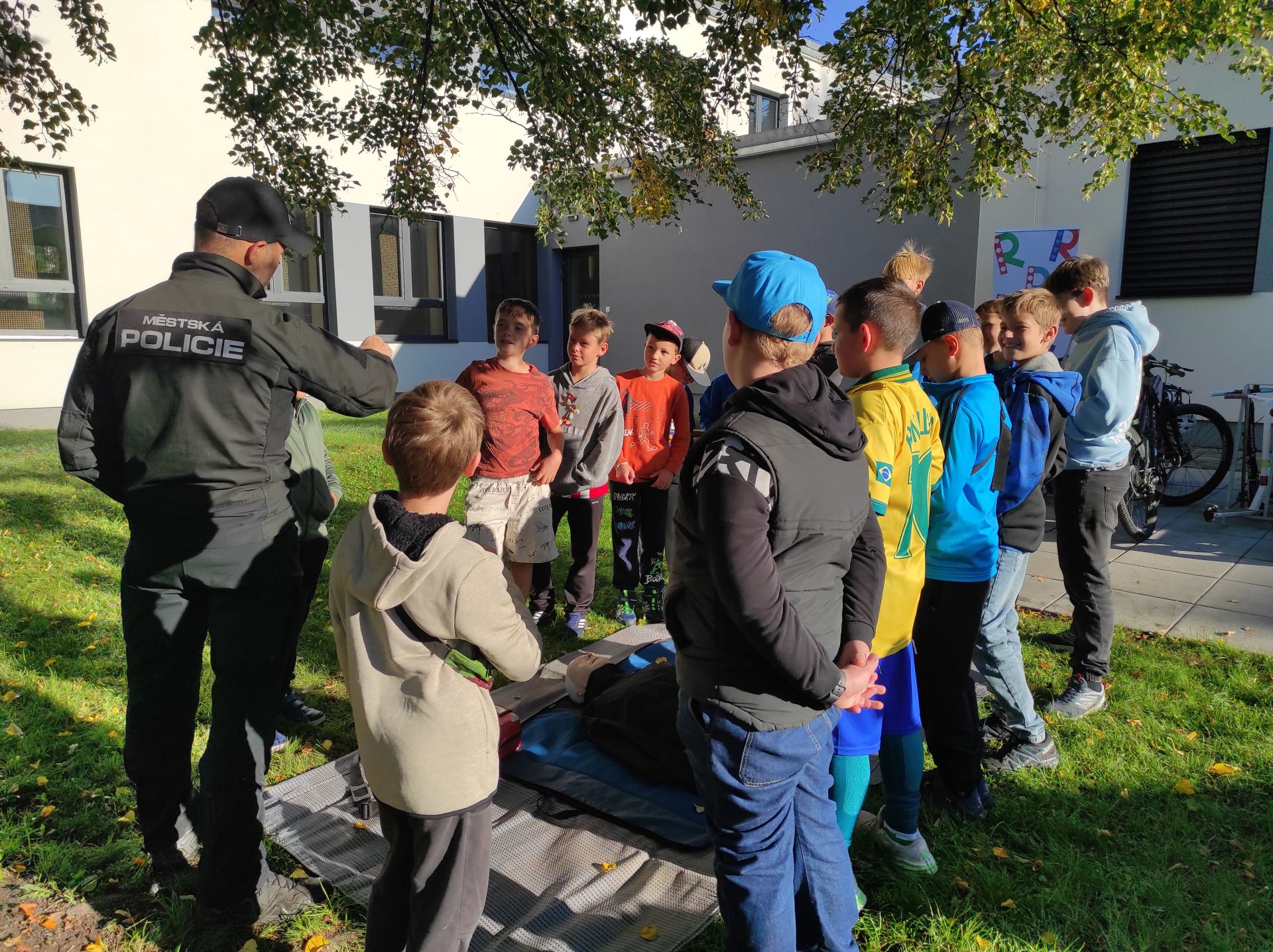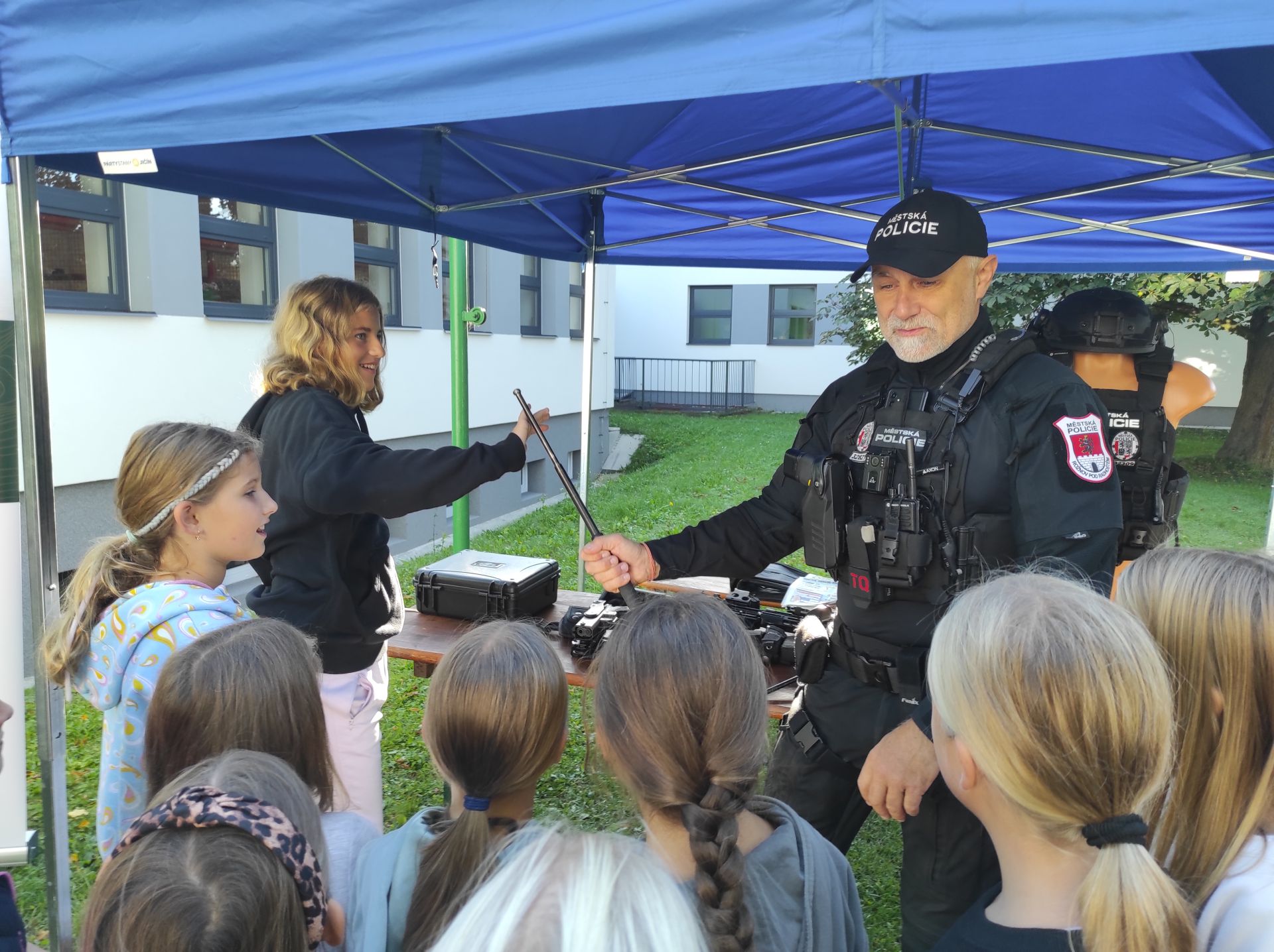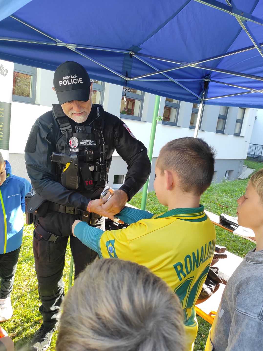 V pátek 19. 9. 2025 byly děti, které přišly do školy pěšky, odměněny chutnou svačinkou a čajem. Následně si vyslechly přednášku městské policie o první pomoci a prohlédly si pomůcky, které policisté při ochraně občanů používají.