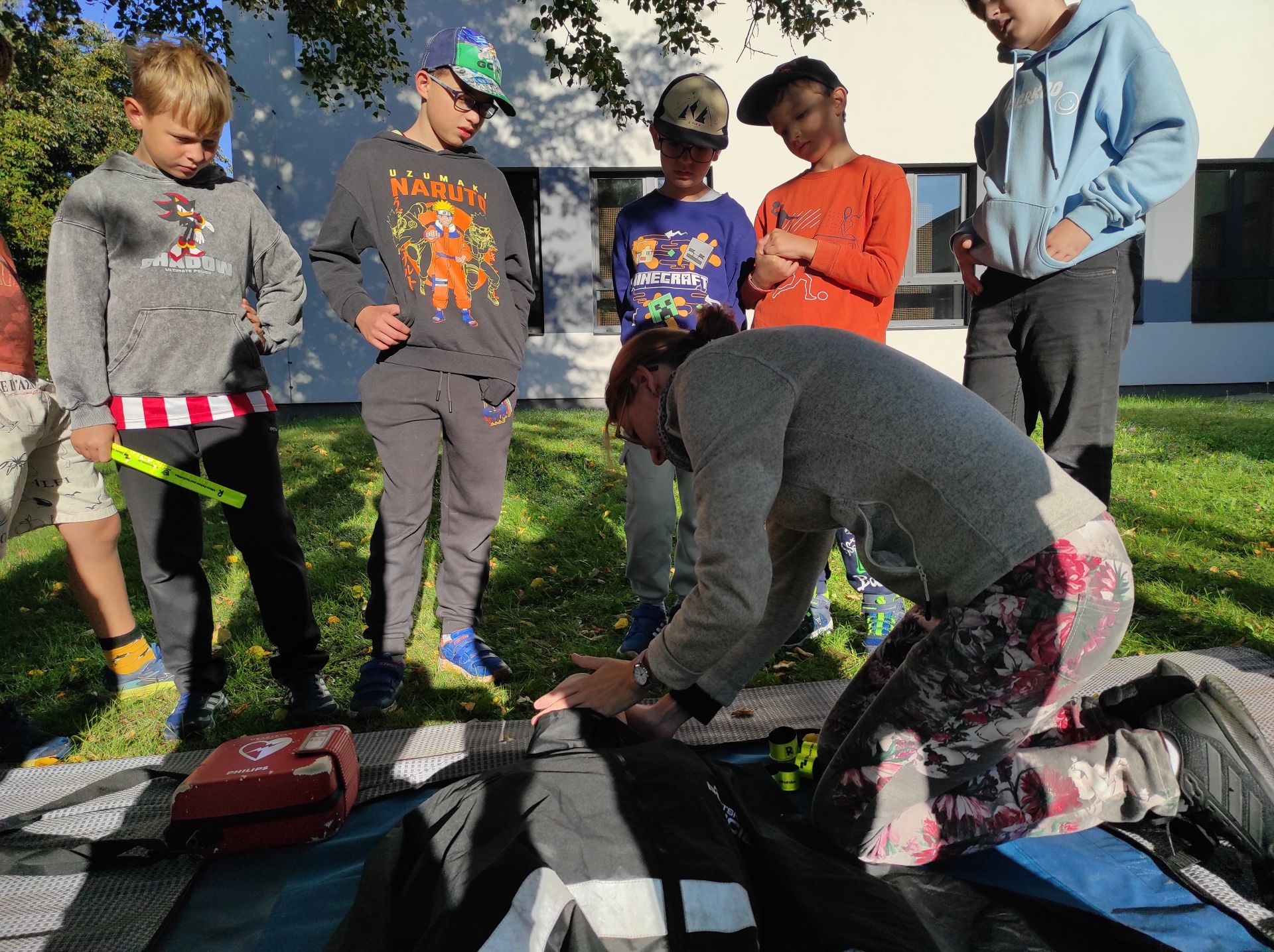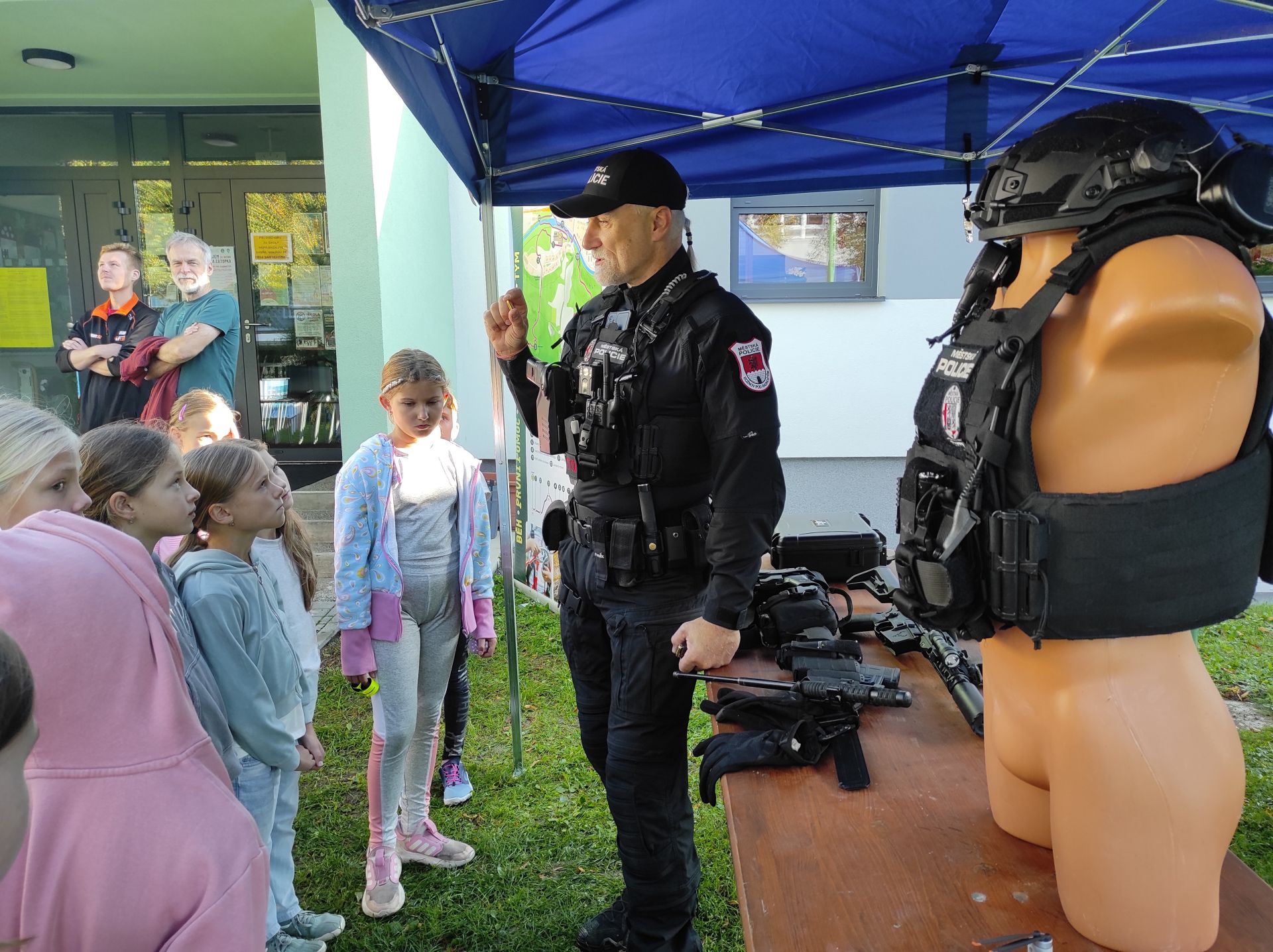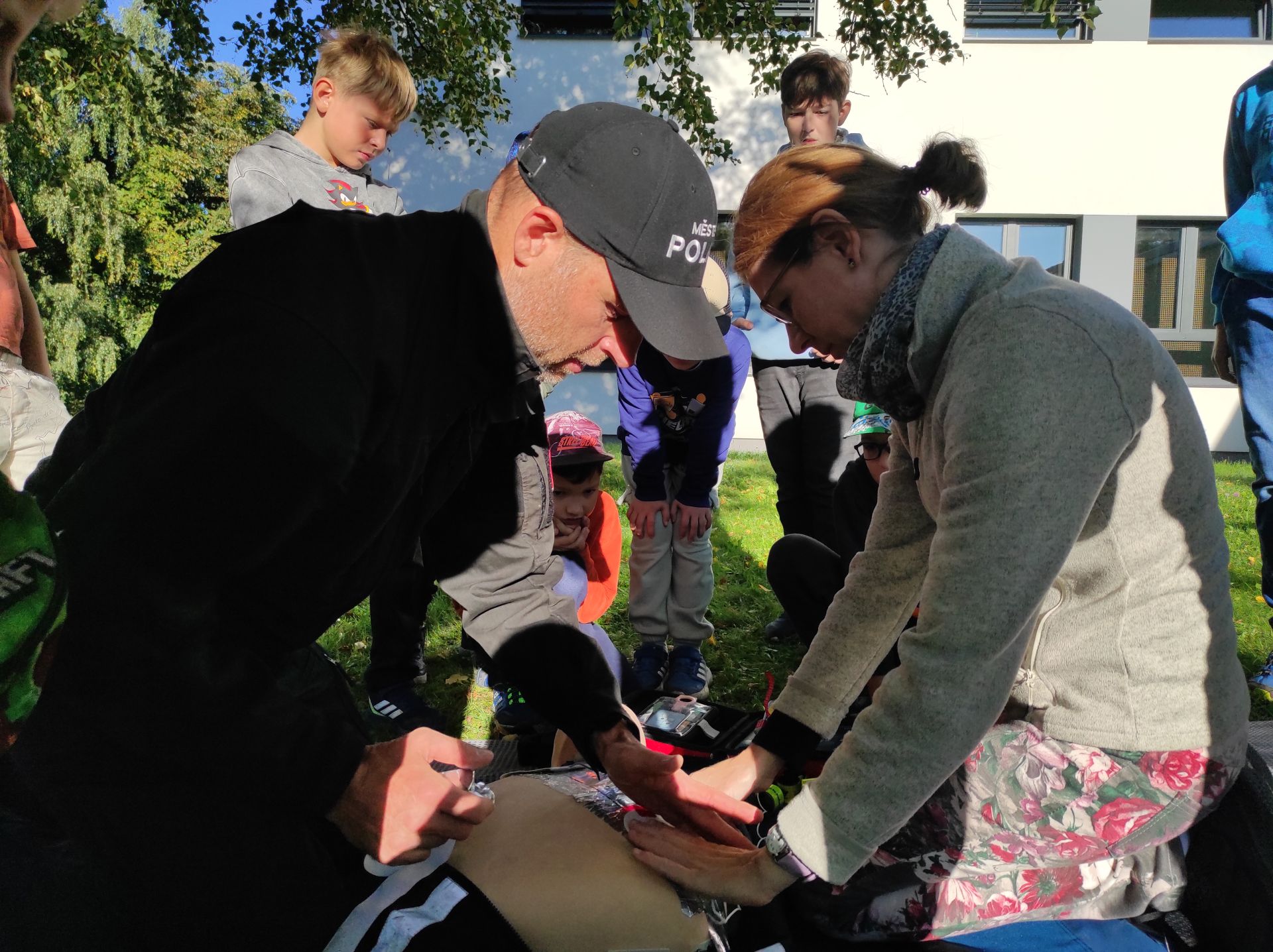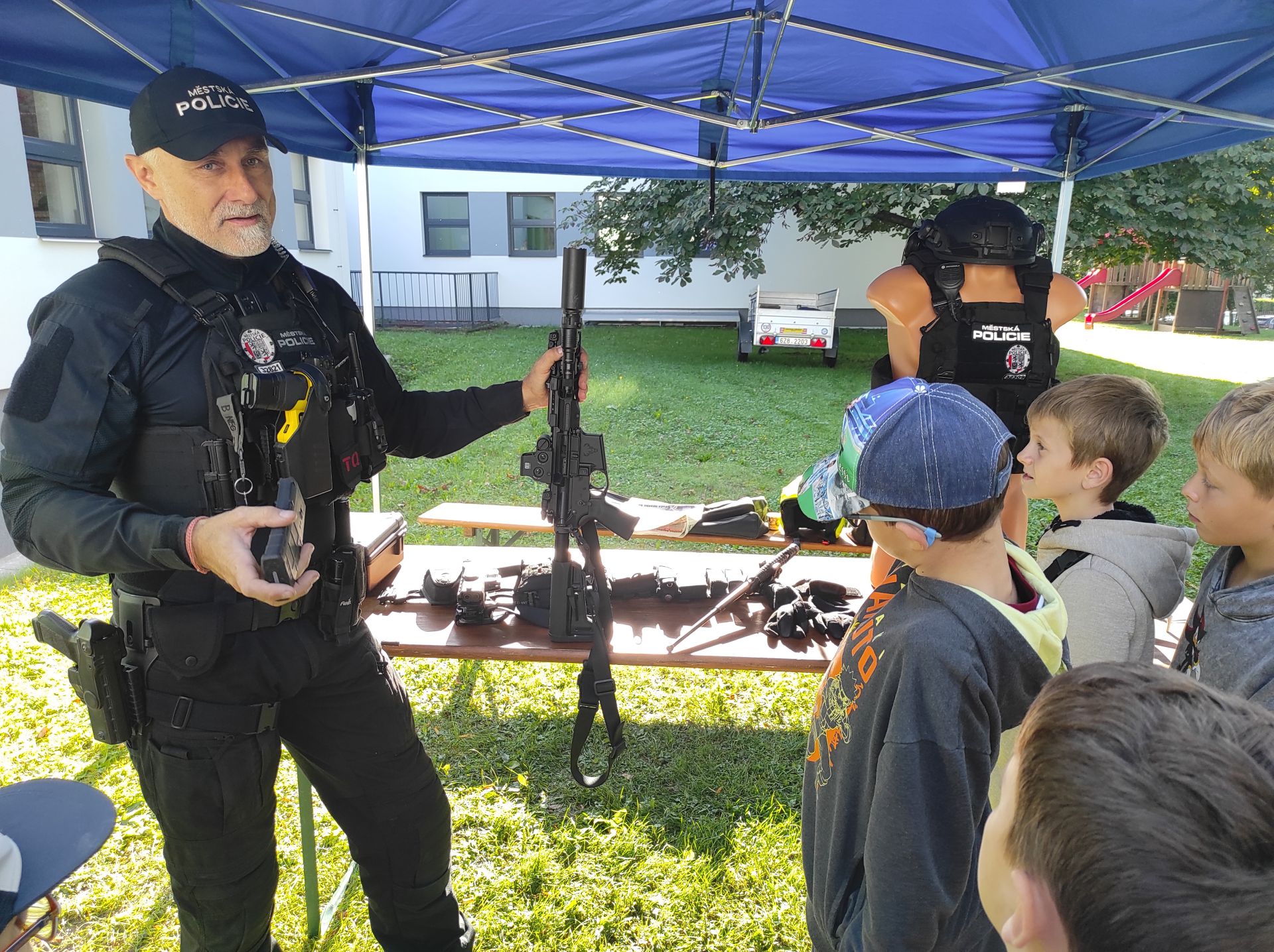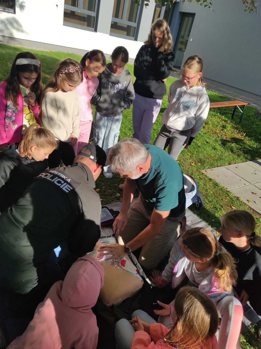 V pátek 19. 9. 2025 byly děti, které přišly do školy pěšky, odměněny chutnou svačinkou a čajem. Následně si vyslechly přednášku městské policie o první pomoci a prohlédly si pomůcky, které policisté při ochraně občanů používají.